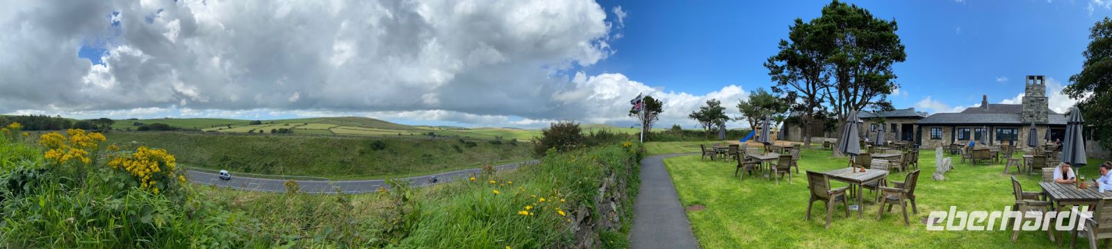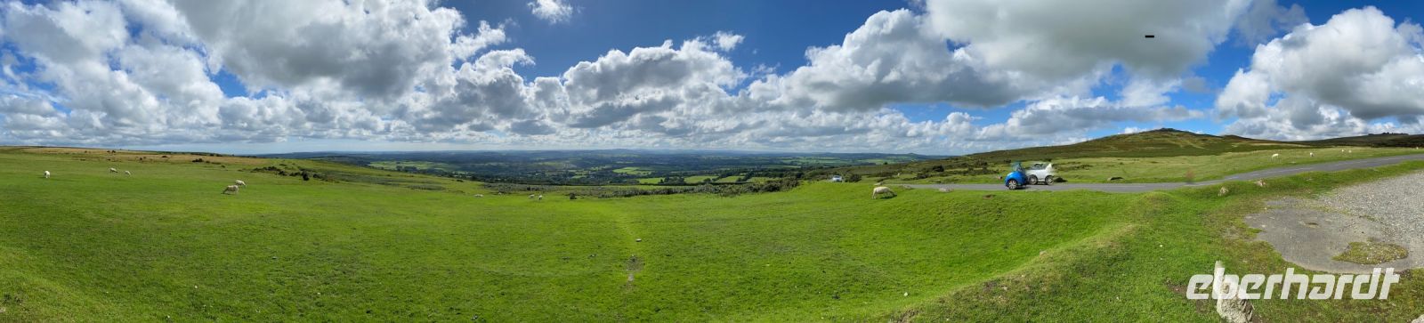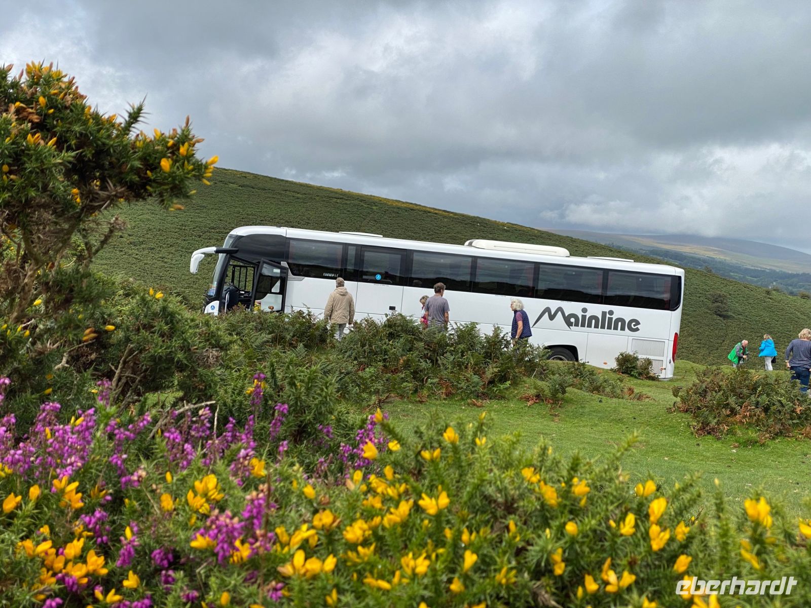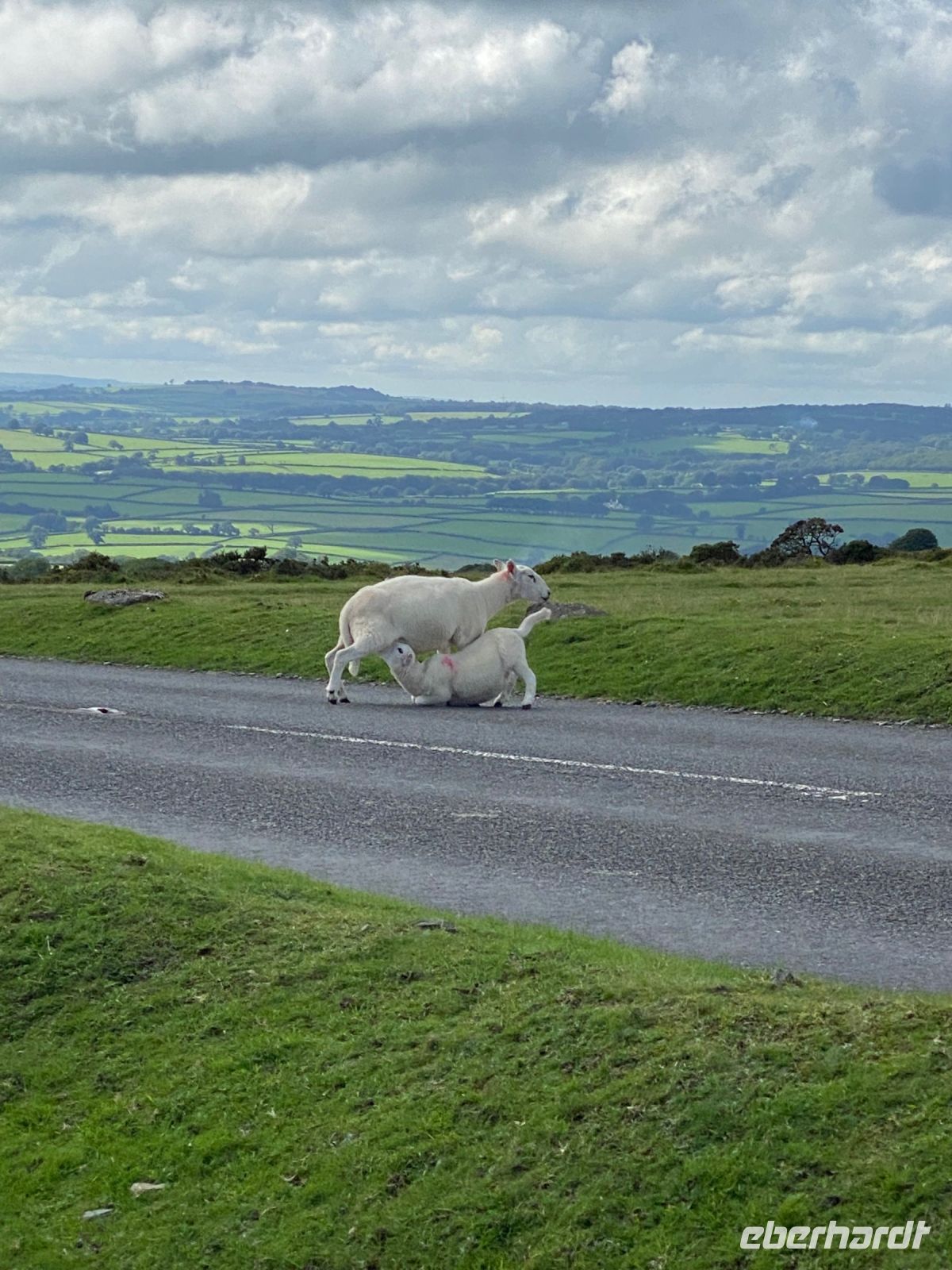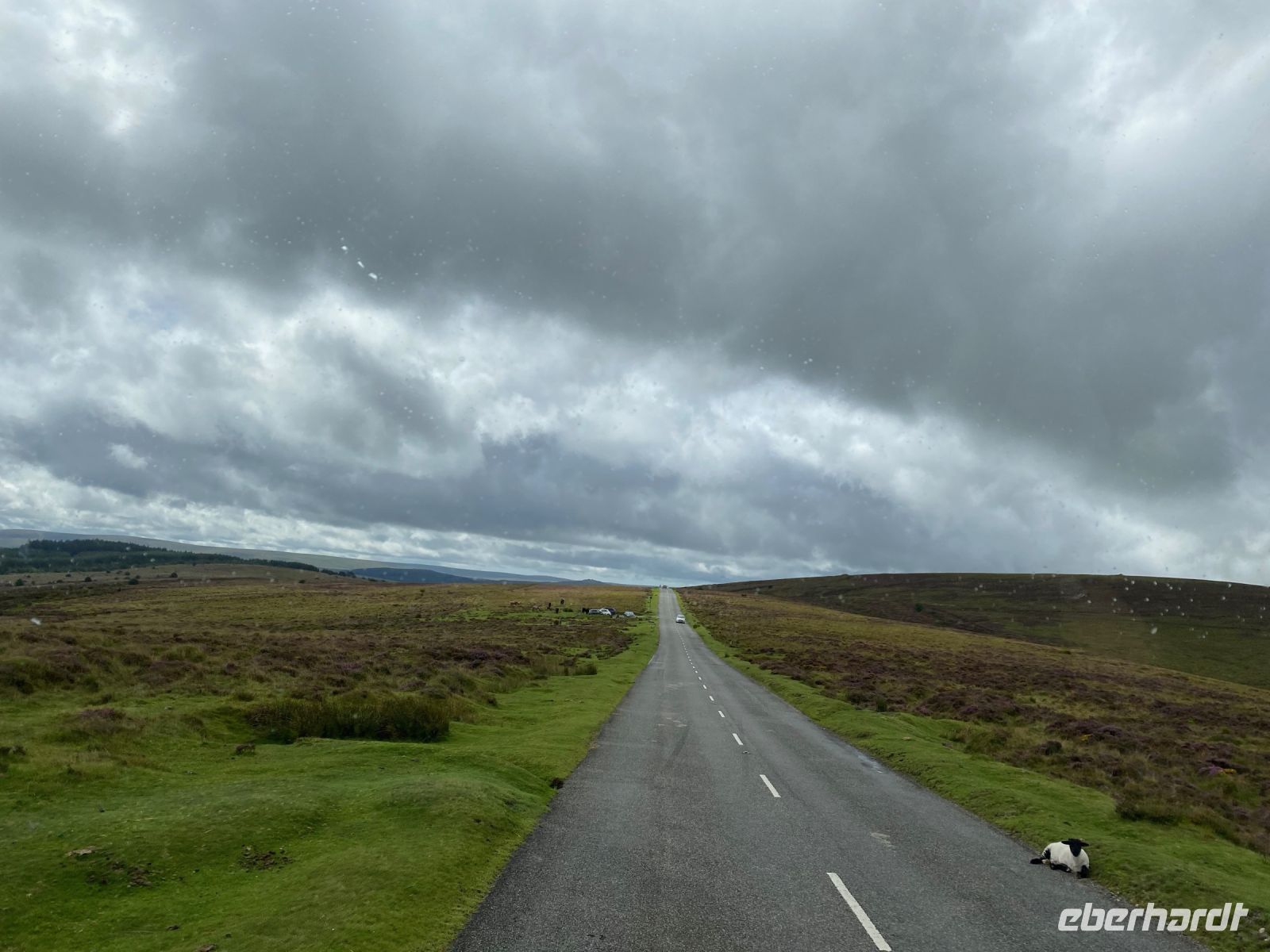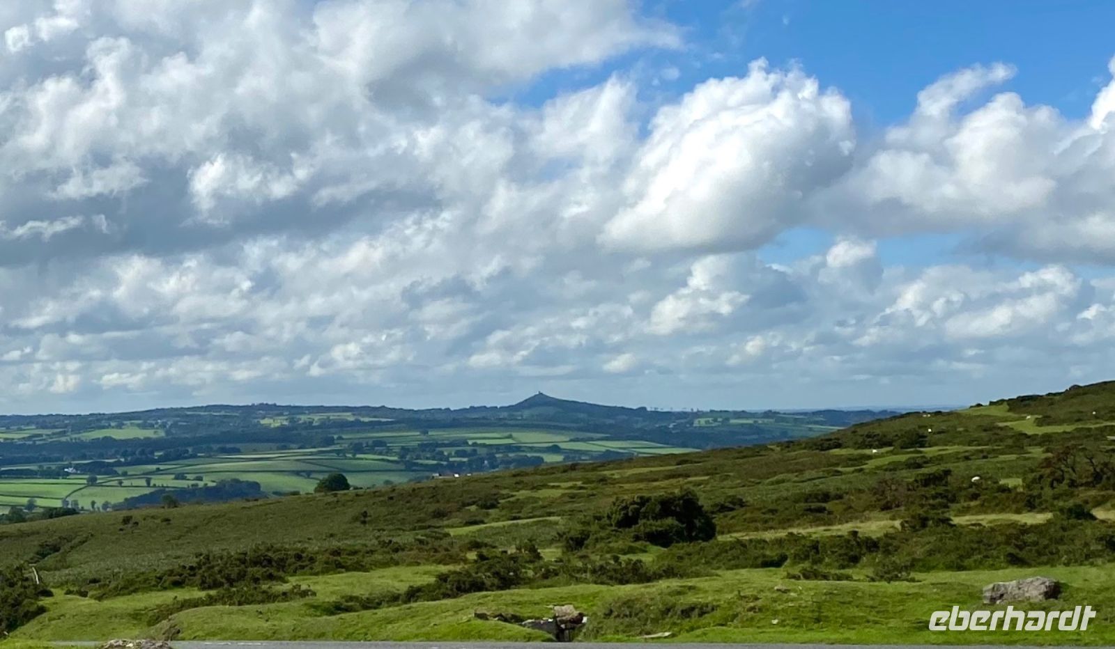 Nun geht es in das weite offene Land des Dartmoors. Hier können wir bei wundervollem Wetter die Natur bestaunen. Sträucher aller Art blühen um die Wette, glücklich grasende Tiere haben die Wiesen in grüne Teppiche verwandelt und machen es sich auch manchmal mitten auf der Straße bequem. Mitten in dieser Hochmoorlandschaft liegt ein einsames Wirtshaus, das schon seit Jahrhunderten seine Gäste bewirtet, schon in einer Zeit als das Reisen durch das Dartmoor noch voller Gefahren war. Hier kehren wir ein, nach einem Drink am Kamin, der hier auch im Sommer immer brennt, setzen wir unsere Fahrt fort.