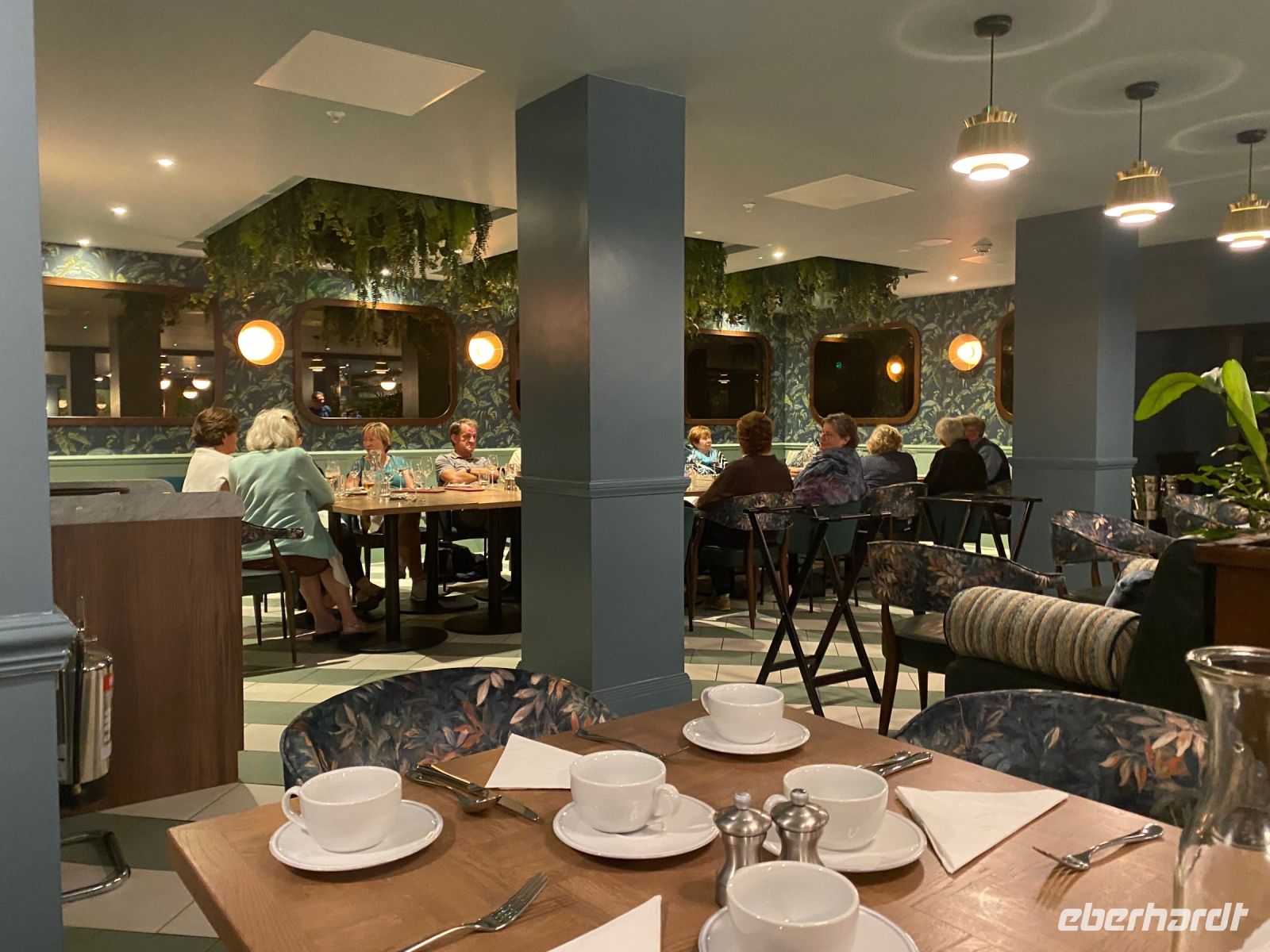 Die Tage unserer Reise beginnen eigentlich alle entspannt mit Abfahrten um 9:00 Uhr. Die Frühstücke in diesem Hotel sind allerdings kleine Schlachten am heißen Buffet, hier merkt man immer noch die Nachwirkungen von Brexit und Corona, es fehlen überall qualifizierte Fachkräfte.