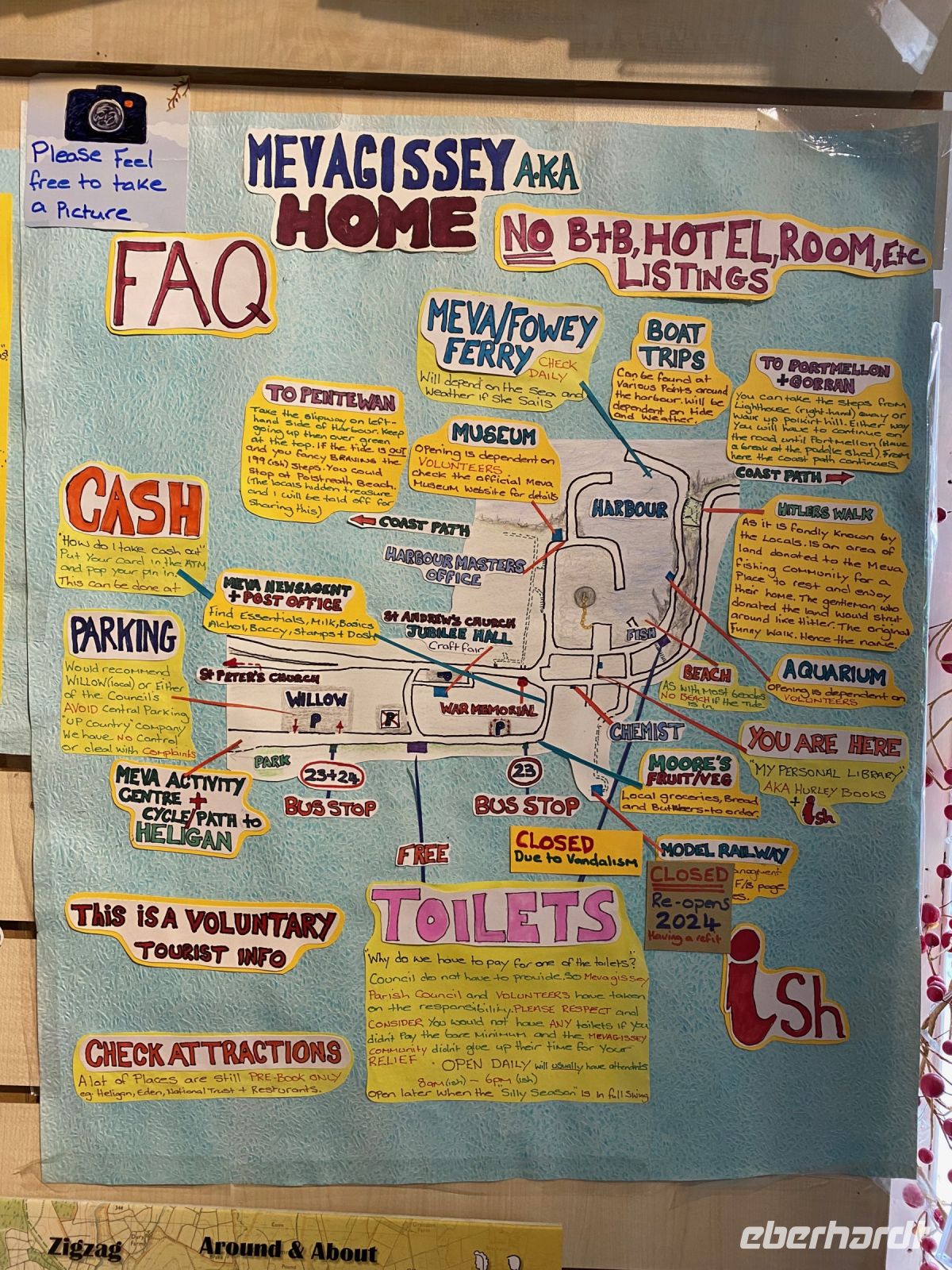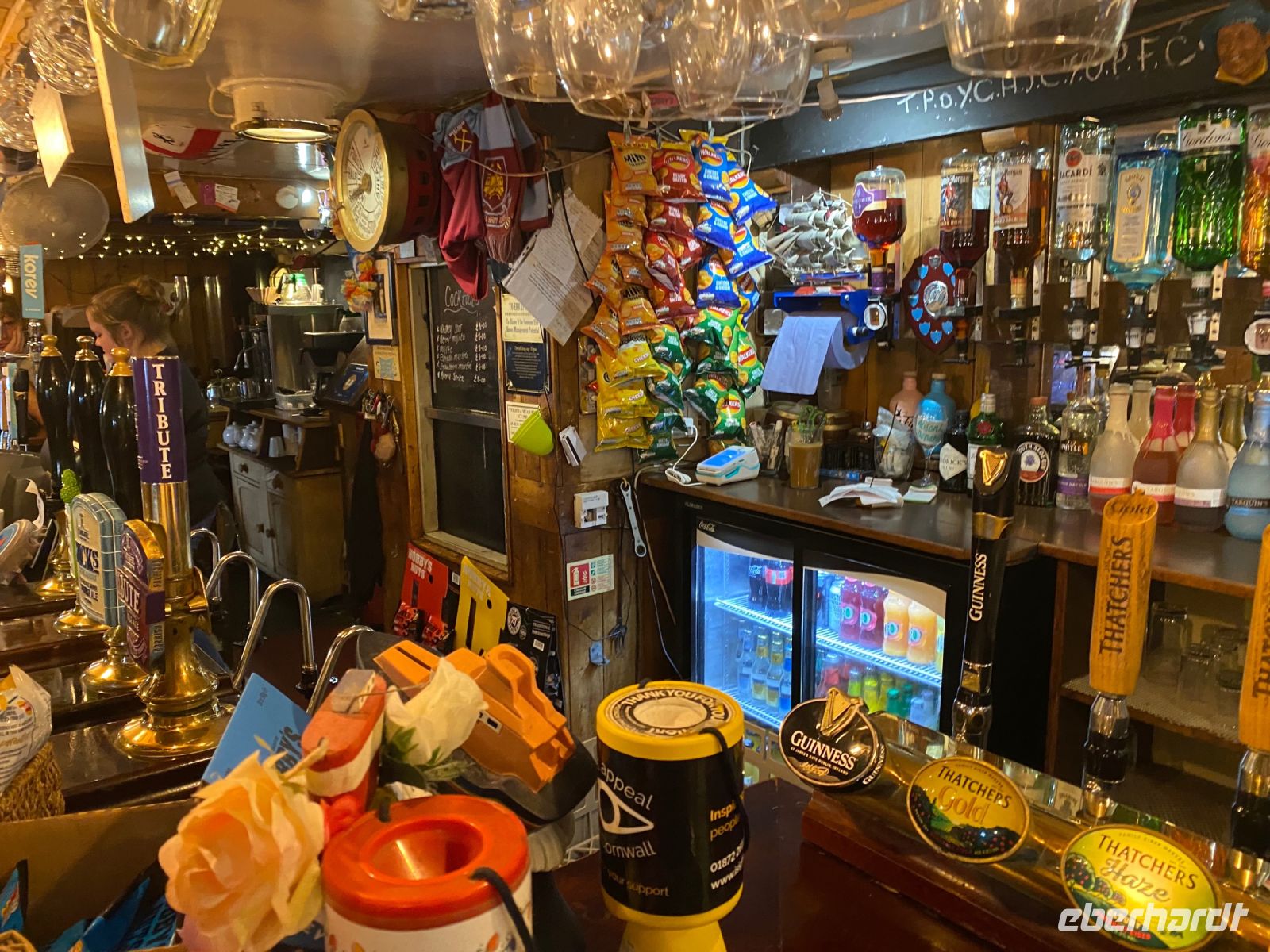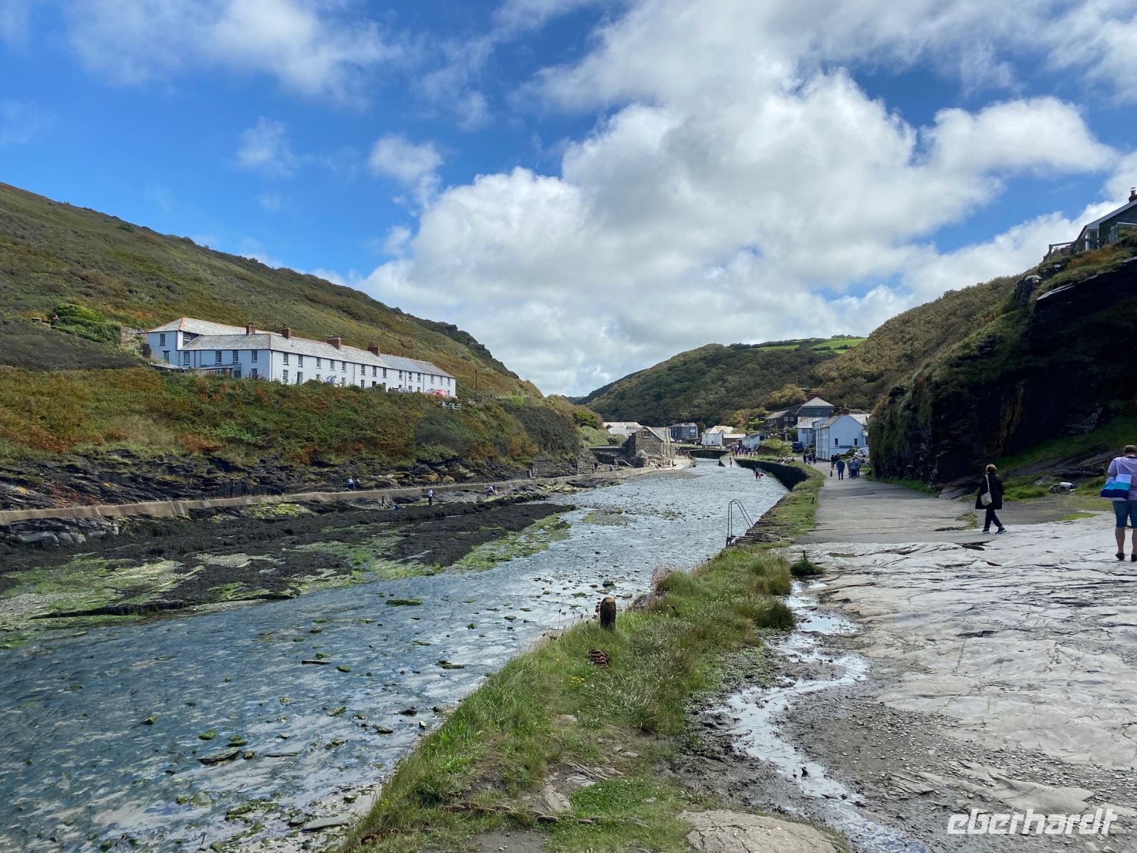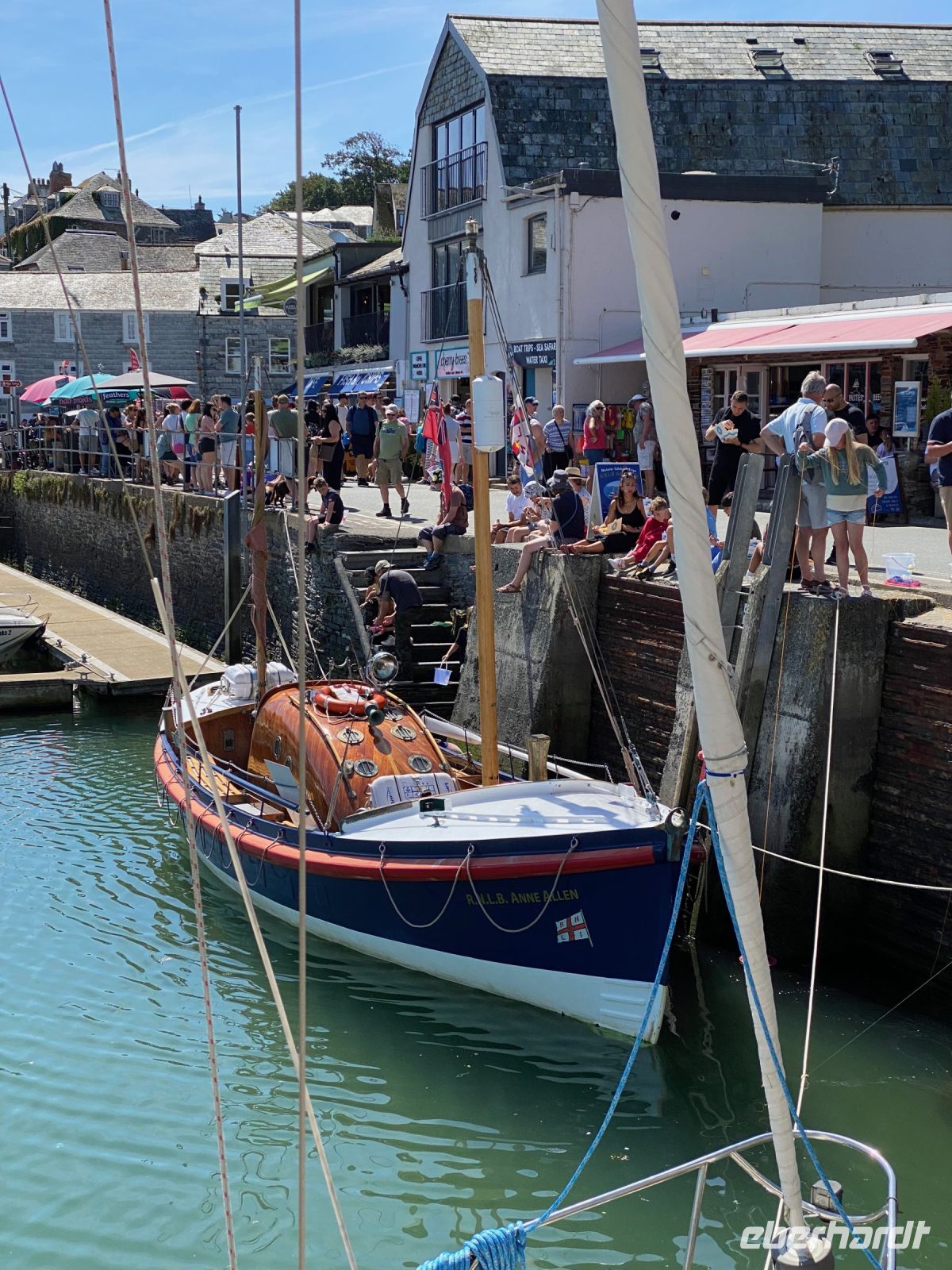Ganz nahe an den Gärten liegt der Ort Mevagissey, unsere nächste Station. Ein ganz besonders kleiner Hafen erfreut uns hier mit Sonnenschein – und Ebbe. Vielleicht, weil wir mit Ebber-hardt TRAVEL reisen?