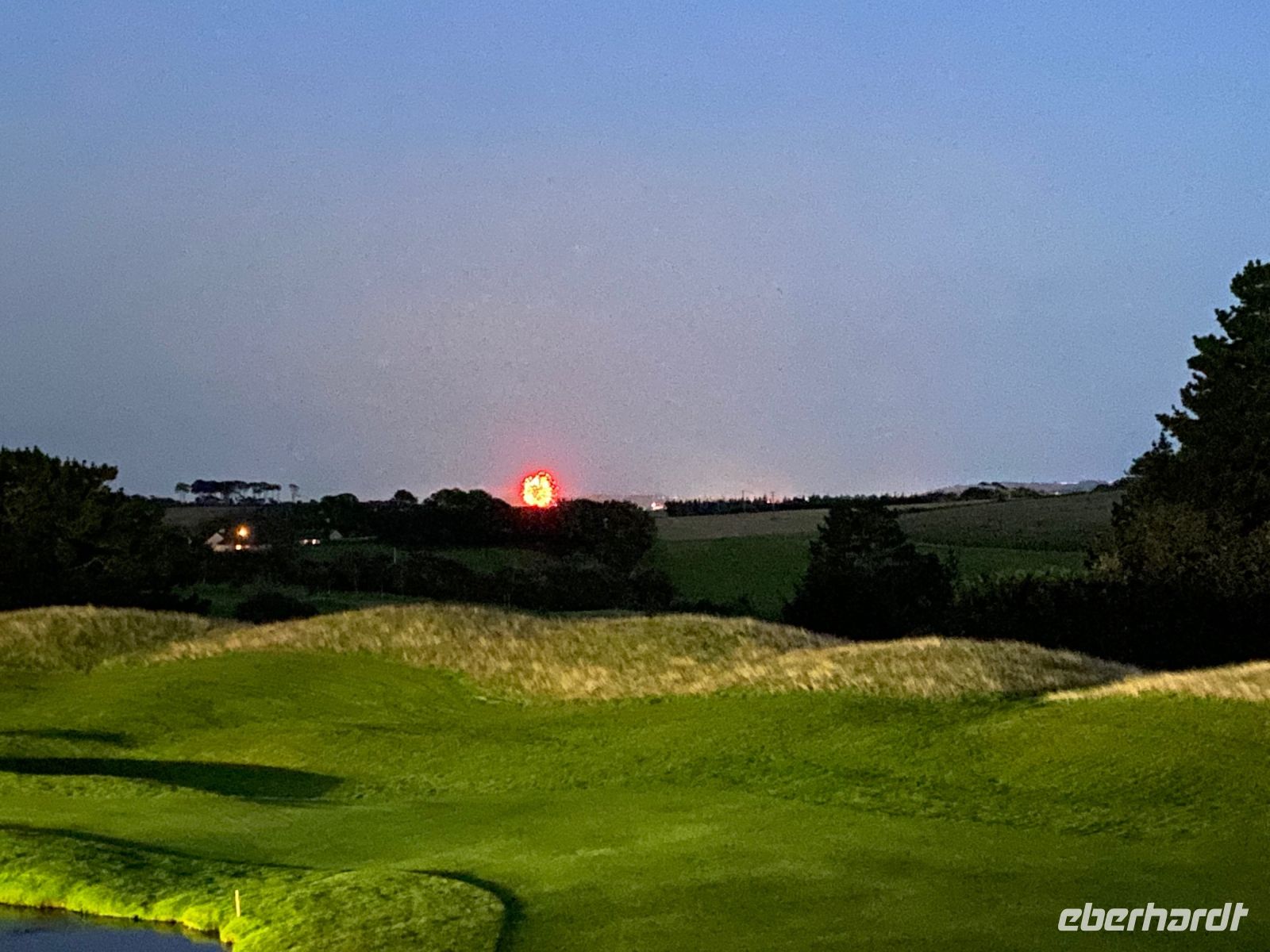 Zurück in unserem Hotel versammeln wir uns abends zum letzten Mal an unserer langen Tafel mit Blick auf den Golfplatz. Bis zum Dessert haben dann auch alle das 19. Loch erreicht.