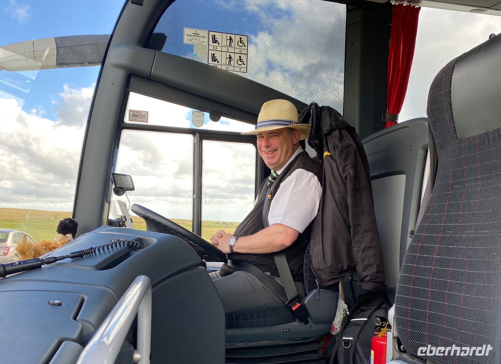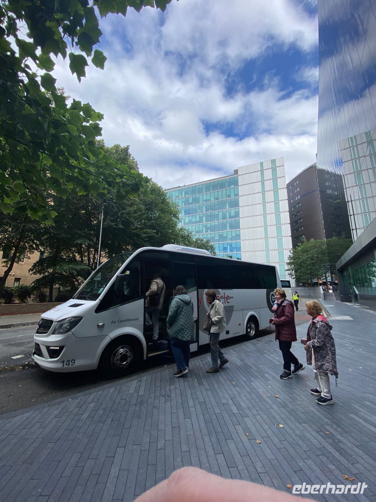 Schon zeitig am Morgen hat Mark in sorgfältiger Feinarbeit unseren Bus eine halbe Straße rückwärts vor das Hotel gefahren. Auch in Bristol stellt man Blumenkübel auf die Straße, um den Verkehr einzubremsen. Wäre unsere Reisegruppe individuell unterwegs gewesen, dann wäre wohl ein Dutzend Autos mehr auf den Straßen gewesen. Für Busse sollte man also Platz lassen, vielleicht eine Überlegung für die Stadtplaner in aller Welt. Mark erzählt passend dazu, dass Busfahren in England in den letzten Jahren schwieriger geworden ist. In der Coronazeit hat man viele Busparkplätze für Autos umgewidmet, danach aber nicht mehr zurück. Dank seines Könnens und Wissens sind wir dennoch stets zuverlässig an alle Ziele – und auch wieder zurück – gekommen. Bald schon werden die meisten von uns wieder selber fahren müssen. Jetzt aber können wir uns ein letztes Mal zurücklehnen und uns noch weiter bequem chauffieren lassen.
