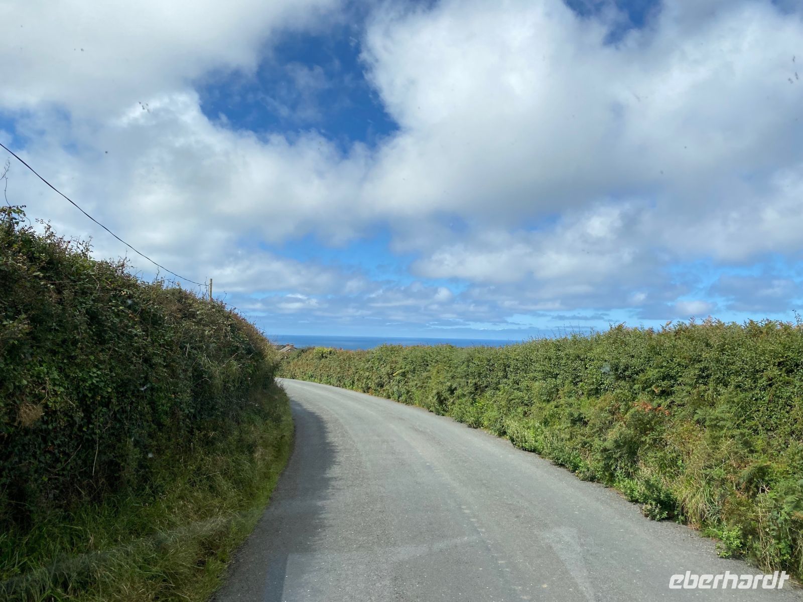 Nun fahren wir westwärts, so weit wie nur möglich, nach Land’s End. Sogar Madrid befindet sich nun östlicher als wir! Hier, am westlichsten Kap Englands, herrscht immer eine steife Brise, dennoch lässt sich hier schon erahnen, dass eine angekündigte Sturmwarnung für den nächsten Tag nicht ganz unbegründet sein könnte.