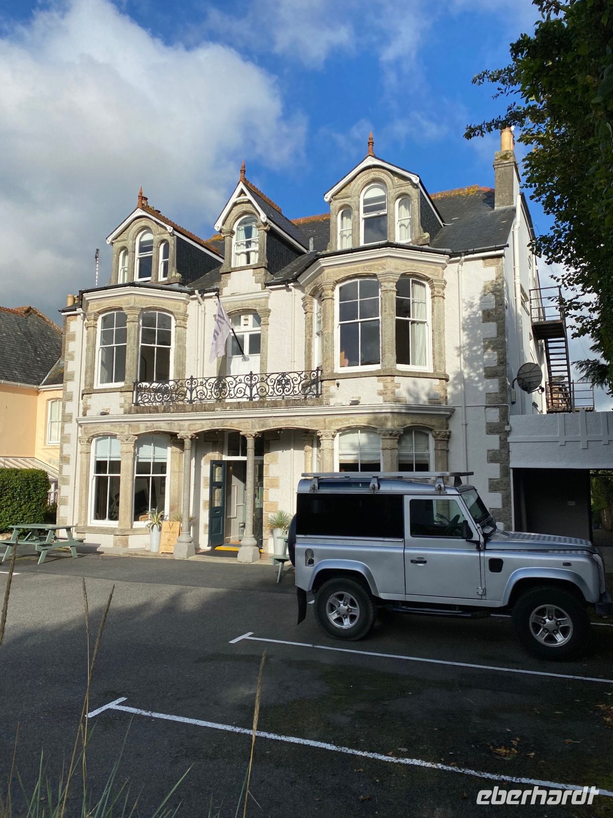 In Truro, vor einem kleinen Boutiquehotel, steht bei unserer Ankunft schon Mark bereit und weist unseren Bus ein. Eine Baustelle hat hier die Straße halbiert. Wir checken ein, es gibt typisch englische Zimmer (bis auf eines, das bald umgetauscht werden konnte) und ein weiteres schmackhaftes Abendessen für uns alle erwartet uns – wieder an einer langen Tafel.