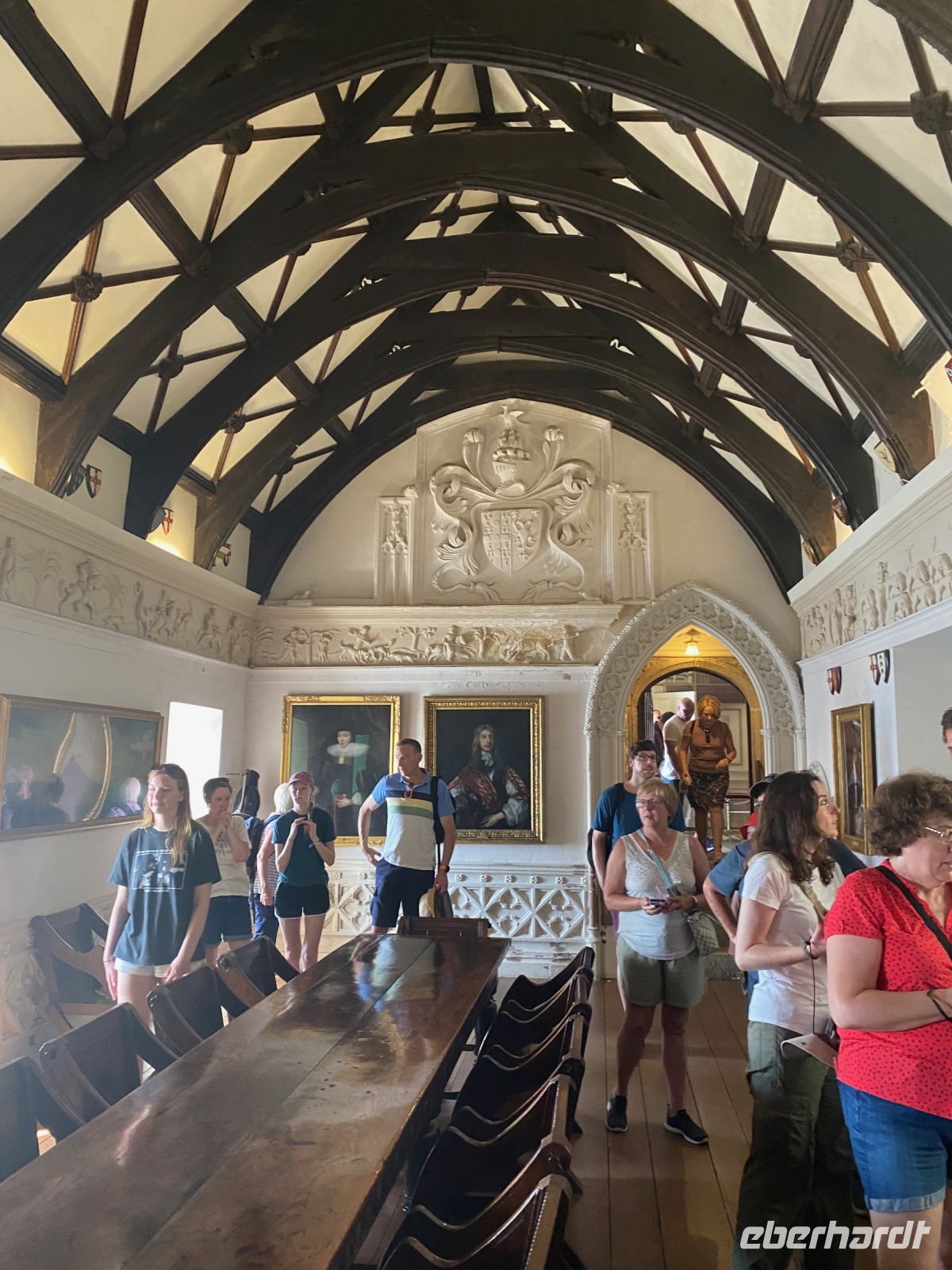 Direkt über dem Ort liegt das herrschaftliche Schloss Prideaux Place, unser nächstes Ziel. In unserer Gruppe gibt es zwar nicht besondere Rosamunde-Pilcher-Fans, aber umso mehr gefällt uns alles dafür, was es ist. Unsere Schlossführerin Hilde allerdings hat sogar an den Verfilmungen, die hier immer wieder vom deutschen Fernsehen produziert wurden, mitgewirkt. Sie führt uns sehr humorvoll durch das alte Herrenhaus und weiß einiges über Geschichte und Alltag der Familie zu berichten, die hier schon seit Jahrhunderten ansässig ist.