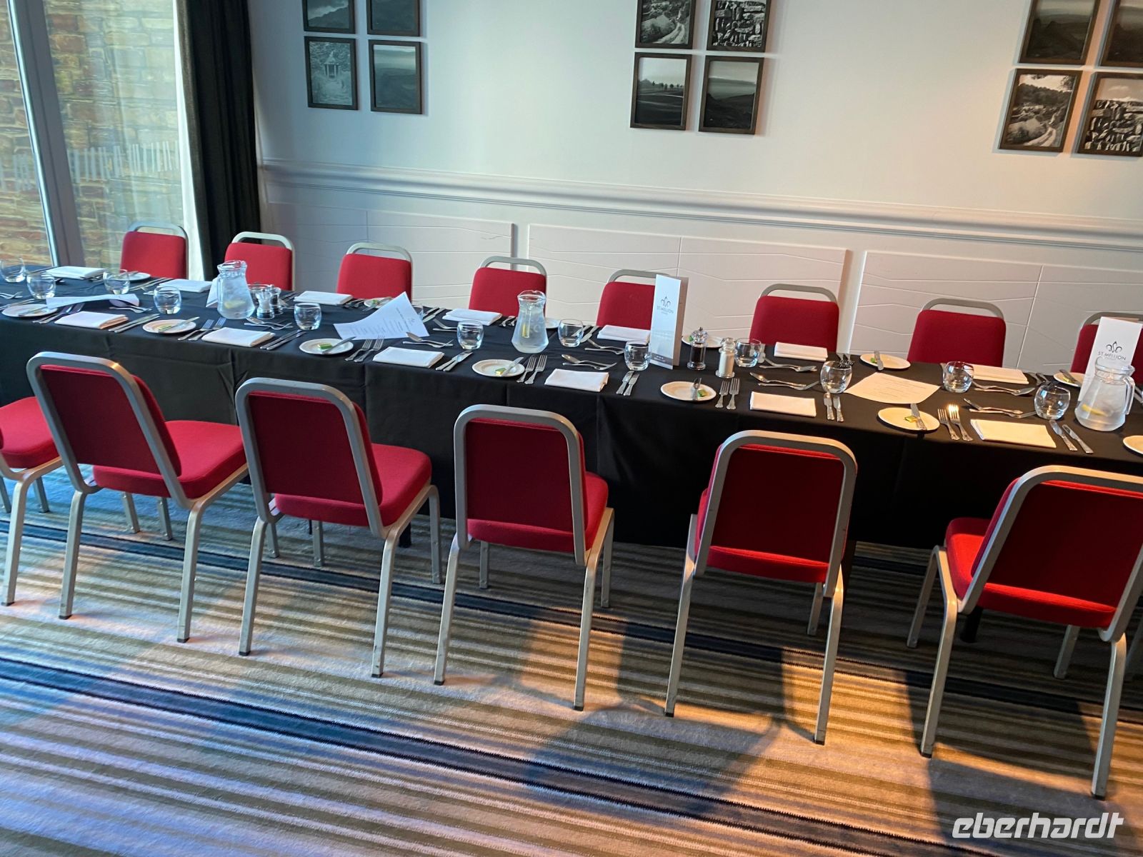 Unser letztes Ziel für heute, St. Mellion Estate, erreichen wir pünktlich wie alles auf dieser Reise – unser Fahrer Mark bringt uns überall zuverlässig hin! Hier wohnen wir die nächsten drei Tage im Grünen, mit Blick auf einen der schönsten Golfplätze Englands.