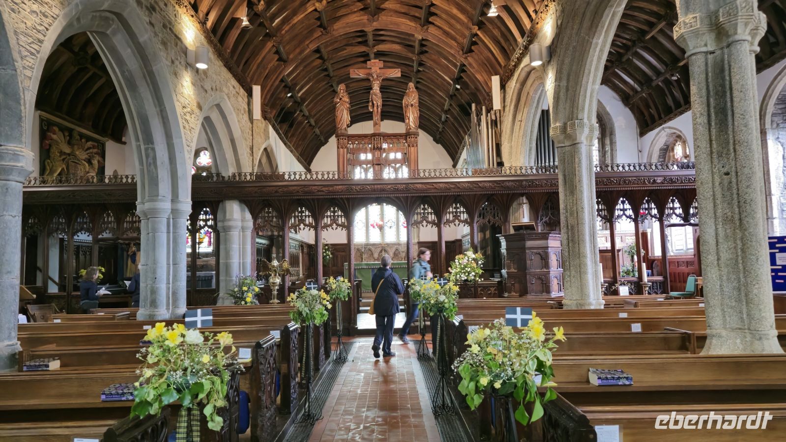 Heute wartet ein besonderer Garten auf uns: Lost Garden of Heligan. Angelegt in den 1780er Jahren war er ein absoluter Publikums-Magnet. Selbst im 19. Jahrhundert waren hier bis zu 22 Gärtner beschäftigt- wobei diese eine relativ kurze Lebenserwartung hatten. Die Spritzmittel der damaligen Zeit wurden auch "Widow-Maker" genannt- Witwenmacher. So giftig waren sie. In den Kriegen des 20. Jahrhunderts wurde das Land von der Armee genutzt, die Gärten verwilderten und es dauerte bis zu den 90er Jahren, bis der damalige Erbe und seine Schwester die Restaurierung der Gärten in Angriff nahmen. Mit dabei Tim Smit- diesen Namen werden wir morgen im Eden Project wieder hören. Heute präsentieren sich hier der Ziergarten, der Schluchtengarten mit der Hängebrücke und der Nutzgarten. Auch Figuren der Künstlerin Susan Hill begegnen wir, dem Giant´s Head ebenso wie der Mud Maid und der Grey Lady. Was für ein tolles Erlebnis. Im Schluchtengarten wurden 4 Teiche angelegt, verbunden durch einen Bach, eine unglaubliche Vielfalt an Pflanzen und Blumen. Der Ziergarten wartete mit historischen Gewächshäusern, in denen auch die berühmten Heligan-Ananas wachsen. Wie historisch belegt in mit Pferdermist beheizten Gräben. So angebaut gehört die Heligan Ananas zu den 5 teuersten Obstsorten der Welt. Die testen wir nicht sondern einen leckeren Cream Tea im Cafe. So gestärkt machen wir uns auf den Weg nach Mevagissey. Diese kleine Hafenstadt empfängt uns mit Ebbe, die bunten Fischerboote liegen auf den neonbunten Algen- ein tolles Bild. Im äußeren Hafen dann auch Wasser im Hafen und der Blick auf den Atlantik. So eine tolle Mittagspause! Wer möchte besucht das kleine Museum zur Geschichte hier und dann geht es auch schon weiter. Und zwar zurück: wir wollen die Kathedrale in Truro besuchen. Erst 1910 fertiggestellt gehört sie zu den jüngsten Kathedralen des Landes. Im neogotischen Stil erbaut besticht sie mit ihren 3 Türmen- nur 3 Kathedralen Großbritanniens besitzen 3 Türme, gebaut wurde sie an der Stelle, wo früher die St. Marys Kirche stand. 76 Meter hoch sind die Türme- weithin sichtbares Wahrzeichen von Truro. Im Innern bestaunen wir viktorianische Buntglasfenster, eine Pieta aus dem 14. Jahrhundert von bretonischen Mönchen, eine Marienfigur aus Ebenholz und die steinerne Altarrückwand, die Szenen der Passion Christi darstellen. Aus der Vorgängerkirche erhalten ist das Grabmal der Familie Robarts aus dem Jahr 1614. Nun ist Freizeit angesagt, wir genießen Truro, die Hauptstadt von Cornwall, und treffen uns zum Abendessen wieder. Ein keltischer Abend erwartet uns- und wirklich leckerer Lachs.
