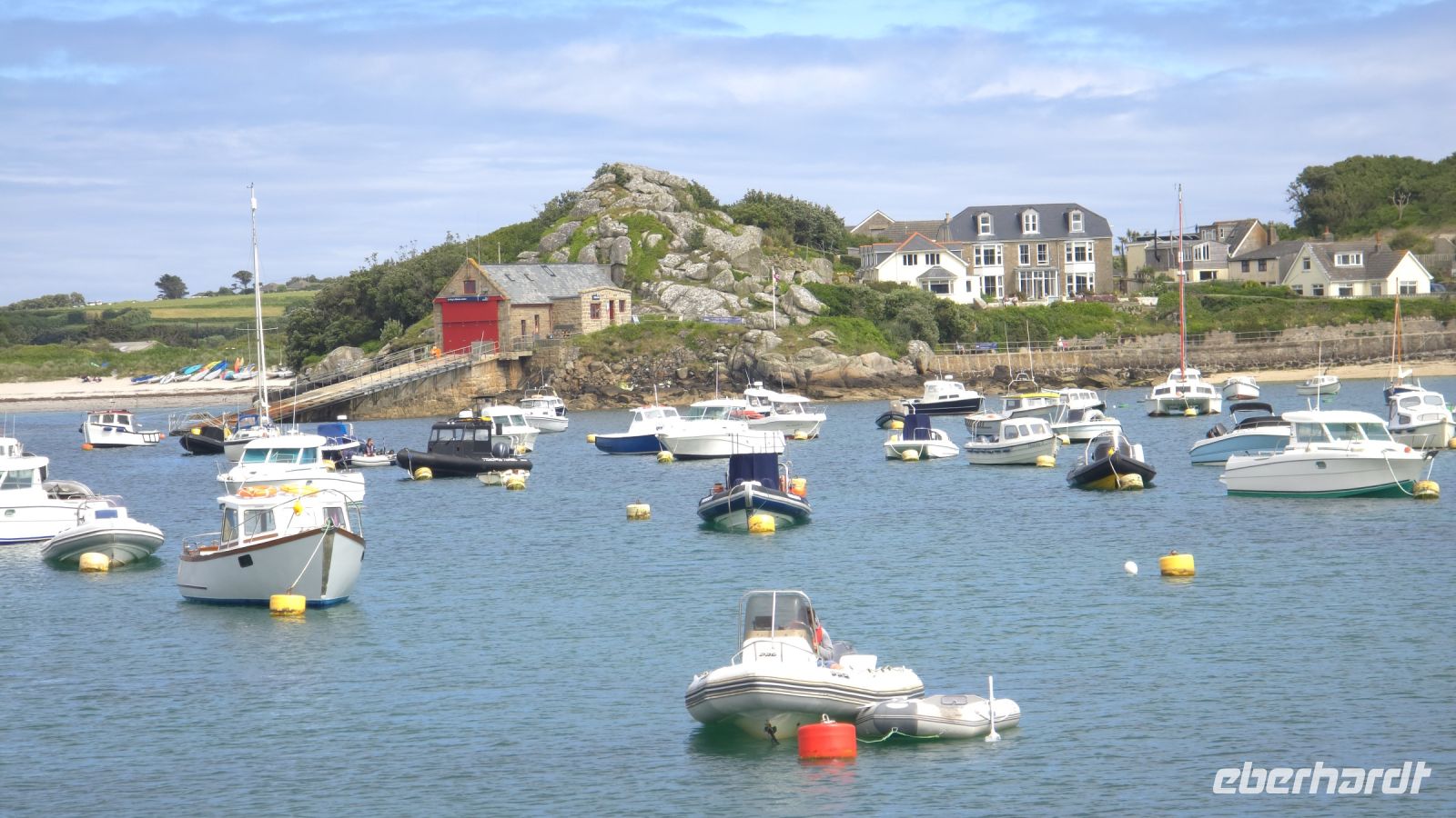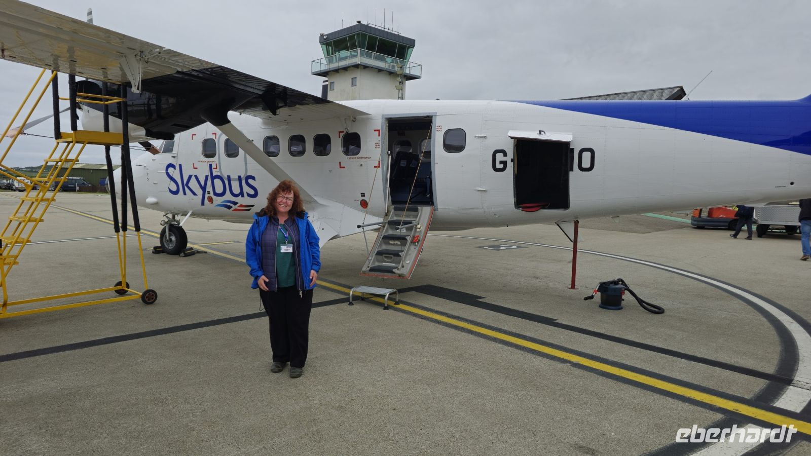 Eine Pause tut heute gut-oder ein Ausflug zu den Scilly Inseln. Der größte Teil der Gruppe besucht mit mir den Abbey-Garden auf Tresco. Zuvor aber müssen wir zur Fähre nach St. Mary. Ian bringt uns gewohnt pünktlich und sicher nach Penzance. Hier fährt unsere Fähre nach St. Marys. Freundliche Mitarbeiter geleiten uns zur Fähre, jeder erhält sein Ticket und dann können wir schon an Bord. Etwas mehr als 2,5 Stunden werden wir unterwegs sein. Also suchen sich alle einen schönen Platz, entweder auf dem Sonnendeck oder im Ruheraum unter Deck. Auf St. Mary´s angekommen wechseln wir in ein kleineres Boot zur Insel Tresco. Schon 10 Minuten später kommen wir an und spazieren gemeinsam zu den Abbey-Gärten. Die Wallhalla beherbergt Schiffsfiguren aus allen Zeitepochen und ein Spaziergang durch die Gärten überrascht mit Baumfarnen, Kamelien, Rhodedendren und vielen exotischen Pflanzen. Der Golfstrom ermöglicht eine unglaubliche Vielfalt und so würden wir gern länger bleiben- allein unser Boot ruft. Also spazieren wir um die Gärten herum und an der New Grimsby Bay wartet dann auch unser Boot, das und hierher gebracht hat. Es geht zurück nach St. Marys und von dort mit dem Shuttle zum Flughafen. Der Skybus wird uns in 2 Gruppen zum Festland zurück bringen, die kleinen Maschinen hatten wir schon auf Lands End gesehen. In 20 Minuten sind wir auch schon von den Scilly Inseln zurück nach Lands End geflogen- ein tolles Erlebnis! Wir sind etwas zu zeitig, Ian kommt aber bereits zum Flughafen und bringt uns dann sicher zurück zum Hotel. Da tauschen wir uns dann mit den Gästen aus, die hier geblieben sind und ein Italienischer Abend zum Dinner beschließt unseren Tag.