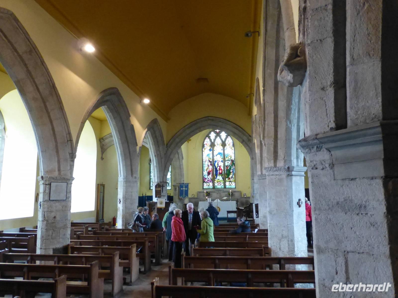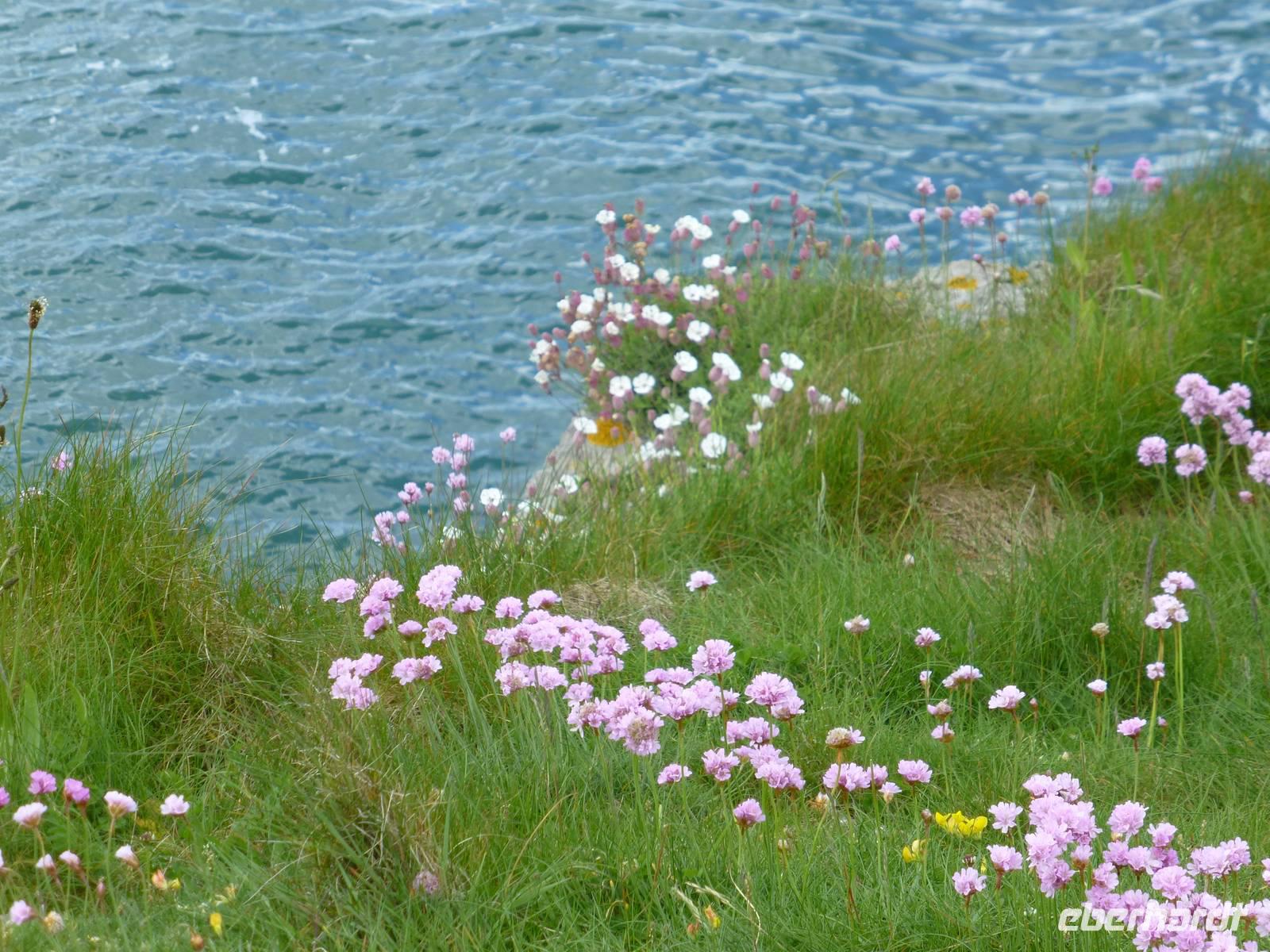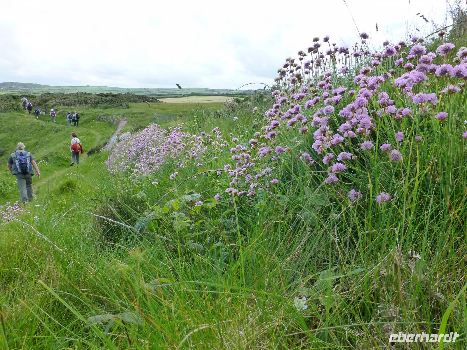 Nationalheiliger in Wales ist St. David. Sein Todestag am 01.03.588 ist der Nationalfeiertag für alle Waliser aus der Welt, der St David's Day. Geboren wurde er in der Nähe des heutigen Ortes St. David's, der kleinsten City in Großbritannien, allerdings mit großartiger Kathedrale. Aber wo ist sie denn? Sie liegt etwas versteckt, im Tal der Rosen, in welchen David einstmals ein Kloster gründete. David war ein eifriger Verbreiter des Christentums in Wales, ganz ähnlich wie Patrick in Irland. Die Kathedrale ist das letzte große Bauwerk im Normannischen Baustil. Natürlich gibt es auch schon Einflüsse der Gotik, denn gebaut wurde ab 1110. In der Mitte hängt von der Decke ein gekreuzigter Jesus herab, einmalig und beeindruckend. Die Säulen im Kirchenschiff sind ebenfalls beeindruckend, sie driften alle nach außen ab, bewundernswert ist ebenso die Deckengestaltung im Vierungsturm der Kirche. Anschließend begeben uns zu unserem Wanderausgangspunkt nach Trefasser. Entlang der Küste wandern wir auf dem Pembrokshire Coast Path zurück nach Fishguard. Die knapp 15 km sind durch eine grandiose Küstenlandschaft geprägt. Das Wetter ist fabelhaft, wir haben den ganzen Tag Sonnenschein. Dafür werden wir belohnt mit der Beobachtung von Robben, die sich in der Sonne aalen oder im Wasser Kunststücke vollführen. Beeindruckend auch die Flora, Strandnelken, Magritten, Knabenkraut, Fingerhut und zahlreiche anderer Blumen und Pflanzen die hier an der Küste heimisch sind. Am Ende der Wanderung sind alle froh, es war anstrengend aber ein Erlebnis. Nach einem, wie immer, ausgezeichneten Abendessen geht es noch auf ein Pint Bier in den Royal Oak.