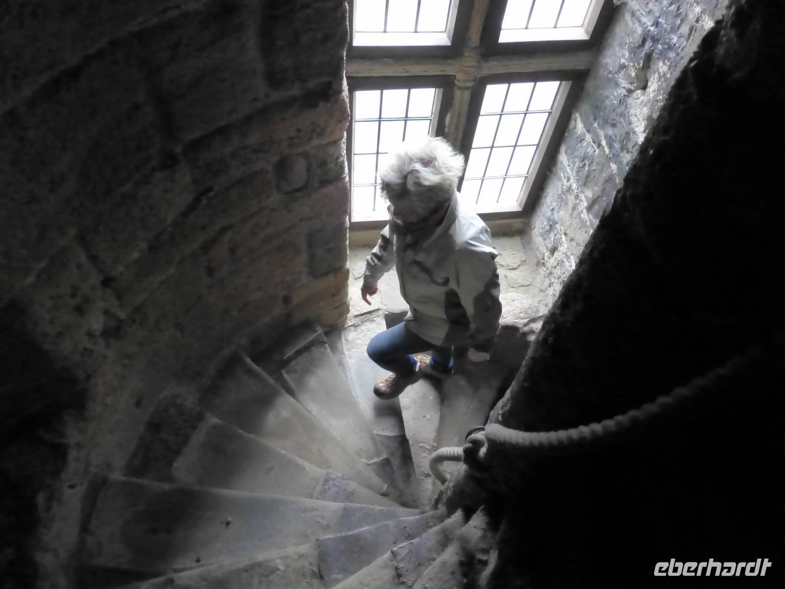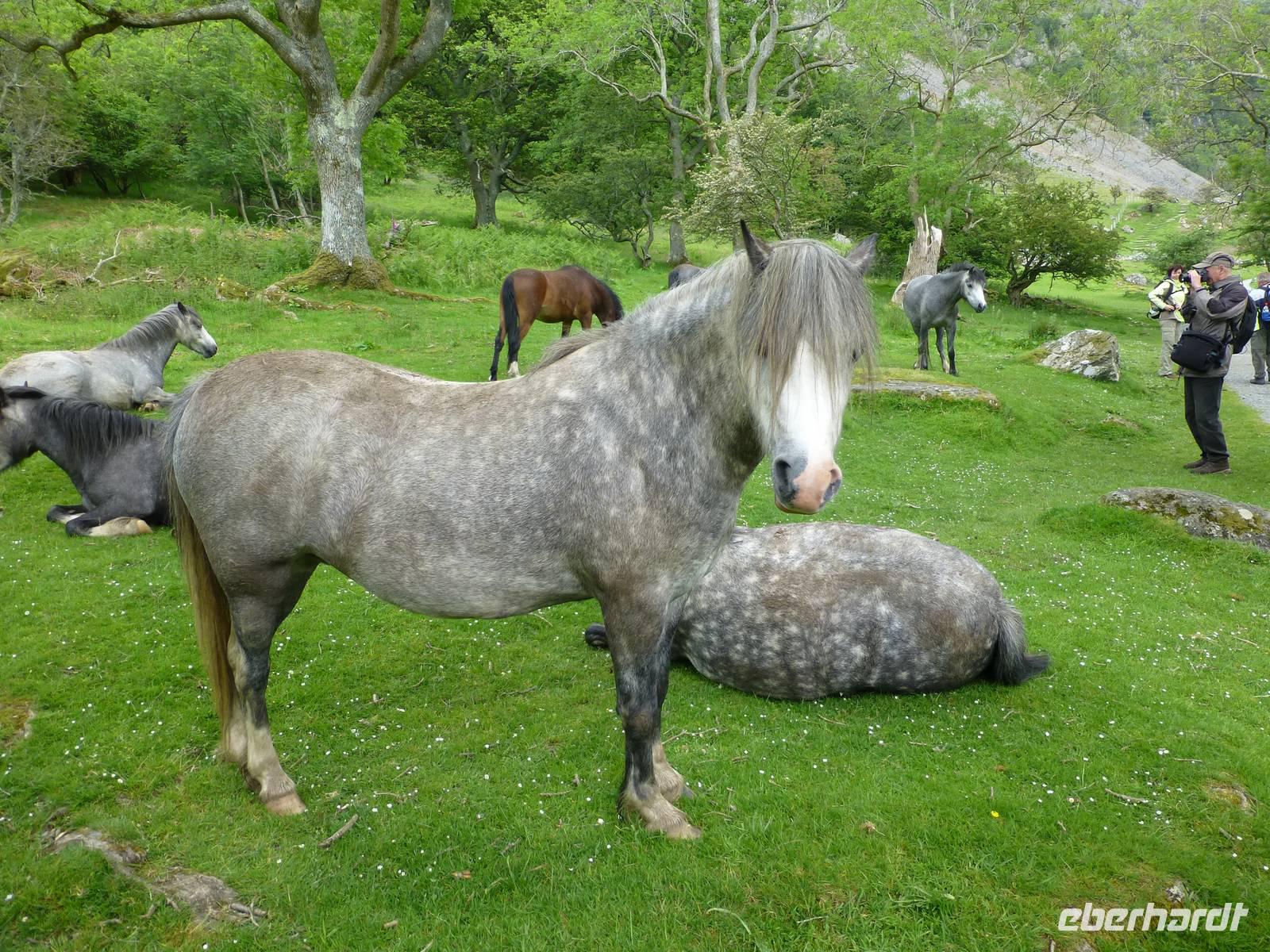 Auf dem höchsten Berg in Wales soll sich ein Grab befinden. Der Legende nach, hat König Artus hier einem Riesen mit seinem Schwert Exkalibur den Kopf abgeschlagen. Der Riese hatte zuvor natürlich Artus geärgert, indem er ihm den Bart ausgerissen hatte. Und das konnte sich Artus wirklich nicht gefallen lassen. Hier in Wales lebt die Artuslegende genauso wie in Südengland oder der Bretagne. Man kann zu Fuß auf den Mt. Snowdon wandern, dessen walisischer Name Yr Wyddfa ist und soviel wie Grab bedeutet. Wir nutzen hinauf und hinab die Snowdon Mountain Railway, eine 1896 eröffnete Zahnradbahn, die einzige in Großbritannien. Sie bringt uns auf den 1085 m hohen Gipfel, den Summit. Nach einer Auffahrt mit atemberaubenden Blicken erwartet uns auf dem Gipfel Nebel. Doch dieser reißt gelegentlich auf, so dass wir einen Eindruck bekommen können, welche Rundumsicht man hier erleben kann. Es heißt sogar, dass bei ganz klarem Wetter die Berge der Wicklow-Mountains bei Dublin zu sehen sind. Wir genießen noch einmal die Rückfahrt bis Llanberis und fahren dann zu unserer Wanderung. Ausgangspunkt ist der Ort Abergwyngregyn, nicht weit von Caernarfon entfernt. Der Weg steigt gemächlich etwas an und nach ca. 45 Minuten erreichen wir den ersten der Aber Twin Falls. Der Wasserfall stürzt aus etwa 37 m Höhe hinab. Wir passieren den kleinen Bruder des Wasserfalls und erreichen schließlich einen Bergrücken, welcher uns den Blick über die Menai Street nach bis zur Insel Anglesey erlaubt. Unterwegs sehen wir Wiesen voller violett blühender Blue Bells, aber auch knorrige verwitterte Bäume säumen unseren Weg. Nach dem steilen Abstieg hinunter nach Abergwyngregyn lassen wir uns einen Kaffee schmecken bevor wir die Rückfahrt zum Hotel antreten.