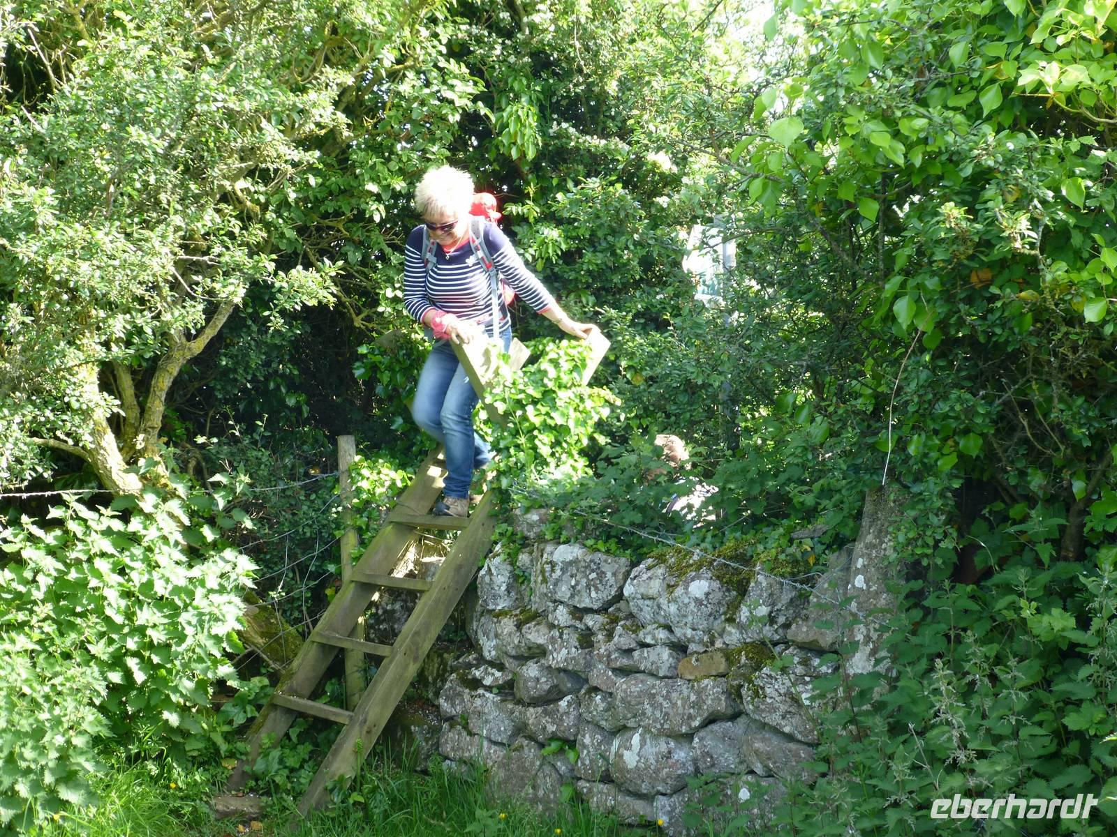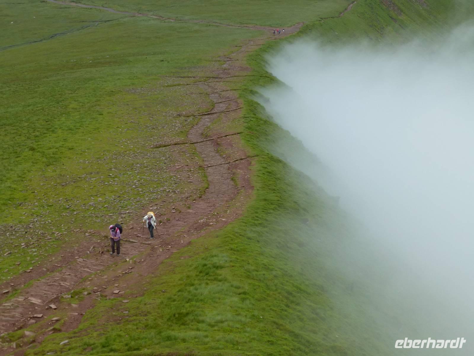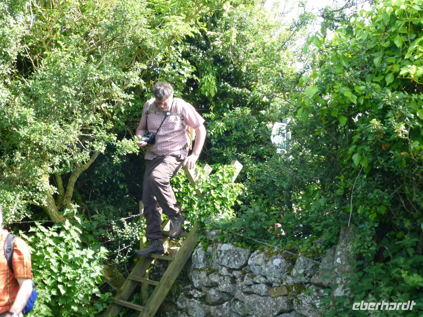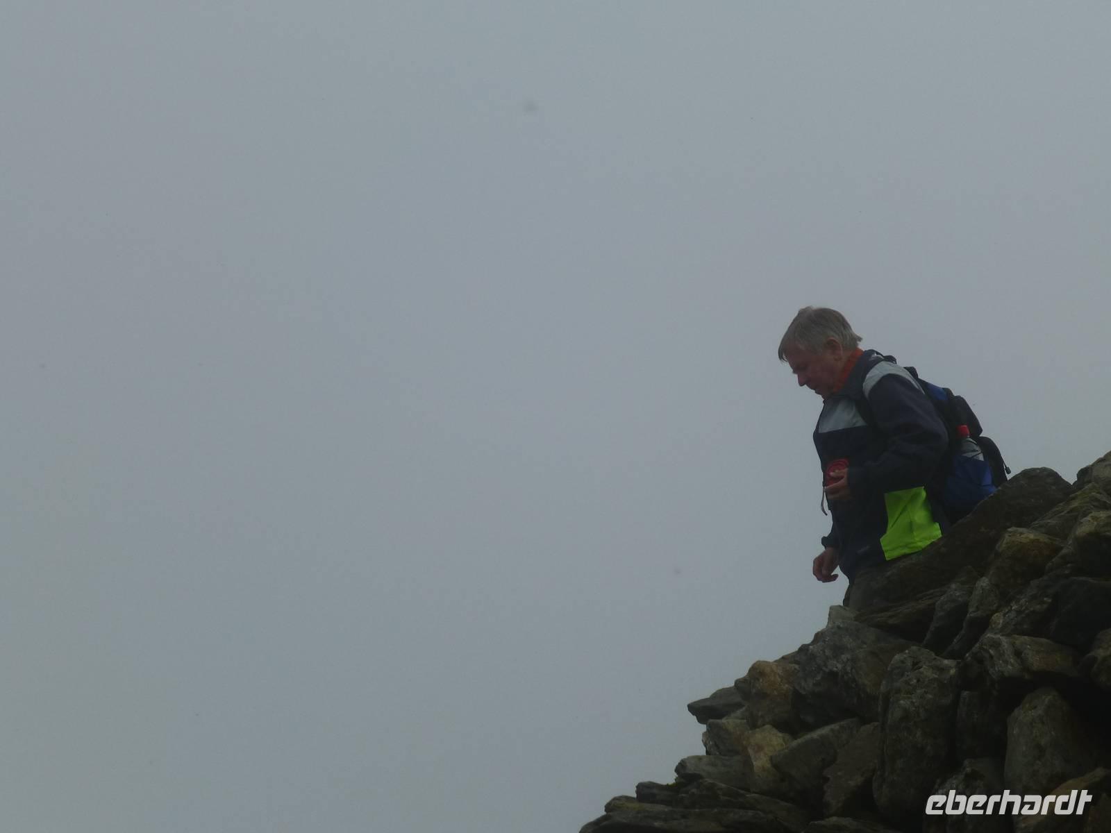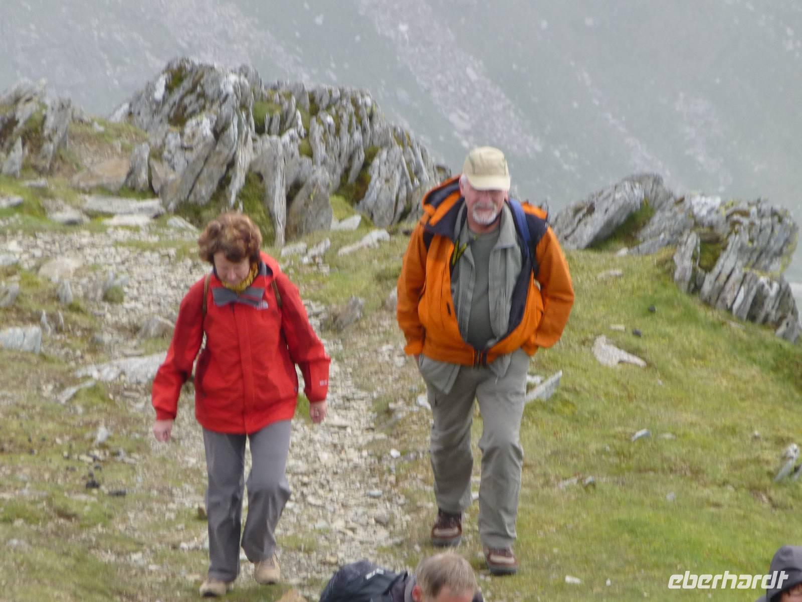Heute, an unserem letzten gemeinsamen Wandertag, zeigt sich der Himmel bewölkt. Auf dem Programm steht der Pan-y-Fan, mit 886 m der höchste Berg in Südwales. Und dieser versteckt sich auch etwas in den Wolken. Etwas Achtung haben wir alle vor dieser Wanderung, geht es doch 450 Höhenmeter hinauf und auch wieder hinunter. Wir wagen es trotz der Wolken, wir können nur gewinnen. Als wir losgehen überrascht uns als erstes ein Regenschauer. Der gut ausgebaute Weg startet bei Storey Arms, einer früheren Postkutschenstation. Nach einem ersten Anstieg wir die Strecke etwas flacher um dann steil hinauf auf den 870 m hohen Corn Du (sprich Corn Di) zu führen. Hat man diesen Gipfel erreicht ist der Rest ein Kinderspiel, wenige Höhenmeter sind es noch und das Ziel ist erreicht. Als Lohn für die Mühe, so kann man es ruhig nennen, reißt die Wolkendecke auf und wir können das komplette Panorama vom Berg aus genießen. Nach einer Fotopause auf dem Gipfel beginnen wir mit dem Abstieg. Nach gut drei Stunden sind wir wieder am Bus angekommen. Anschließend besuchen wir die Penderyn Distillery. Wir erfahren, das die Besonderheit hier ist, das nur einmal destilliert wird und der Whisky zuerst in Burbon Fässern und später in Sherry, Madeira Fässern gelagert wird. Zum Schluss der Führung können die verschiedenen Produkte, dazu gehören auch Gin, Vodka und ein Cream - Likör, verkostet werden. Am Nachmittag bleibt noch etwas Zeit zur freien Verfügung. Das Abendessen war auch heute wieder hervorragend.
