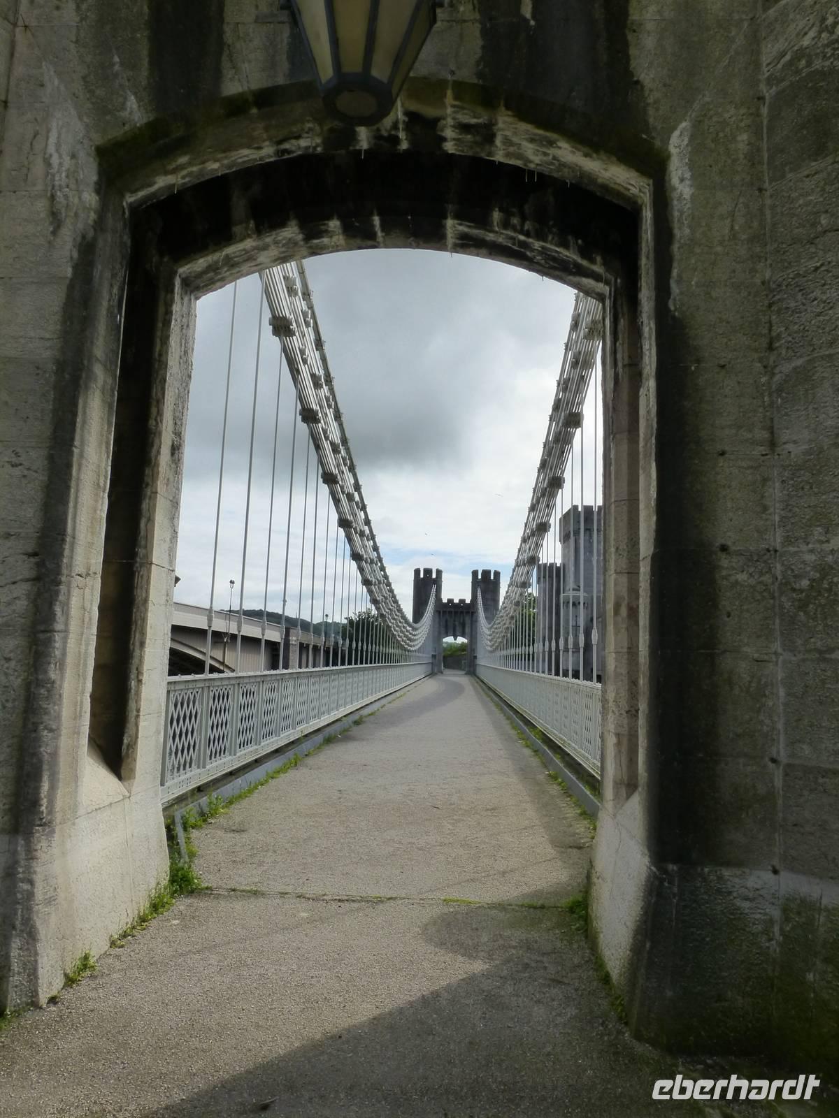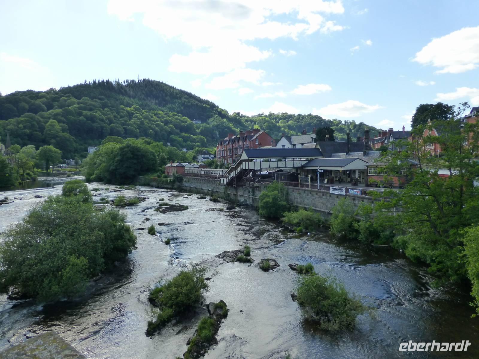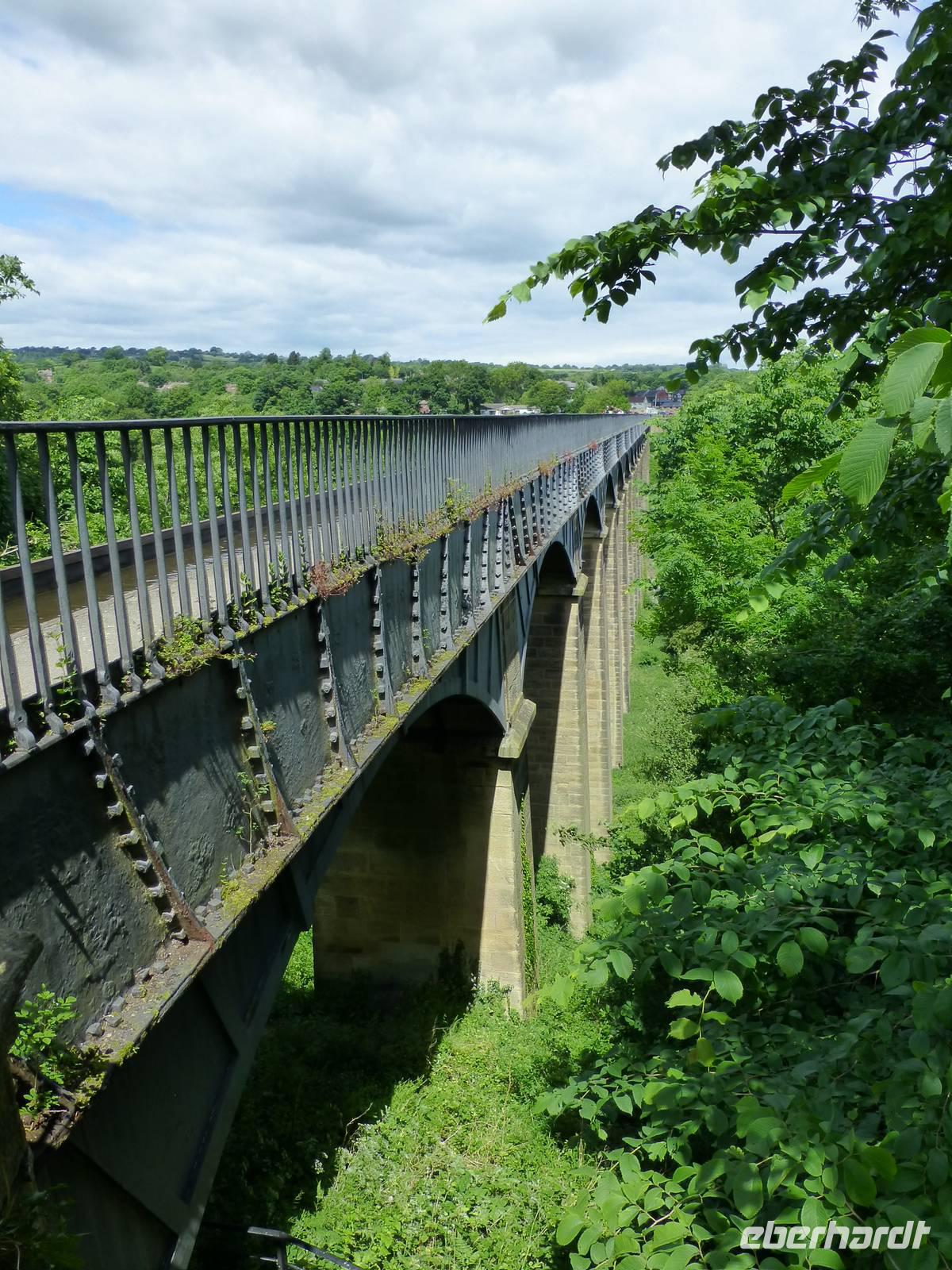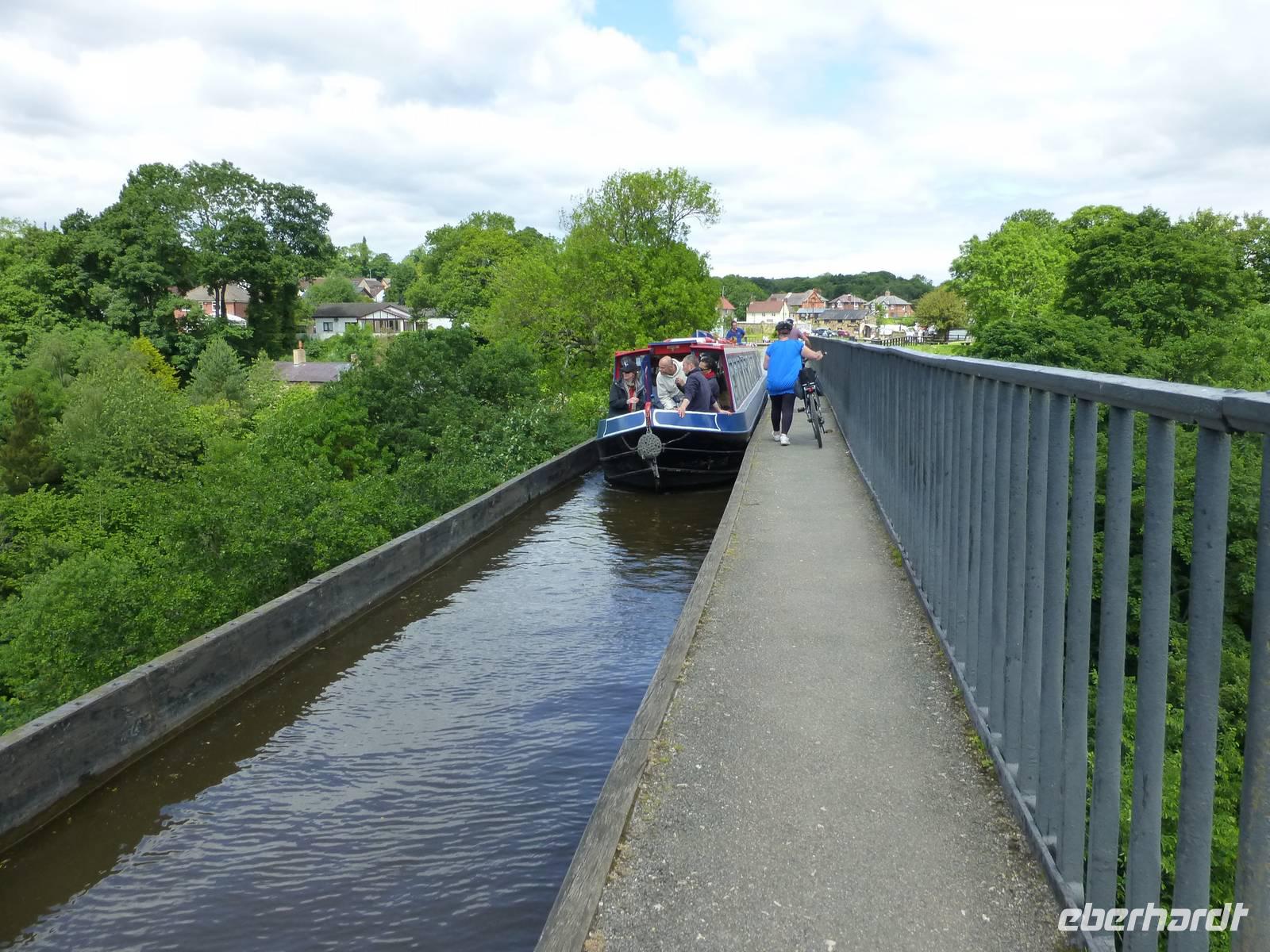 Am Vormittag besuchen wir den Bodnant Garden, gelegen im Conwy Tal. Bevor wir dort ankommen müssen wir natürlich auch noch einen kurzen Stopp in Conwy selbst machen. Auch hier hat Edward I eine Burg errichtet, derren Reste die Silouette des Ortes bestimmen. Und Thomas Telford baute hier die Menai Suspension Bridge in klein auf, es war sozusagen das Muster. Und nicht zu vergessen das schmalste Haus von Großbritannien befindet sich auch in Conwy. Mit dem Bodnant Garden empfängt uns eine super gepflegte Anlage. Es ist ein Genuss so einen Garten zu besuchen. Die Briten lieben ihre Gärten und zahlreiche Besuchen an diesem Mittwoch Morgen machen dass deutlich. Danach fahren wir nach Llangollen, einem Marktstädtchen im Dee-Tal. Zuerst besichtigen wir das außerhalb befindliche Pontyscyllte Aquädukt, welches von 1795 - 1805 durch den Ingenieur Thomas Tellford errichtet wurde. Über die Wasserstraßenbrücke können die Boote, welche den Llangollen Kanal befahren das Dee-Tal überqueren. Wir bewundern die Baukunst und bestaunen mit welcher Sicherheit die Bootskapitäne das Boot über diese Brücke steuern.