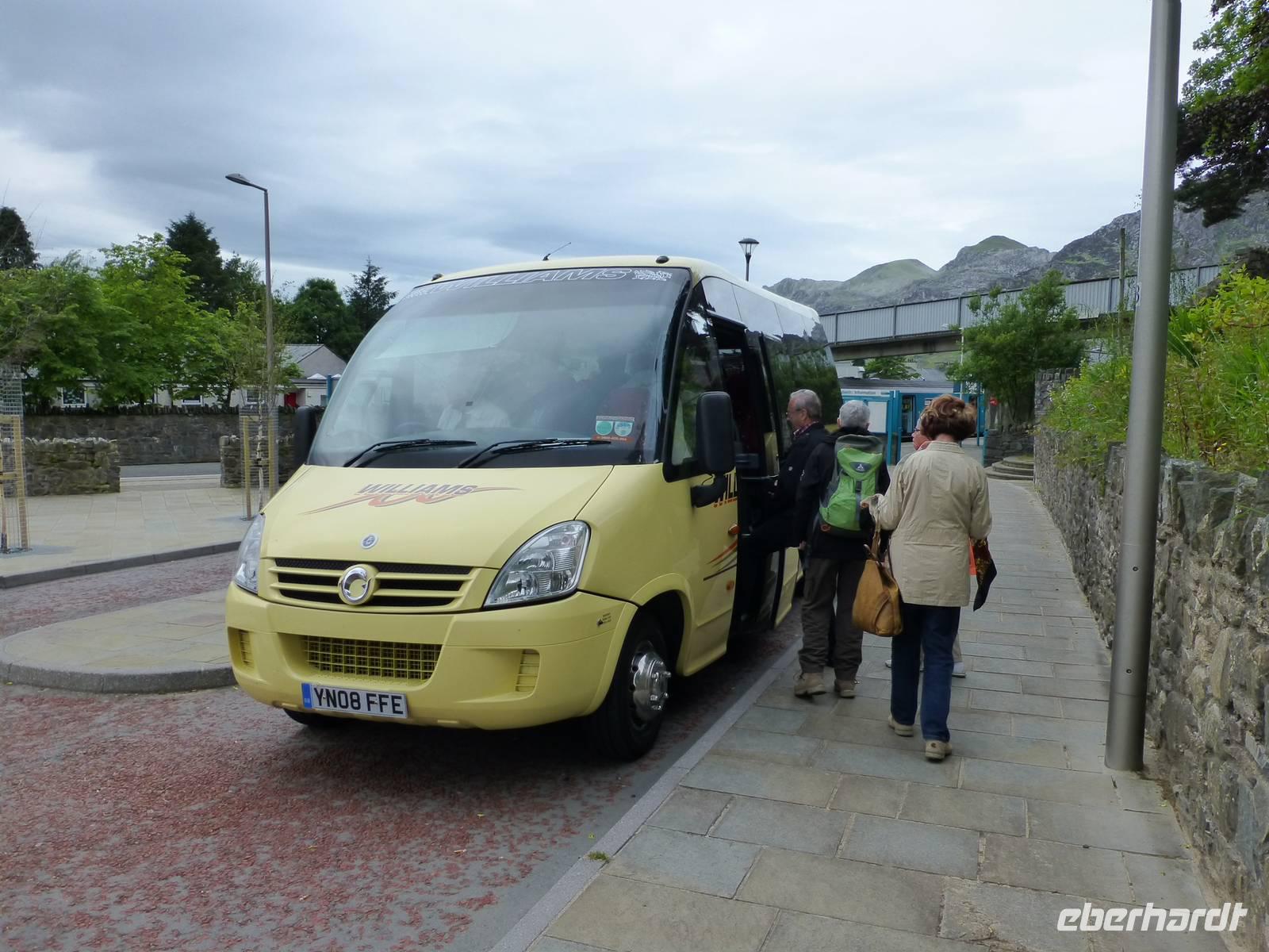Nach einem guten Frühstück starten wir zu einem Rundgang durch die Stadt Caernarfon. Gegründet wurde die heutige Stadt 1283, dem Zeitpunkt als Edward I begann das Carnarfon Castel zu errichten. Er wollte ein Konstantinopel in Wales errichten und so hat das Castle eine andere Architektur wie die anderen von ihm gebauten Burgen. Achteckige Türme und „Intarsien" im Mauerwerk machen das deutlich. Der erste Prinz of Wales, der spätere Edward II, wurde hier geboren, das war ein wichtiger Schritt für die Angliederung von Wales an England. Wichtig ist die Burg auch für die Investitur des Prinzen of Wales. Prinz Charles, der jetzige Prince of Wales, erhielt hier ebenfalls seine Investitur. Eine Ausstellung in einem der Burgtürme berichtet darüber. In der Burg kann man die verschiedenen Türme besteigen und die Mauern zu begehen. Da gibt es fast keine Einschränkungen und das ist schön. Nach der Besichtigung und einer anschließenden Pause fahren wir auf die Insel Anglesey. Diese ist nur durch eine schmale Meerenge, die Menai Street, vom Festland getrennt und mit diesem durch zwei Brücken verbunden. Die Britannia Bridge wurde durch Robert Stephenson konstruiert und die Menai Suspension Bridge durch den bedeutenden Baumeister Thomas Tellford. Die anschließende Wanderung führt uns rund um den kleinen Küstenort Moelfre. Bekannt ist dieser vor allem durch seine Lifeboat Station. Mit dem hier stationierten Rettungsboot wurden schon 3000 Menschen aus Seenot gerettet. Bei schönstem Sonnenschein wandern wir entlang der Küste und genießen die Ausblicke. Später wenden wir uns von der Küste ab und besichtigen im Hinterland die frühchristliche Siedlung Din Lligwy. Gleich nebenan steht ganz romantisch die Ruine einer kleinen Gemeindekirche, deren Wurzeln bis in das 13. Jh. zurück reichen. Beachtenswert ist auch der Dolmen von Din Lligwy. Er stammt wieder aus einer ganz anderen Zeit. Sein Alter wird auf ca. 5000 Jahre geschätzt, er gehört in die Zeit der Megalithkultur. Vor allem sein Deckstein ist sehr beachtlich, er wiegt 25 t und die Frage wie die Menschen zur damaligen Zeit das alles bewältigen konnten bleibt. Nach gut 3 Stunden und ca. 9 km Wegstrecke erreichen wir wieder unseren Bus. Auf der Fahrt zurück zum Hotel machen wir zuerst einen kurzen Stopp im Ort mit dem längsten Ortsnamen in Europa. "Llanfairpwllgwyngyllgogerychwydobwllllantysiliogogogoch" heißt dieser, 58 Buchstaben bilden dieses für deutsche Zungen fast unaussprechliche Wort. Die deutsche Übersetzung bedeutet: "Die Kirche Marias in der Senke des weißen Haselnussstrauches, nahe dem reißenden Strudel und der Kirche Tysilos unweit der roten Höhle."