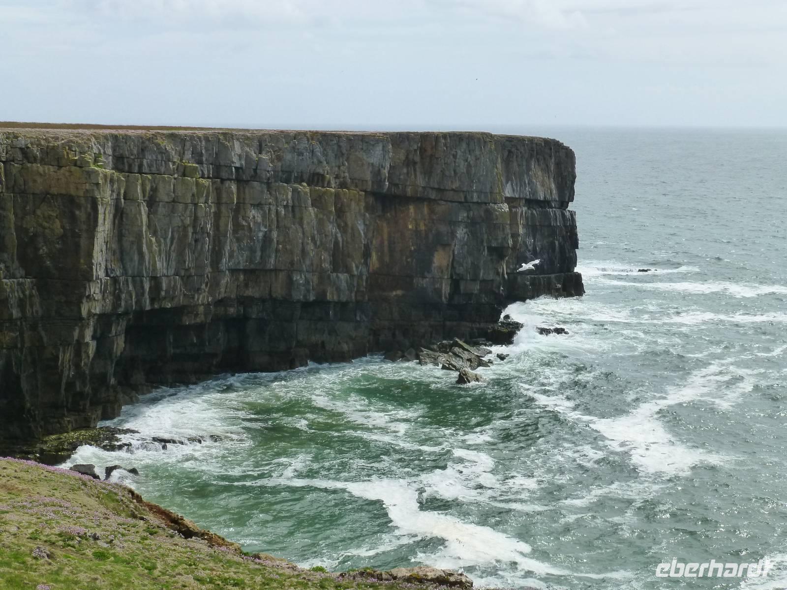 Von Fishguard fahren wir am Morgen Richtung Pembroke und von dort aus an die Küste von Südwales in den kleinen Ort Bosherton. Hier startet unsere Wanderung, wieder auf dem Pebrokeshire Coast Path. Vorbei an den Lily Ponds erreichen wir den Küstenweg. Allerdings ist die Küstenlandschaft hier eine andere. Gewaltige Klippen fallen hier steil ab ins Meer. Unser Weg folgt zuerst immer der Küstenlinie. An den Klippen können wir neben Möwen auch Trottelumme beobachten, welche hier ihre Brutplätze haben. Über einen Sandstrand wo am Wochenende gern sonnenhungrige Waliser hinkommen, erreichen wir Stackpole Quay. Wir machen hier unsere Mittagspause. Durch Stackpole Park erreichen wir wieder die Liliy Ponds und dann unseren Parkplatz. Nach einer schönen Wanderung, wieder im Sonnenschein fahren nach Brecon zu unserem letzten Übernachtungsort. Hier wohnen wir im sehr sympathischen Brecon Castle Hotel.