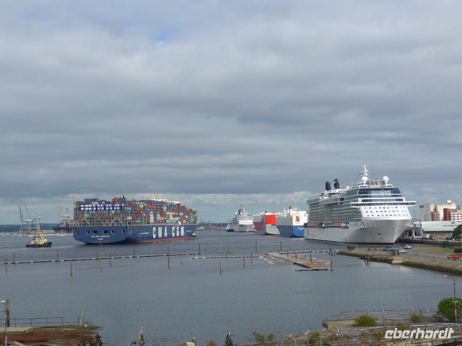 Schon zeitig startete der Bus von Dresden aus, denn schon am heutigen Tag sind fast 1000 Km bis nach Calais zurückzulegen. Unterwegs stiegen nach und nach Gäste zu, so dass ab Flughafen Paderborn schließlich alle an Bord waren. Bis nach Calais ging es nicht nur quer durch Deutschland, nein auch Belgien mit seiner flachen ostflandirischen Polderlandschaft und natürlich Frankreich lagen lange Zeit auf unserer Wegstrecke. Eine echte Geduldsprobe war Antwerpen mit seinem schleppenden Verkehr und langen Staus. Endlich nach vielen Stunden mit wechselnden Landschaften hatten wir Calais erreicht. Durch die Zerstörung im 2. Weltkrieg hatte es wenig Touristisches zu bieten. Dennoch für die die Fährverbindung über den Ärmelkanal ein internationaler Anlaufpunkt. Von Weiten ist gut erkennbar der im flämischen Renaissancestiel erbaute Rathausturm. Davor das Denkmal „Bürger von Calais", ein Bronzedenkmal des französischen Bildhauers Auguste Rodin. Nach einem guten Essen fielen die Meisten erschöpft ins Bett, denn morgen muss schon zeitig aufgestanden werden um die gebuchte Fähre zu erreichen.