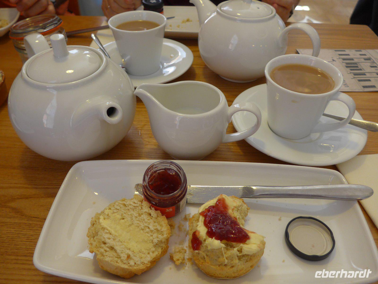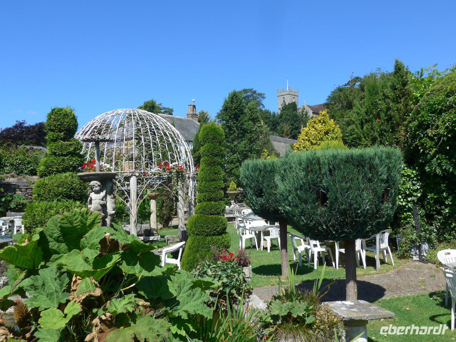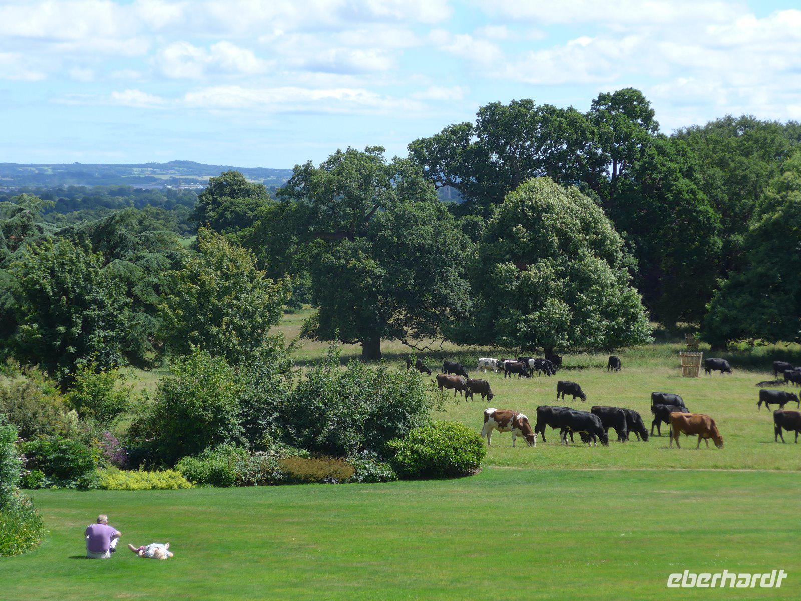 Mit der Anziehungskraft Esoteriker hat es wenig zu tun. Vielmehr hat es schon vor mehr als 5000 Jahren der Sonnenbeobachtung gedient. Und dennoch waren einige Gruppen mit Gebetsrieten unter den Besuchern. Mittels eines differenzierten Kalendersystems wurden die Saat- u. Erntezeiten berechnet. Außerdem war es auch Stätte des Totenkultes, was die umliegenden Hügelgräber bestätigen. Seit 1901 wurde jeder Stein hier mindestens einmal umgedreht und so Kostbarkeiten zu Tage gebracht. In der kahlen Ebene, die kein Ende hat wirkt das Monument von der Ferne eher unscheinbar. Vor mehr als 5000 Jahren wurden hier zentnerschwere Trilithen u. Blausteine von weit her gebracht u. nach genauen astronomischen u. mathematischen Methoden aufgestellt. An den Resten ist die exakte Baukunst noch heute sichtbar. Künstler der Romantik hatte es ebenfalls in den Bann gezogen. So sah William Turner die Kultstätte bei Gewitter mit einer Schafsherde und hielt diesen Moment fest. Der Schriftsteller Henry James sah diesen stummen Zeitzeugen zum ersten Mal und war fasziniert, so dass er diesen Moment literarisch als „Tempel der Winde" verewigte. Nun auch wir näherten uns zeitig der kahlen und grenzenlosen Heide, um bei jährlich fast 1 Mio. Besuchern noch etwas von dem Mysterium des Ortes ohne den Touristenrummel zu erleben. Auf halber Strecke stiegen wir aus und gingen über die Felder, vorbei an zutraulichen Kühen, zum Monument. Ausgestattet mit dem notwendigen Equipment erforschen wir das Mysterium, auch wenn wir nur beschränkt herankamen. Nun wir erlebten ein Ereignis der Vergangenheit, das so wenig verbunden war mit der Gegenwart und dennoch versetzte es uns zurück in das Dunkel eines unbekannten Zeitalters jenseits aller geschichtlichen Kunde. Mit diesen Eindrücken ging es nach der Mittagspause in Richtung Killerton House. Auf der Fahrt durch die Grafschaft Dorset betrieb man „Augenpflege" oder erfreute sich an der Landschaft entlang des Weges. In Killerton House angekommen wartete auf uns ein dreifaches Vergnügen. Zuerst durchstreiften wir unter fachkundiger Führung den Landschaftsgarten. Einfach ein Bilderrahmen in die Landschaft gestellt - die umliegende reizvolle Landschaft schafft das Kunstwerk u. die Szenerie für ein passendes Gruppenfoto. Immer wieder mussten wir durch Gatter, die im englischen „Kussgatter" genannt werden. Danach der Cream-Tea im Gartensaal und eine kurze Führung durchs Haus. Am Ende blieb auch noch Zeit den Garten um das Haus auf eigene Faust zu erkunden, bevor es dann mit schönen Bildern zum nächsten Hotel in der Nähe von Exeter ging.