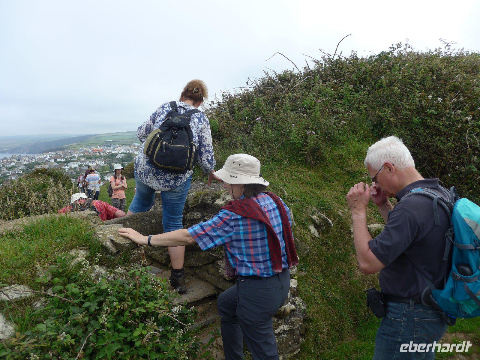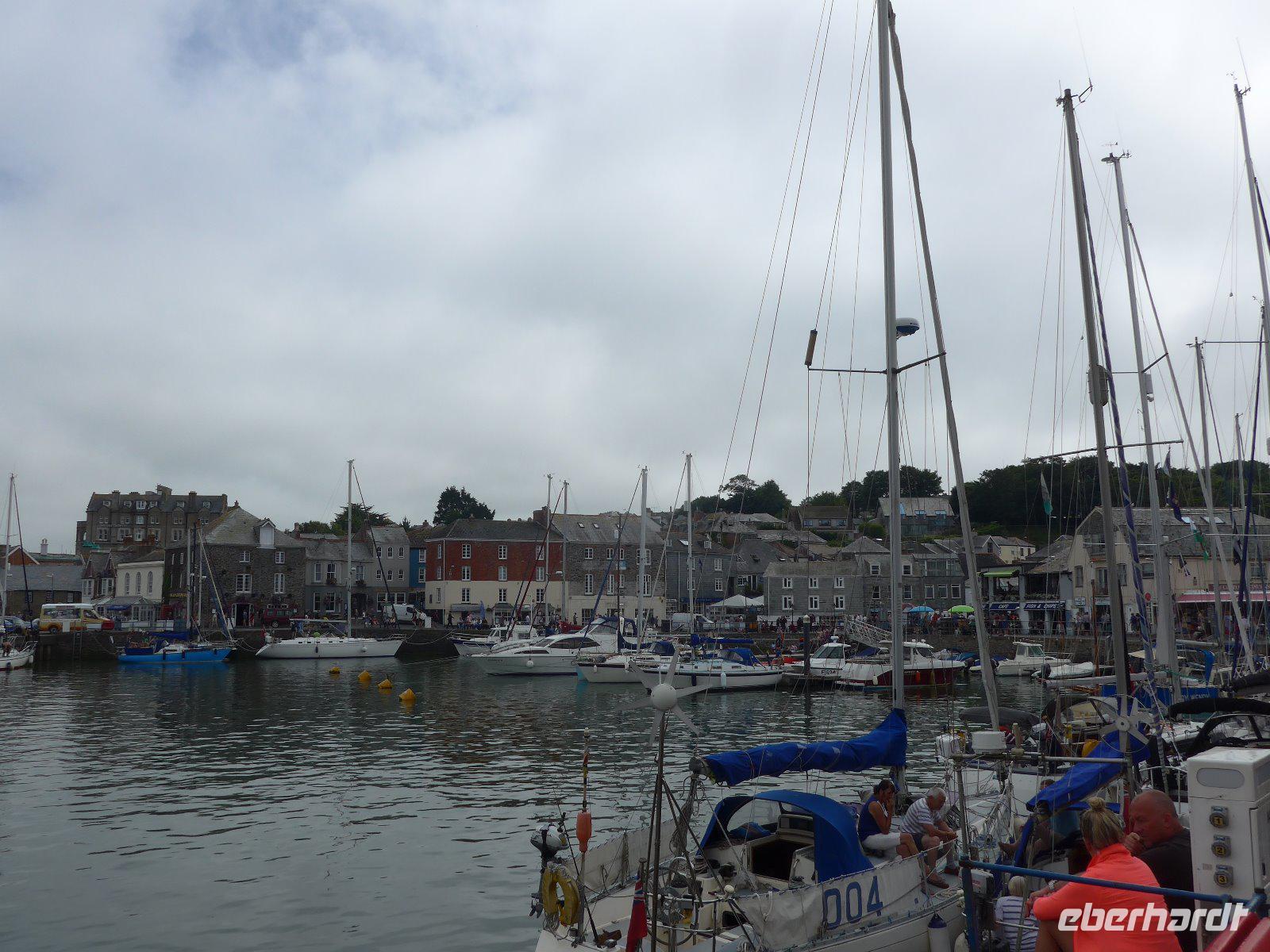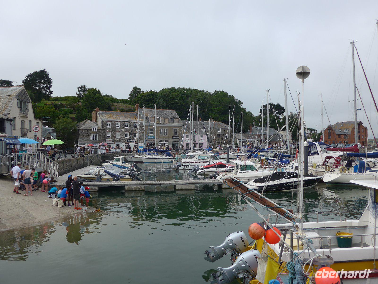 Die Reiseleitung musste die Gruppe zunächst allein mit dem Wanderführer auf Tour schicken, denn nach einer Schrecksekunde am Vortag wollten wir nochmals auf Nummer sicher gehen und den lädierten Fuß eines Gastes nochmals von einem Arzt im Krankenhaus ansehen lassen. Am Ende kann Entwarnung gegeben werden. Dann schnell noch mit dem Taxi der Gruppe nachgefahren u. dann der Versuch der Gruppe das letzte Stück noch entgegenzugehen. Mit Umwegen hatte ich diese auch erreicht und so konnten wir das letzte Stück gemeinsam noch erleben und genießen. Schon bei diesem Stück konnte ich erahnen welche Leistung die Gruppe heute vollbracht hat. Am Ende hatte sich die Gruppe eine Pause verdient. Beim Mittagessen und auf dem Rückweg immer wieder Menschenaufläufe - ein Filmset einer bekannten englischen Serie verursachte die Menschenaufläufe. Da keine Komparsen mehr benötigt wurden, suchte man sich eine passende Sitzgelegenheit und einige genossen die Zeit im malerischen Fischerdorf Isaac. Als Überraschung fuhren wir noch in einen anderen Küstenort. Erst kurz vor Ankunft wurde das Geheimnis gelüftet. Wir waren in Padstow, das für sein Museum für Lobster aber für sein herrliches Herrenhaus der Familie Prideaux bekannt ist. Jeder konnte diesen Ort individuell erkunden - ein Eis durfte hier nicht fehlen. Doch Vorsicht - die Möven lieben die süße Köstlichkeit ebenso. Angriffe auf die Eiskugeln sind keine Seltenheit. Mit etlichen Wanderkilometern in den Beinen trat die Gruppe die Heimreise ins Hotel an.