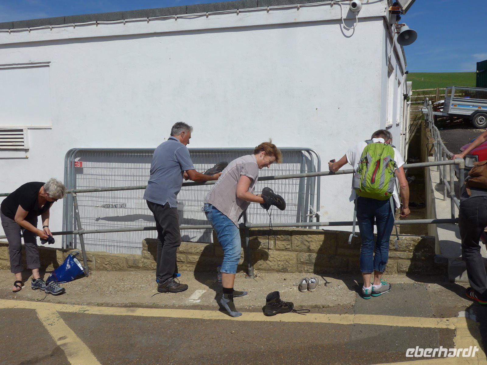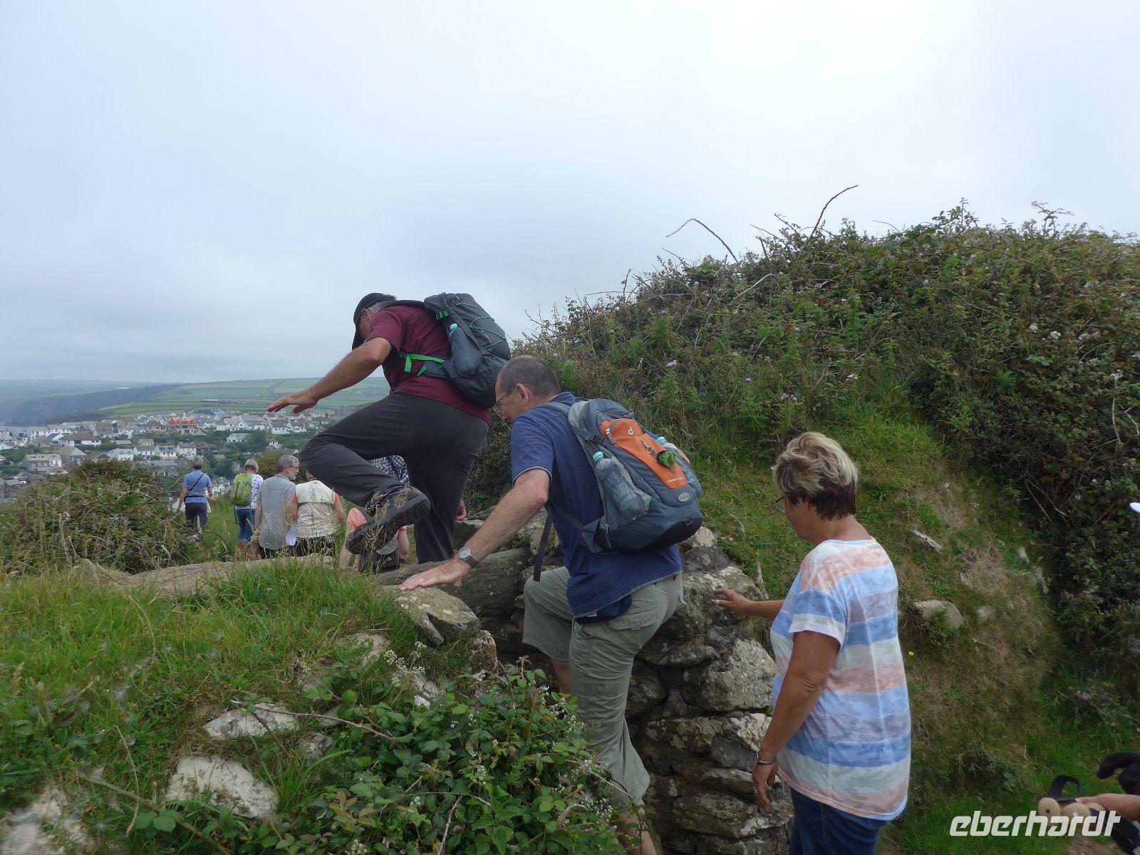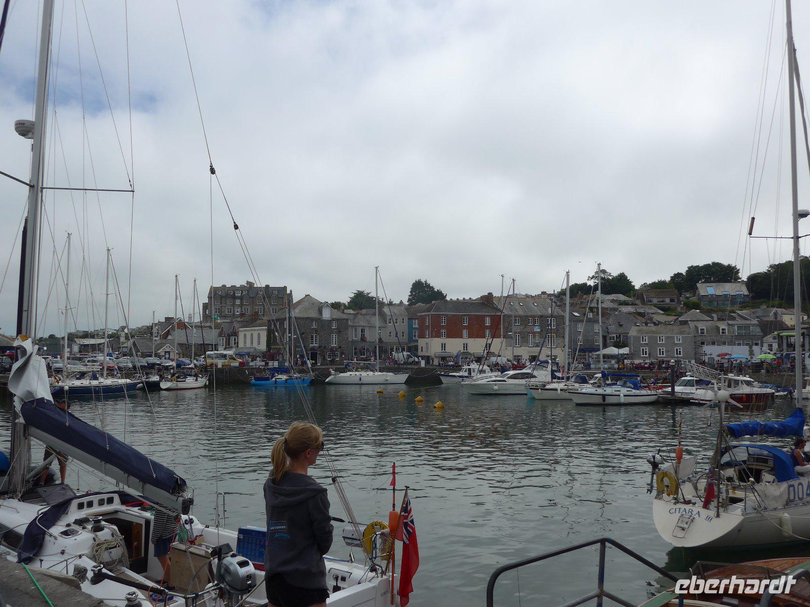 Die Reiseleitung musste die Gruppe zunächst allein mit dem Wanderführer auf Tour schicken, denn nach einer Schrecksekunde am Vortag wollten wir nochmals auf Nummer sicher gehen und den lädierten Fuß eines Gastes nochmals von einem Arzt im Krankenhaus ansehen lassen. Am Ende kann Entwarnung gegeben werden. Dann schnell noch mit dem Taxi der Gruppe nachgefahren u. dann der Versuch der Gruppe das letzte Stück noch entgegenzugehen. Mit Umwegen hatte ich diese auch erreicht und so konnten wir das letzte Stück gemeinsam noch erleben und genießen. Schon bei diesem Stück konnte ich erahnen welche Leistung die Gruppe heute vollbracht hat. Am Ende hatte sich die Gruppe eine Pause verdient. Beim Mittagessen und auf dem Rückweg immer wieder Menschenaufläufe - ein Filmset einer bekannten englischen Serie verursachte die Menschenaufläufe. Da keine Komparsen mehr benötigt wurden, suchte man sich eine passende Sitzgelegenheit und einige genossen die Zeit im malerischen Fischerdorf Isaac. Als Überraschung fuhren wir noch in einen anderen Küstenort. Erst kurz vor Ankunft wurde das Geheimnis gelüftet. Wir waren in Padstow, das für sein Museum für Lobster aber für sein herrliches Herrenhaus der Familie Prideaux bekannt ist. Jeder konnte diesen Ort individuell erkunden - ein Eis durfte hier nicht fehlen. Doch Vorsicht - die Möven lieben die süße Köstlichkeit ebenso. Angriffe auf die Eiskugeln sind keine Seltenheit. Mit etlichen Wanderkilometern in den Beinen trat die Gruppe die Heimreise ins Hotel an.