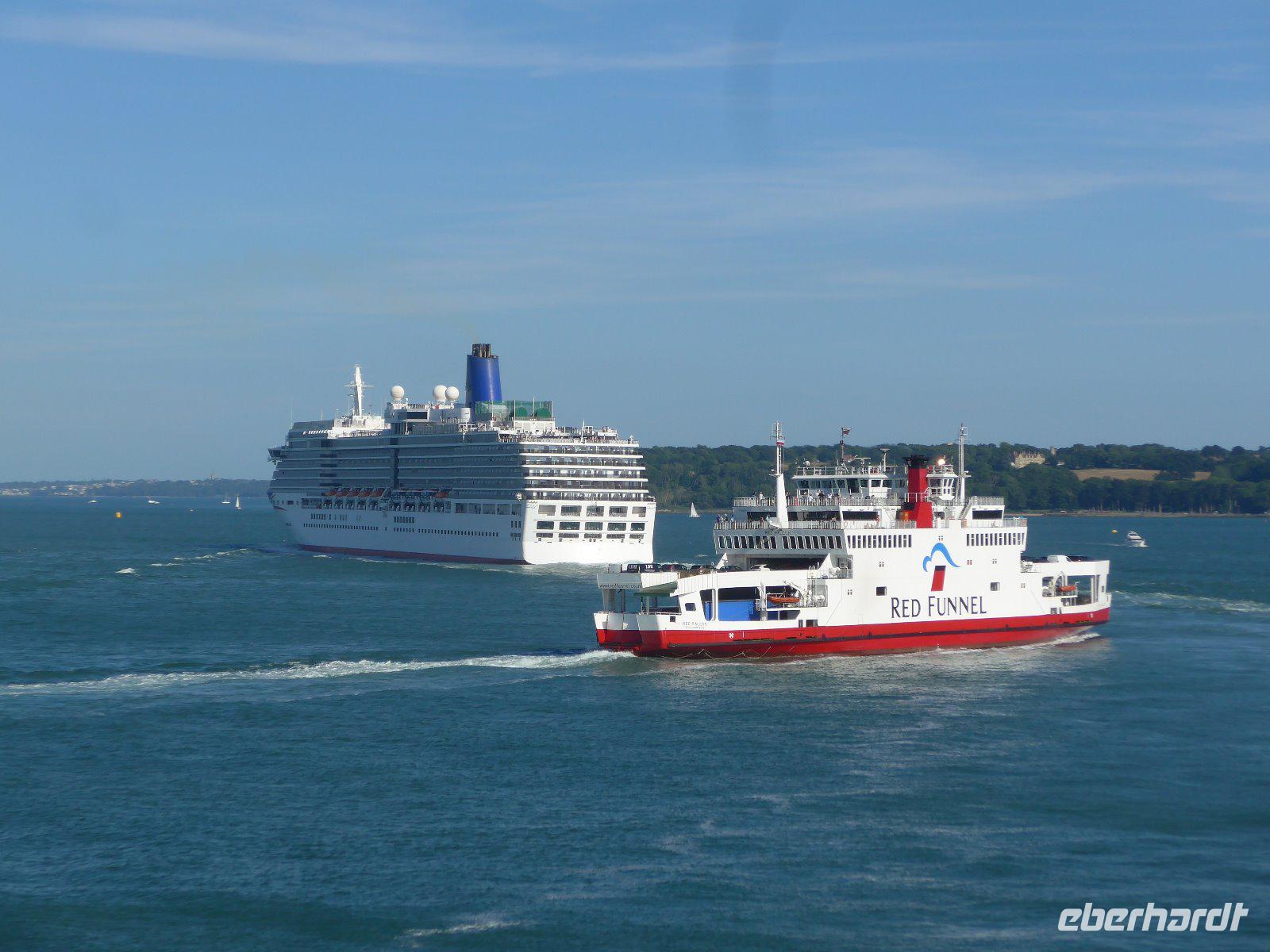 Heute statteten wir der „Insel vor der Insel" einen Besuch ab. Dazwischen lag nur der Solent. Bei gutem Wetter liegt er in glitzernder Pracht. Bei der Rückfahrt konnten wir dies in vollen Zügen genießen. Am Fährhafen geschäftiges Treiben - Isle of Wight ist per Fähre oder auch per Hooverkraft zu erreichen. Fast im Halbstundentakt kann man die Insel, die auch als „Insel der Blumen" bezeichnet wird erreichen. Mir entlockt es nur ein kurzes Victoria, die Ruh ist hin und schon geht es auch für uns los mit der Überfahrt. Isle of Wight, bunt wie die Klippen der Alum Bay, Insel für Strategen u. Luxussegler, einst Gefängnis eines Königs. Schon von Weiten sah man die Mündung von Cowes und in East Cowes legten wir an und hatten wieder festen Boden unter den Füssen. So zahlreich die Attribute der Insel sind, so voll kann der Solent zur Zeit der Cowes Week sein. Einst ein Event für die Upper-Class ist sie jetzt eine Veranstaltung für jeden Segelsportbegeisterten mit dem nötigen Kleingeld. Schon William Turner hielt den Sorent mit vollen Segeln bei einem Besuch 1827 fest. Den Rest des Jahres aber fristet Cowes den Schlaf einer Kleinstadt. Nebenbei sei noch bemerkt, dass auch Kaiser Wilhelm II Mitglied des örtlichen Yachtclubs war und immer an den Regatten teilnahm - eingeschlossen waren die verbalen Machtkämpfe zwischen ihm und seinem Onkel Edward VII. Er war so begeistert von dieser Regatta, dass er die Cowes Week als Vorbild für die von ihm ins Leben gerufene Kieler Woche nahm.