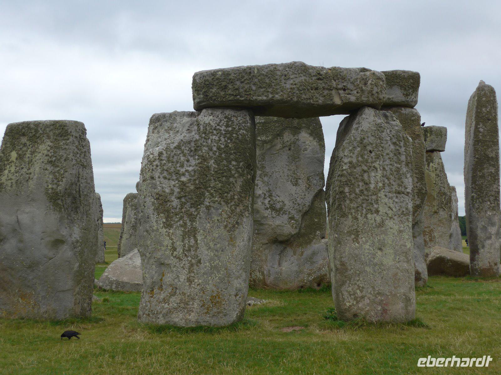 Die Deckplatten, bezeichnet als „hanging stones" (hängende Steine) gaben diesem prähistorischen Monument seinen Namen - Stonehenge.