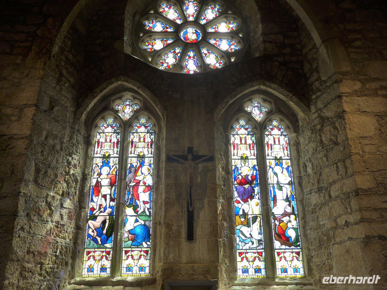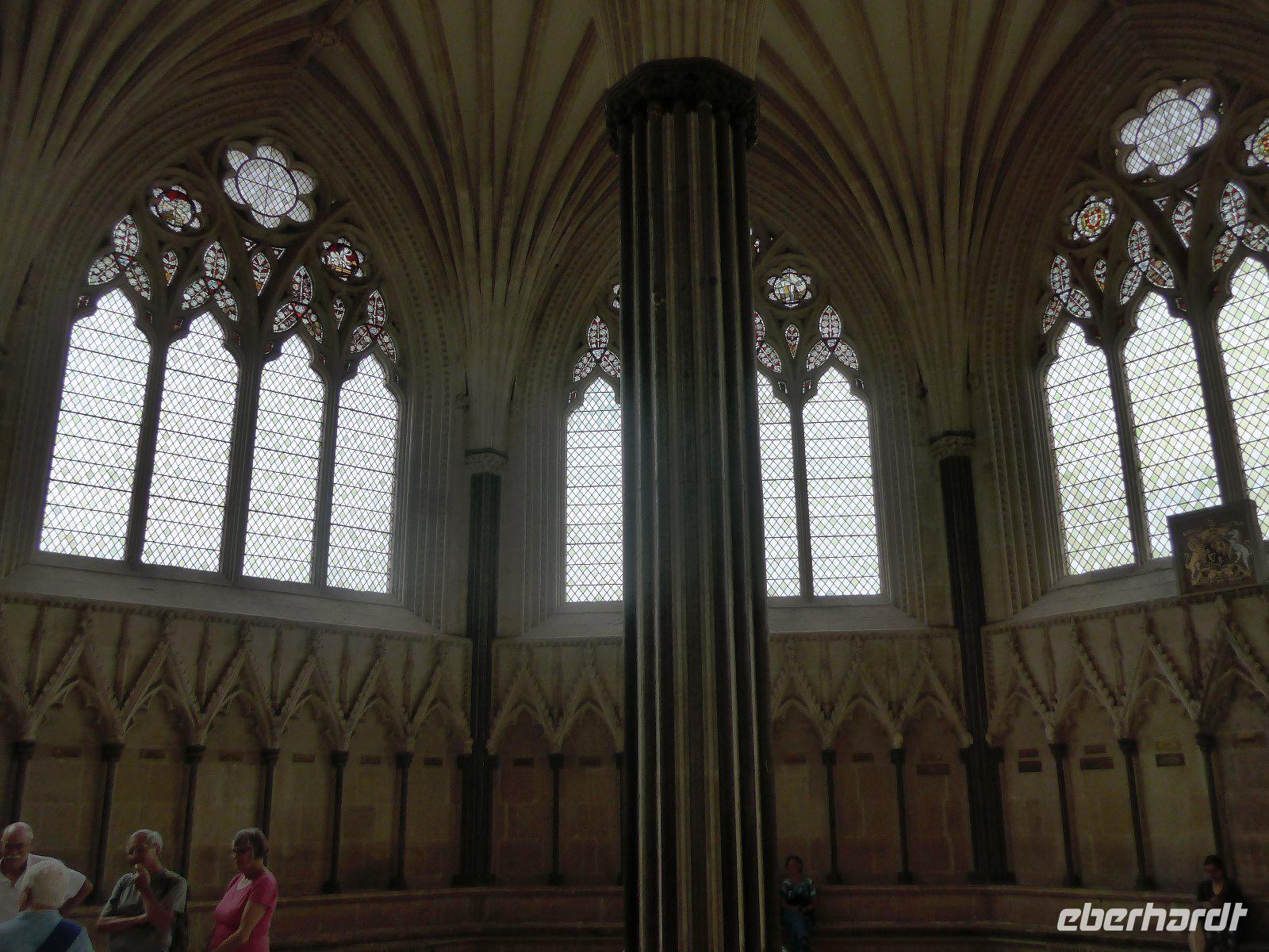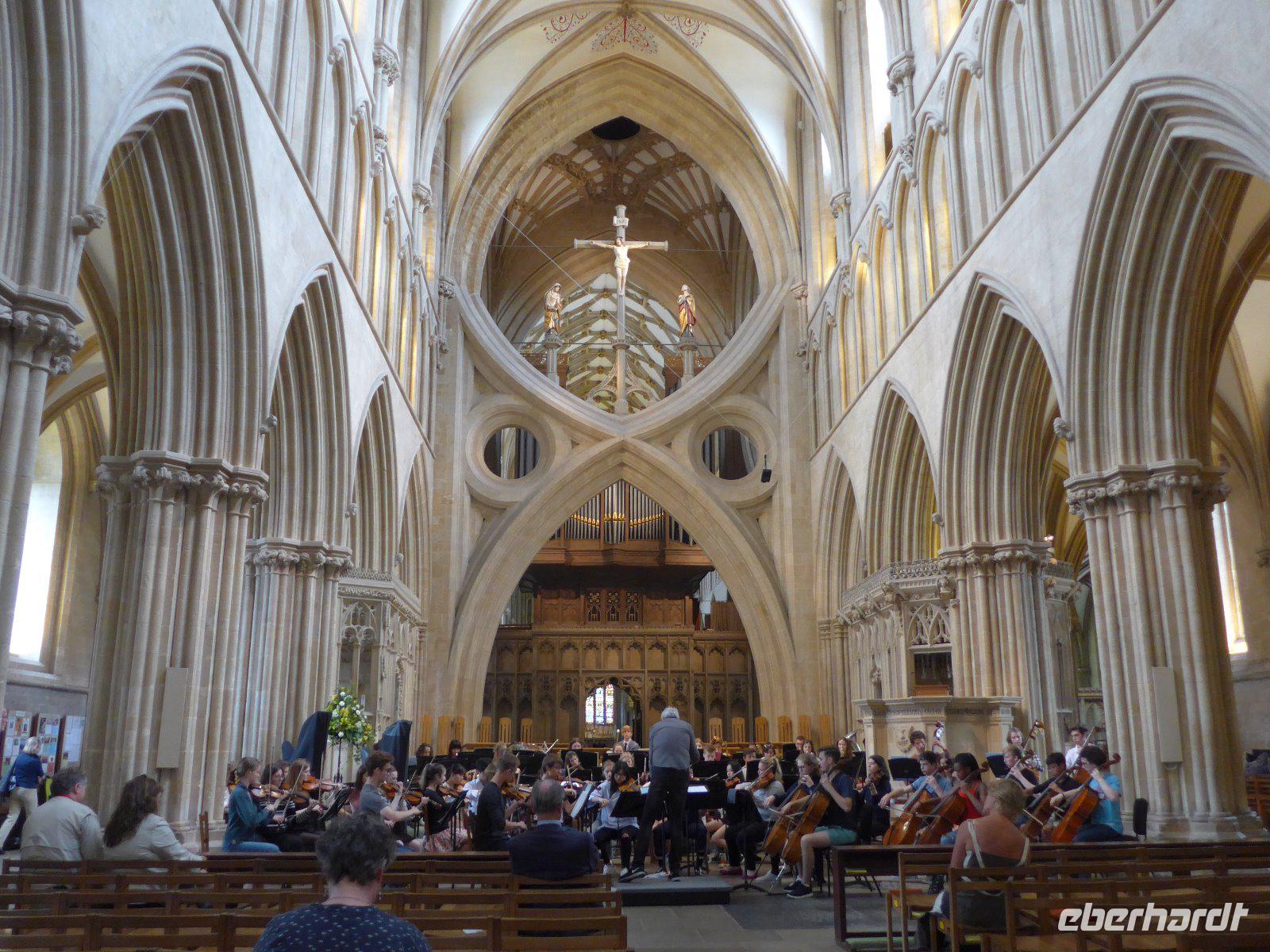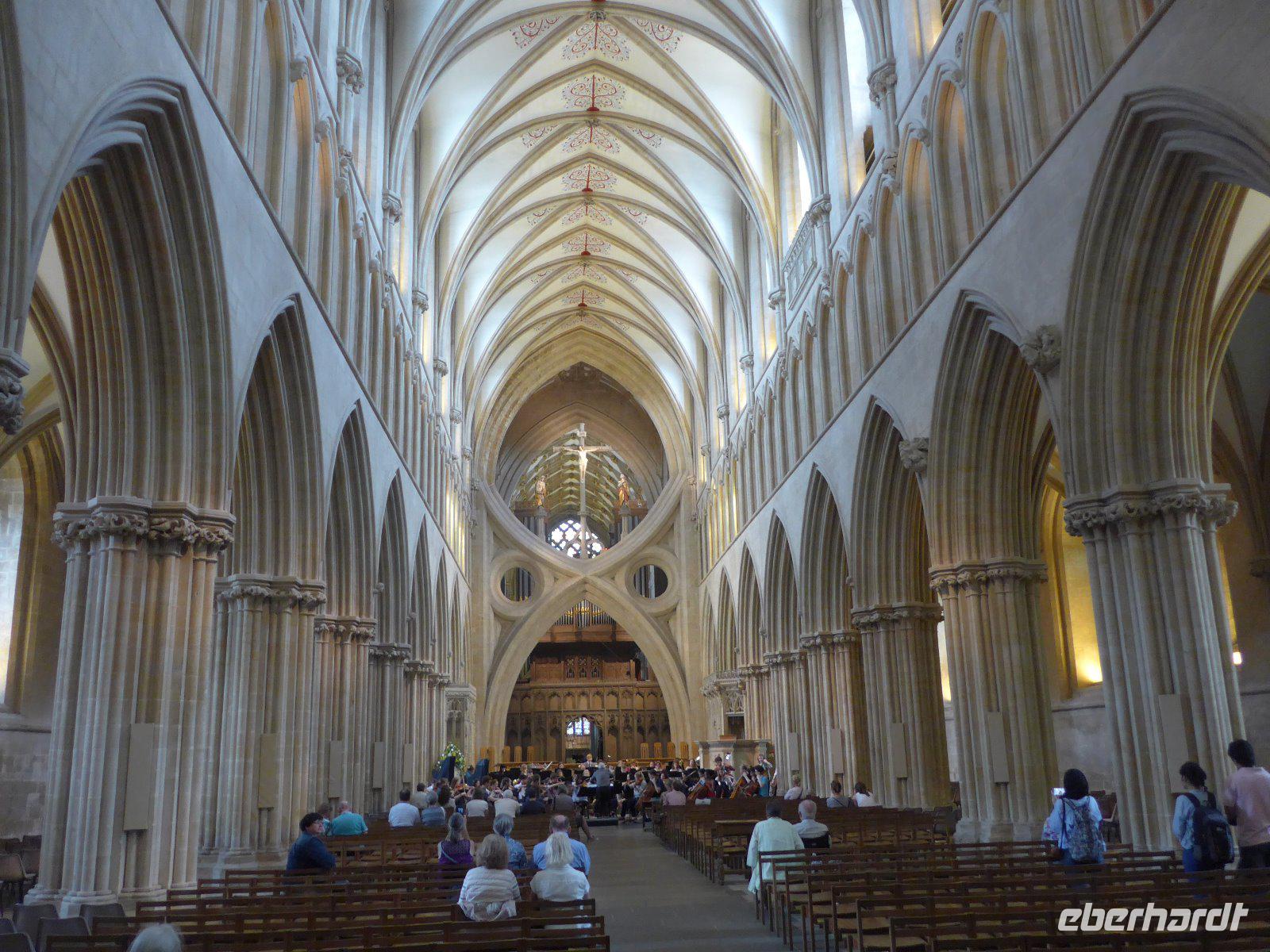 Auf dem Weg nach Bristol war Glastonbury Abbey erstes Ziel unserer heutigen Tagesetappe. Die Ruine der ehemals riesigen Abteikirche bildet den Hintergrund für die Sage von König Artus u. der Suche nach dem Heiligen Gral. Also los dem heiligen Gral u. seiner Tafelrunde, der wohl der erste u. exklusivste Herrenclub Englands war, einen Besuch abzustatten. Gestärkt und die Koffer im Bus ging es los auf den Spuren König Artur. Auf dem Weg dorthin durchquerten wir das Bodmin Moor und machten am Jamaica Inn, das nach dem Cornwall-Roman der dreißiger Jahre von Daphne du Marie „Jamaica Inn" zum Filmschauplatz u. Treffpunkt der vereinten Literatur- u. Kneipenfreunde wurde, einen Stopp. Einst wickelten jahrhundertelang hier Schmuggler ihre Geschäfte ab und Reisende machten hier Rast. Wahrscheinlich hat den Autor die Vergangenheit bei seiner Einkehr so inspiriert, dass er bei einem kühlen Schluck sofort zu schreiben begann. Heute tun es ihm viele Touristen gleich - mehr wegen der Toiletten, als wegen eines kühlen Schlucks. Nun wir sind in Somerset, der ländlichsten Grafschaft. Kaum größere Städte und wenig Industrie. Dafür ist die Region wegen ihrer Käse- u. Milchproduktion und vor allem wegen des Cider bekannt. Glastonbury Abbey, einst prächtige Abteikirche wurde diese durch Heinrich VIII geplündert und ist nun Englands berühmteste Ruine. Glastonbury ist eine Kleinstadt der Superlative. Die Touristen strömen in Scharen, wie einst die Pilger. Hier sollen der Ort des Grals u. das Grab König Arturs sein. Der Dorn vom Heiligen Land, der hier aus Joseph von Arimathias Wanderstab spross soll jedes Jahr blühen. Und nicht zuletzt hat hier die älteste christliche Gemeinde in England ihre erste Kirche gebaut. Da ist das jüngste Kind der modernen Kulturbewegung, das jährliche Treffen der Hippies, eher profan. Mythos Mittelalter trifft im wahrsten Sinne des Wortes auf Moderne. Und heute weiß man, dass die mittelalterlichen Mythen nur einem Zweck dienten - eine Finanzquelle für den Bau des abgebrannten Klosters zu finden. Ein frommer Betrug der Mönche, heute würde man eher sagen der Zweck heilt die Mittel. Heute füllt es so manchen Geldsack der Gastwirte u. Souvenirverkäufer. Nun wir betraten als „säkularisierte Pilger" des 21. Jahrhunderts die Abteikirche. Ein kleines Schild am ehemaligen Hochaltar ist der Hinweis auf den ersten frommen Betrug. Und auch fanden wir die Stelle an dem der Gral von Joseph von Arimathia vergraben sein soll, denn noch heute am Fuß des Tores ist die Blutquelle. Danach ging es nach Wells, unweit von Glastonbury gelegen. Ganz und gar eine Kleinstadt, die winzig war und es immer bleiben wird. Eine Harmonie von Stadt und Landschaft und eine Disharmonie wenn man die Dimension der Kathedrale mit der Einwohnerzahl vergleicht. Aus diesem Blickwinkel heraus betrachtet ist es eher eine Kathedrale, zu deren Füßen ein paar Häuser sich gesellen. Am Parkplatz sahen wir eine Kirche - war das schon die Kathedrale? Nein unser Rundgang begann nahe der Stadtpfarrkirche St. Cuthbert's. Im Inneren mit einem überreich geschnitzten u. bemalten Dachstuhl. So wollten die Bürger der Macht des Bischofs etwas entgegensetzen. Im Folgenden sahen wir dann noch den Market Place, Bishop Place, Bishop's Tythe Barn, Palace Field, Vicar Close, die früheste vollständig erhaltene Reihenhaussiedlung und schließlich die Kathedrale selbst. Mächtig und Imposant überlebte sie der Vernichtung Heinrich VIII, weil sie keine Klosterkirche war. Die Westfassade wirkt wie ein aufgeklappter Flügelaltar. Keine andere Kirche ist so reich mit Skulpturen bestückt, wie diese. Von den einst 400 Skulpturen sind heute noch über 300 erhalten. Heilsgeschichte u. Welttheater in einem; mit Königen u. Tyrannen, Szenen aus dem alten u. neuen Testament, sowie oben thronend Christus in der Glorie. Durch verschiedene Bauabschnitte sind auch unterschiedliche Stilphasen erkennbar. Normannischer Übergangsstil, Early English, Zeit des Decorated u. Perdendicular. Die Wells Cathedral ist dennoch ein hervorragendes Beispiel der englischen Sondergotik. Als erste Kirche in England greift sie den Spitzbogen als gotisches Motiv überall auf. Im Inneren fällt sofort eine monströse Acht ins Auge, die zwar extravagant aussieht, aber dennoch nur wegen statischen Gründen angebracht wurde. Über ein Meer von Treppen, vorbei am Mönch als Konsolenfigur, kommen wir in den Kapitelsaal, der durch seine fächerartige Deckenkonstruktion den Betrachter in Staunen versetzt. Ein Raum wie ein Gedicht das zum Triumph der Geometrie u. Architektur erzählt wird. Unser Besuch wurde durch eine Konzertprobe noch anmutender. Die Akustik u. die Auswahl der Stücke für ein Abschlusskonzert der hiesigen Schule versetzten uns in Entzücken. Und schon war die Zeit heran und wir verließen den heiligen Ort und machten uns auf den Weg nach Bristol.
