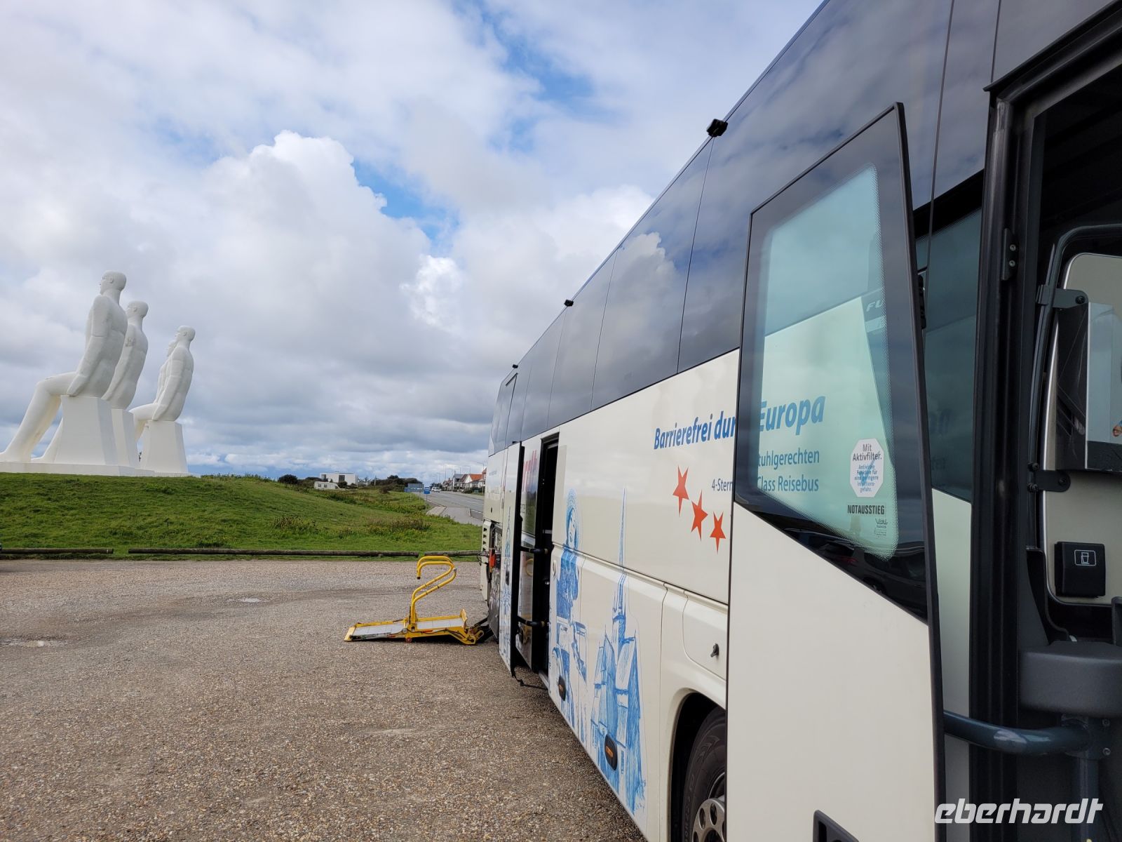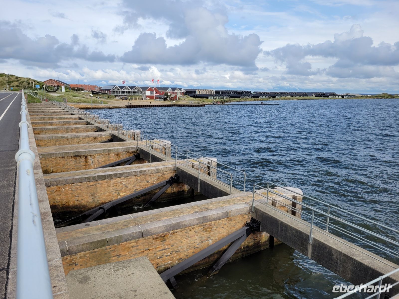 Heute steht die Westküste Jütlands, also der Besuch der dänischen Nordsee auf dem Programm. Hvide Sande, gelegen auf der Nehrung Holmsland Klit, ist dort ein ganz besonderer Ort. Die kleine Ortschaft mit mächtiger Spülschleuse und Klappbrücke für die Schifffahrt verbindet eine fast lagunenartige große Meeresbucht mit der offenen Nordsee. Interessant anzuschauen und auch der vor Ort durch die regionale Fischerei gefangene und zumeist geräuchert angebotene Fisch ist nicht zu verachten. Auf der Weiterfahrt ist dann die Skulpturengruppe „Der Mensch am Meer“ (Mennesket ved Havet) bei Esbjerg ein weiteres Ziel. Bei schönem sonnigem Wetter kann man nach Betrachtung des Kunstwerks noch angenehm oberhalb des Küstensaums spazieren rollen. Am Abend sind wir dann wieder an unserem, auch hier wunderbar zentral gelegenem, Hotel. Einen abendlichen Ausflug ins benachbarte Kneipenviertel steht also nichts im Wege…