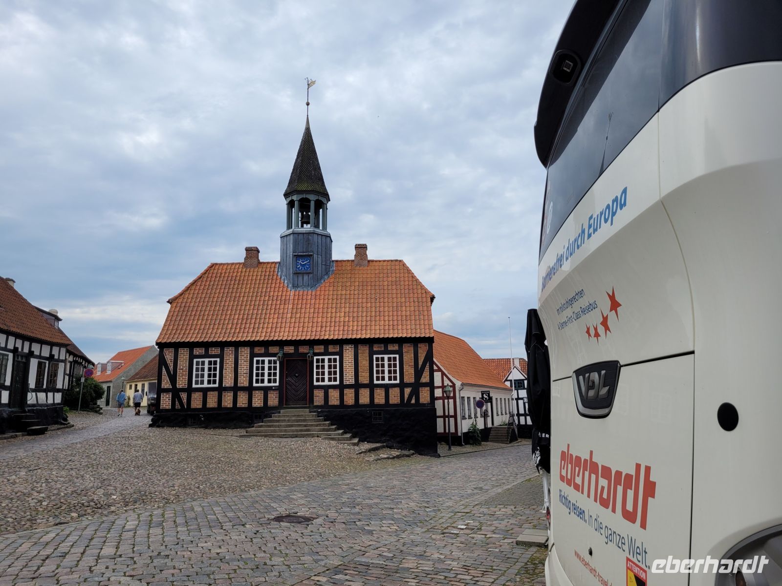 Nachdem wir gestern die Nordsee erlebt haben, fahren wir heute durch den Nationalpark Mold Bjerge zur Ostsee, genauer gesagt ans Kattegat. In Ebeltoft legen wir am Hafen einen Stopp ein. Nicht nur die Seefahrt, auch die Glaskunst spielen vor Ort eine wichtige Rolle. Wenngleich das örtliche Glasmuseum nicht bei jedem auf Begeisterung stösst, ist der Besuch der kleinen Gemeinde dennoch lohnend. Das Areal um den Museumshafen mit der traditionsreichen Fregatte „Jylland“ oder das mittelalterliche Ortszentrum mit dem vermeintlich „kleinstem Rathaus der Welt“, bietet am Ende doch für jeden etwas. Am Nachmittag sind wir wieder in Aarhus, wo wir mit Gamle By noch ein sehr interessantes Freilichtmuseum besuchen. Der Schwerpunkt der Präsentation liegt hier nicht so sehr auf dem Leben vor hundert(en) von Jahren sondern in der Spanne der letzten 50 Jahre.