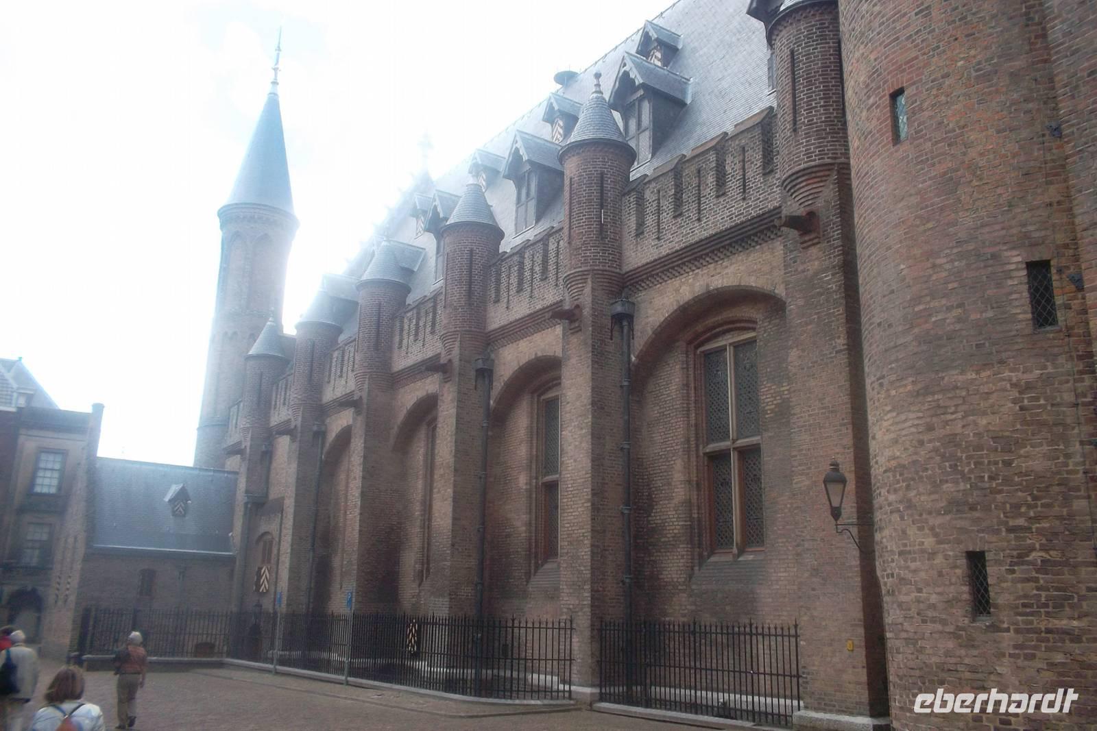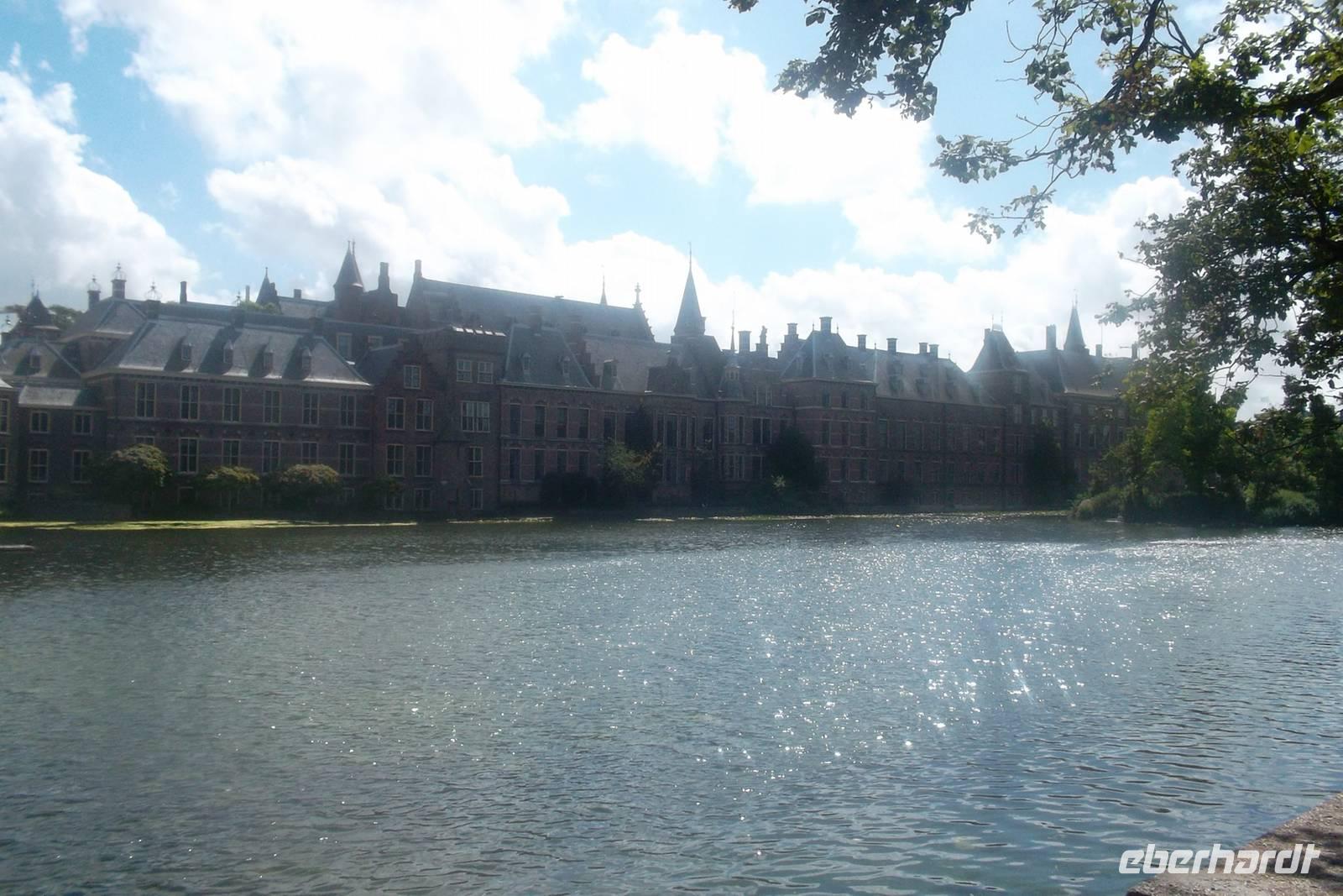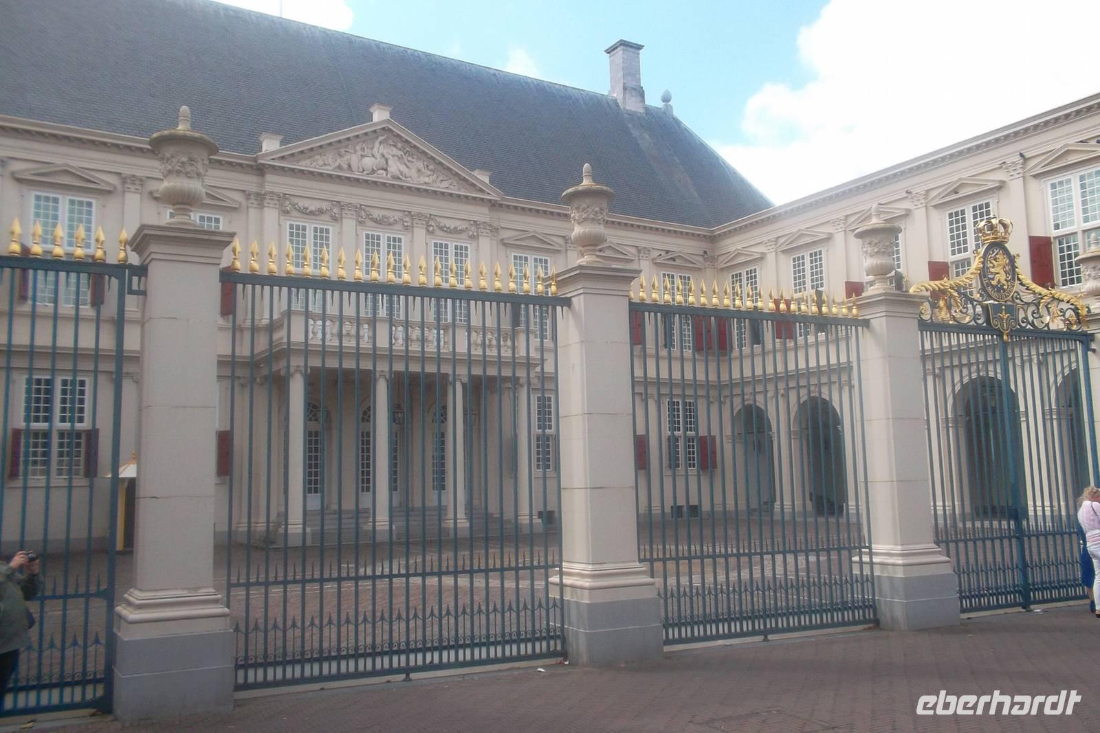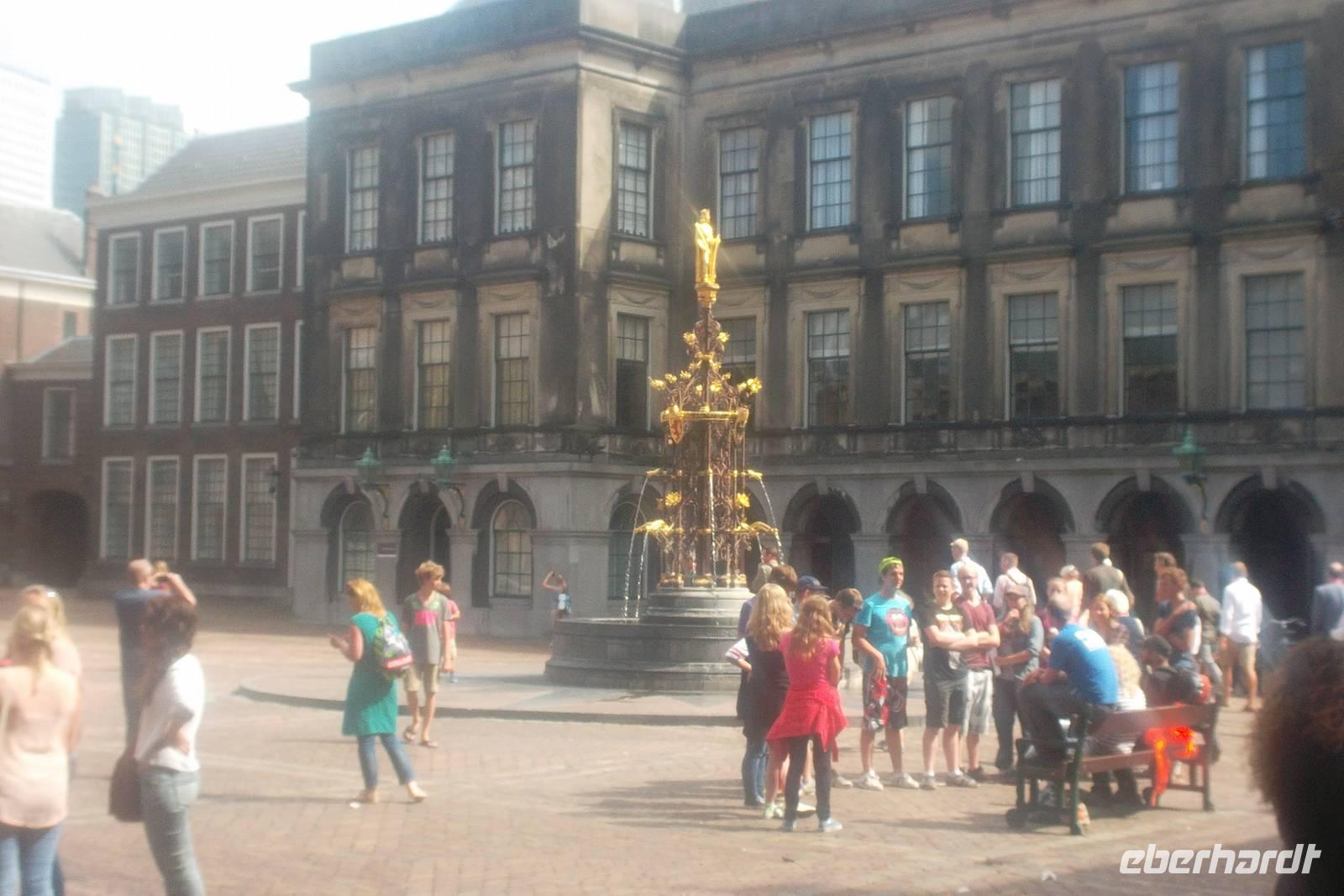 Nach längerem Aufenthalt in Delft sah uns der frühe Nachmittag dann im nahegelegenen Den Haag. Wir mußten ein Stück laufen, um uns mit den beiden Stadtführern zu treffen. Hier standen das Regierungsviertel „Binnenhof" und der Palast der Könige der Niederlande auf dem Programm der Stadtführung - in diesen Palast ist gerade der frischgekrönte niederländische König eingezogen, dessen ehemaliger Wohnsitz - noch als Kronprinz - nicht weit entfernt lag.