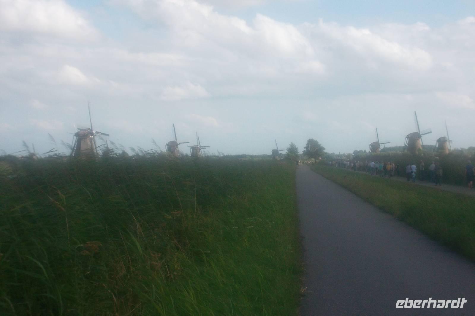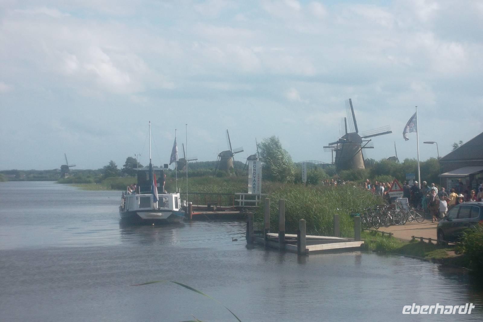 Aber noch eine Besonderheit konnten wir heute bieten. Als Richtig-Reisen-Extra nahmen wir von Den Haag aus einen kleinen Umweg und landeten ein paar Kilometer südlich von Rotterdam in Kinderdijk. Umschlossen von zwei Flüssen zählt der Ort mit 19 Windmühlen nicht nur zu den bekanntesten niederländischen Sehenswürdigkeiten, sondern auch zu den typischsten Landschaften. Der Ortsname, so die Legende, gehe auf eine große Sturmflut Anfang des 15.Jahrhunderets zurück, bei der ein Kind in seiner Wiege unversehrt auf den Deich gespült wurde. Die Mühlen, die das markante Orts- und Landschaftsbild bestimmen, stammen überwiegend aus dem 18. Jahrhundert und wurden zum Antrieb für Wasserpumpen genutzt, die zur Entwässerung und Urbarmachung des Geländes dienten. Nach einem „Mühlenbummel" in Kinderdijk kehrten wir in unser Hotel in Rotterdam zurück.