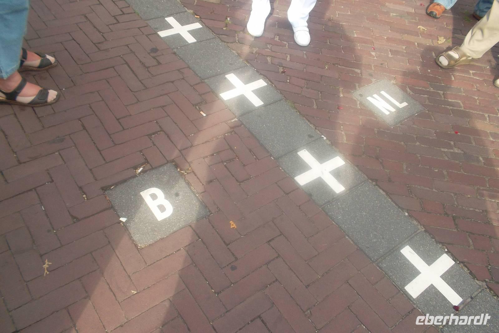 Auf dem heutigen Weg von den Niederlanden nach Belgien ging es in einen der kuriosesten Orte Europas: Baarle Hertog ist eine komplett in den Niederlanden liegende belgische Exklave, die wiederum eine niederländische Enklave umschließt. Das erklärt beide Namen des Ortes: Baarle-Hertog und Baarle-Nassau. Überall erkennt man es hier, denn wegen dieses Kuriosums ist der Ort zu einem Touristenmagneten geworden. An vielen Stellen haben die Bewohner den Grenzverlauf dokumentiert - sei es auf dem Straßenpflaster oder mit Gedenktafeln oder Zugehörigkeitsfähnchen an den Häusern. Dabei machte man sich einen Spass daraus, wie verzwickt der Grenzverlauf ist - mitunter führt die Staatsgrenze durch ein Haus und dann entscheidet die Haustür mit ihrer Lage über die Staatzugehörigkeit des Baues. Gerne erzählt man hier auch Geschichten über die Zeit, in der in den Niederlanden die Wirtshäuser früher schließen mußten. Verlief die Grenze durch den betreffenden Gasthof, dann wechselten die Gäste bloß zu einem Tisch auf „der anderen Seite"