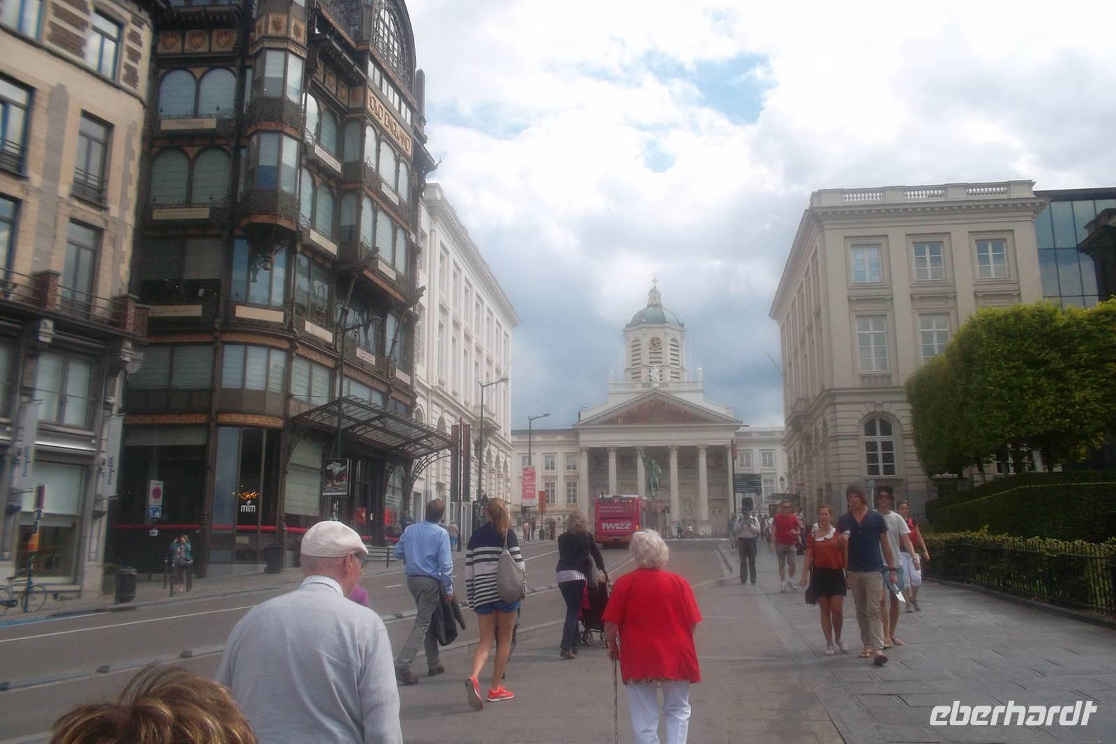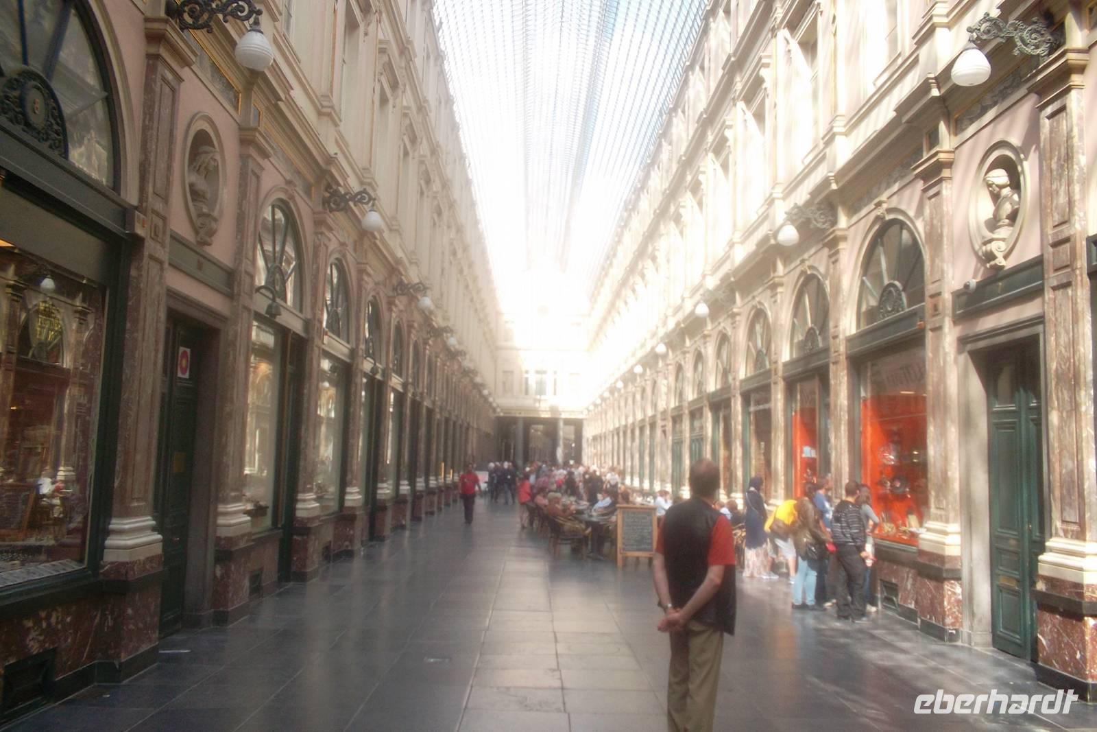 Von hier wanderten wir zur ältesten Einkaufspassage Europas - der Galerie St.Hubert. Ein Nebengang führt in eine der berühmtesten Straßen Belgiens, in die sogenannte „Brüsseler Freßgasse". Tür an Tür liegen hier mehr als 200 Restaurants, die sich Tag und Nacht überbieten mit immer neuen Zusammenstellungen von belgischen Spezialitäten, Meeresfrüchten und Fleischgerichten. Und mittendrin, in einer kleinen Sackgasse, trafen wir auf die Figur von „Jeanneke Pis". Diese Brunnenfigur stellt ein kleines Mädchen dar und gilt als das weibliche Gegenstück zu „Manneken Pis". Angeblich, damit der kleine Kerl nicht so allein ist, wurde 1985 durch Denis-Adrien Debouvrie die kleine Skulptur errichtet und sprudelt seit 1987 in einer kleinen vergitterten Nische gegenüber einem bekannten Brüsseler Bierkeller in einer Hauswand. Als wir den Weg zurück zum Markt gegangen waren, konnten wir endlich Freizeit genießen und die Schönheiten der Brüsseler Innenstadt auf eigene Faust genießen. Abends fuhren wir vom vereinbarten Treffpunkt zu unserem heutigen Hotel, nahe dem Brüsseler Südbahnhof.