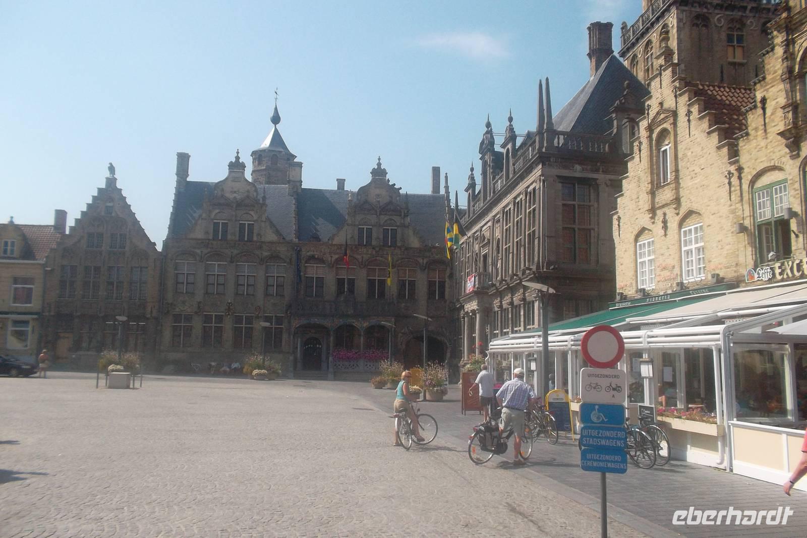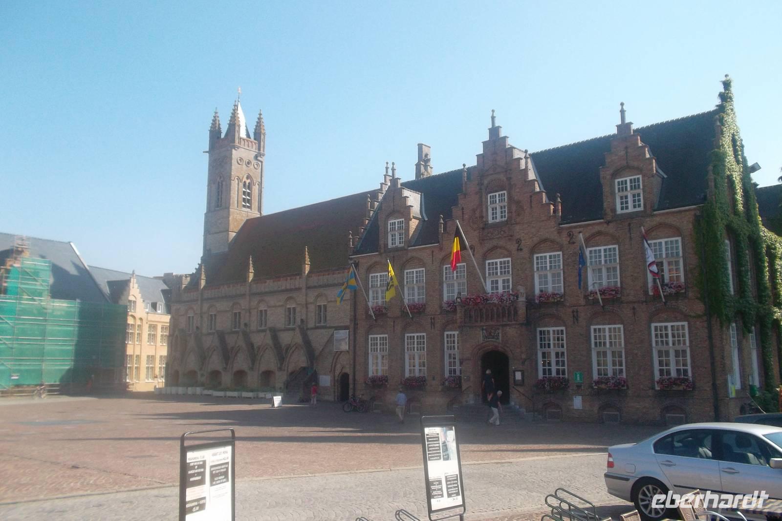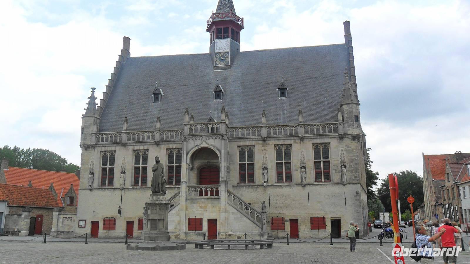 Der heutige Tag begann mit einer Busfahrt Richtung Nordwesten und wir erreichten Damme. Einst war das heutige beschauliche Städtchen eine bedeutende Stadt mit großer Bedeutung als See- und Vorhafen des reichen Brügge. Ihre frühere Größe manifestiert sich noch in der gewaltigen Kirche - heute viel zu groß für eine so kleine Gemeinde - und im schönen spätgotischen Rathaus am Markt sowie einigen alten Patrizierhäusern. Der Bau wurde in seiner heutigen Form in der zweiten Hälfte des 15. Jahrhunderets von Gottfried Bosschere errichtet und in ihm wurden mehrere historisch bedeutsame Hochzeiten der flämischen und burgundischen Herrscher gefeiert. Mitten auf dem Markt weist eine Statue auf Dammes Bedeutung in der Weltliteratur hin: der mittelniederländische Dichter Jacob van Maerlant hielt sich hier auf und Damme war ein wichtiger Schauplatz im „Till Uilenspegel" -Roman von Charles de Coster, der damit als einer Begründer der belgischen Literatur gilt.