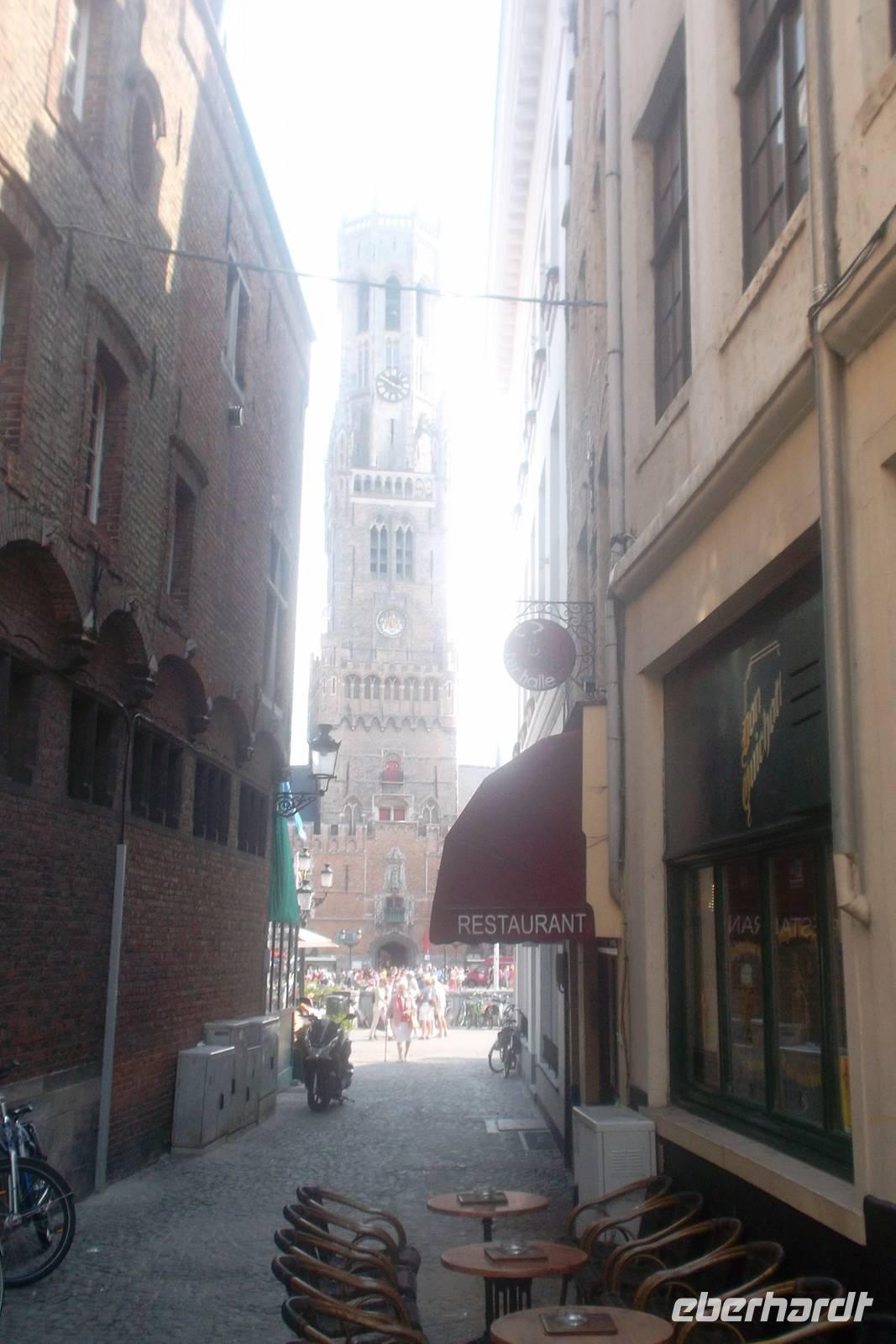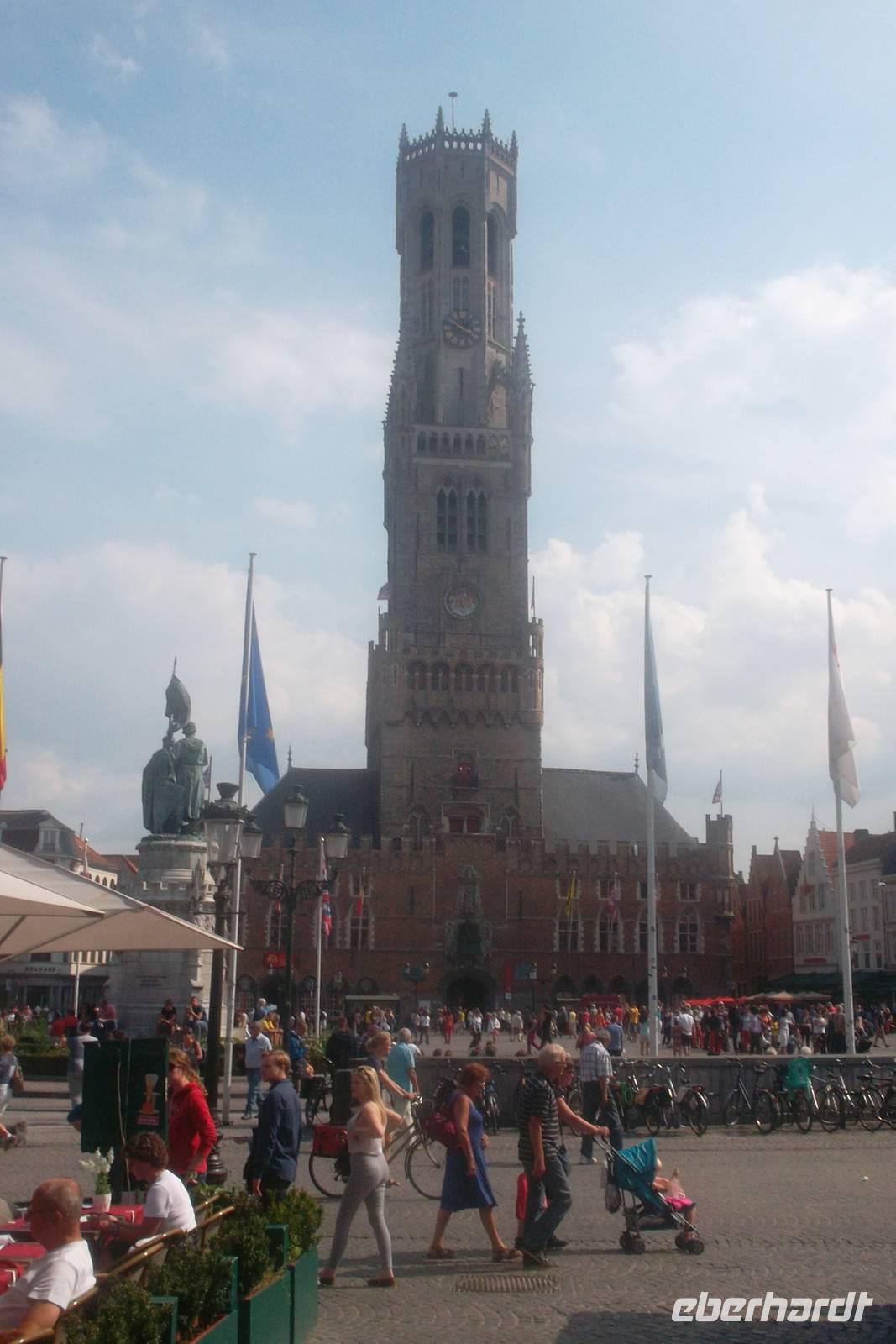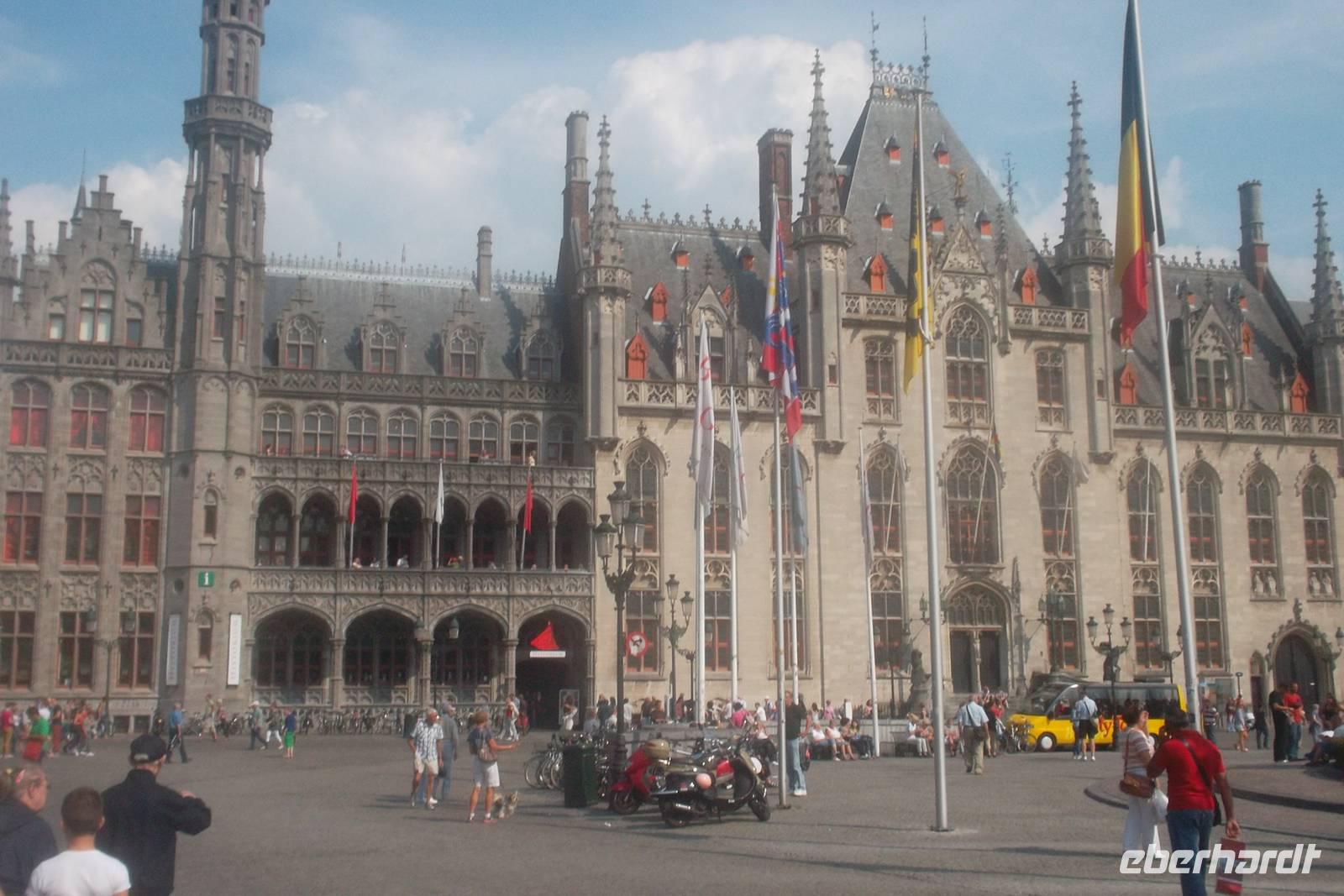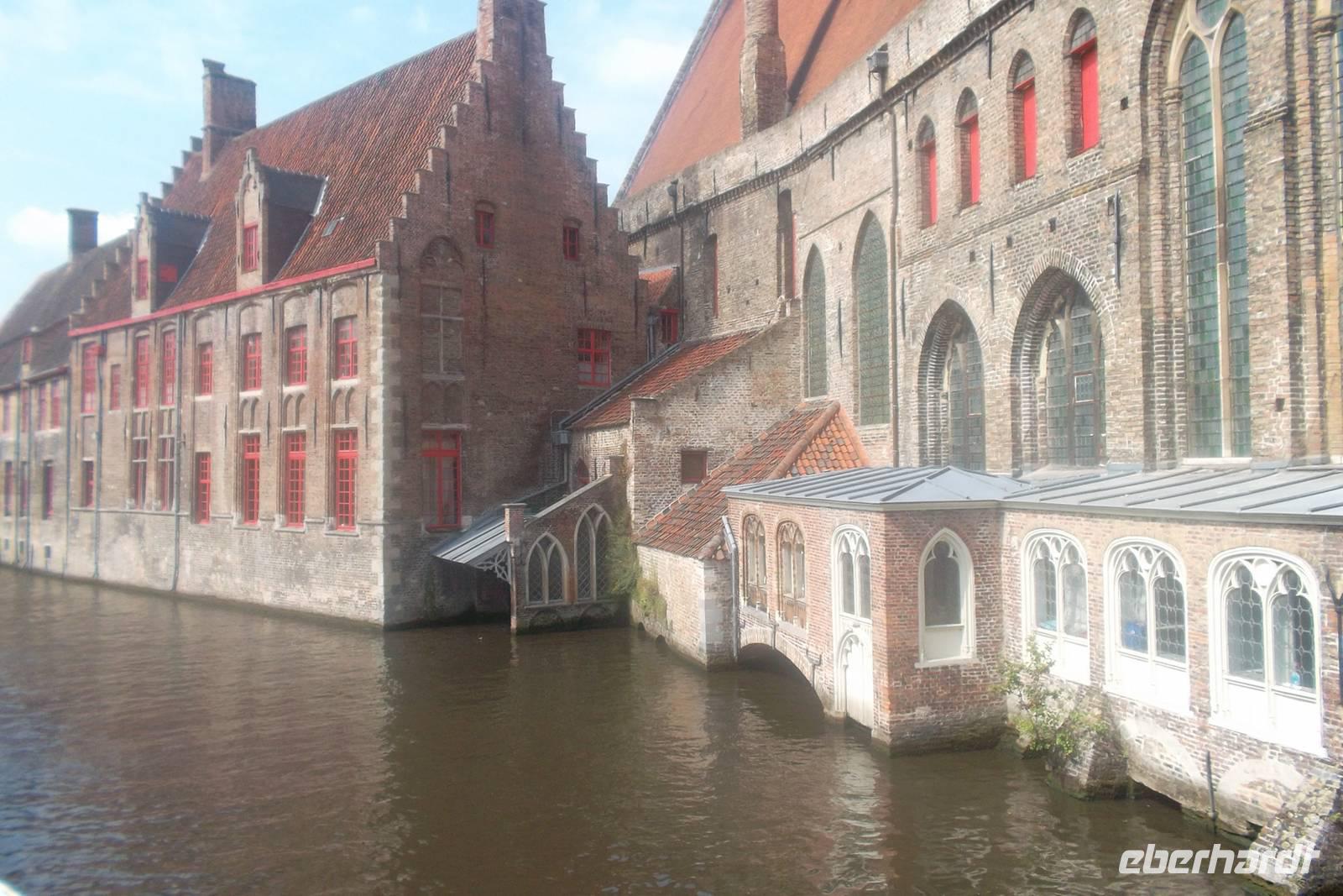 Nach Damme besuchten wir Brügge, einen der großen Touristenmagneten Belgiens und gewiß eine der schönsten belgischen Städte. In dieser Stadt, die so typisch ist, scheint die Zeit stehengeblieben zu sein. Wir nahmen unseren Weg vom Busparkplatz und „schlängelten" uns durch die alte Handelsstadt, die auch für Hansekontor berühmt war, vorbei am „Minnewater", früher als äußerer Handelshafen wichtig für die Stadt durch seine Zoll- und Schleusenanlage. Dann folgte der Besuch des alten Beginenhofes, in dem im Spätmittelalter die Angehörigen einer christlichen Laiengemeinschaft lebten, ähnlich wie in einem Kloster. Der „Walplein", früher von Brauereien umstanden, von denen heute nur noch eine existiert folgte und dann ging es durch enge Gassen bis zur Brücke mit schönem Blick auf das Sint-Jans-Hospital. Es war eines der größten Hospitäler Europas, hatte seinen eigenen kleinen Hafen und beherbergt heute das Memling-Museum und eine der ältesten europäischen Apotheken. Die Liebfrauenkirche ragt nicht nur mit ihrem weithin sichtbaren 122 m hohen Turm auf, sondern enthält ein besonderes Kunstwerk, eine perfekt gearbeitete schneeweiße Marmormadonna von Michelangelo, die einst ein reicher Brügger Handelsherr dem Künstler aus Florenz abkaufte und der Stadt überließ. Auf dem ehemaligen Kirchhof, der Liebfrauenkirche findet sich ein Blick auf das kleinste gotische Fenster der Welt und eine fotogene, oft als Brügges malerischste Grachtenszenerie bezeichnete Idylle. Auch das „Gruuthuse", Brügges schönster Adelspalast, durfte nicht fehlen, bevor wir den Rundgang zur viel fotografierten Rozengracht, zum Huidenvettersplein, dem alten Gerbermarkt, und zum Fischmarkt fortsetzten. Gleich darauf erreichten wir die „Burg". Von der einstigen Anlage, die bei Gründung Brügges eine Rolle spielte, ist nur der Name erhalten geblieben - aber nahezu atemberaubend ist hier der Anblick des hochgotischen Rathauses mit seinen herrlichen Skulpturen und die überregional bedeutende Heiligblutkappelle. In dieser romanisch-gotischen Doppelkapelle, wird eine Reliquie aufbewahrt, die angeblich Blutstropfen von Jesus Christus enthält. Nach einem Abstecher zum „Groote Markt", den der imposante Belfried, zu einer Stadtburg mit gewaltigem, 83 m hohem Turm gestaltet, beherrscht und der von alten Patrizierhäusern verschiedener Epochen gesäumt wird, ging es zu einem weiteren Höhepunkt: Brügge vom Wasser aus bei einer Grachtenrundfahrt kennenzulernen, ist ein echtes Erlebnis, das einen fast noch mehr ins Mittelalter versetzt wie der Rundgang durch die Gassen.
