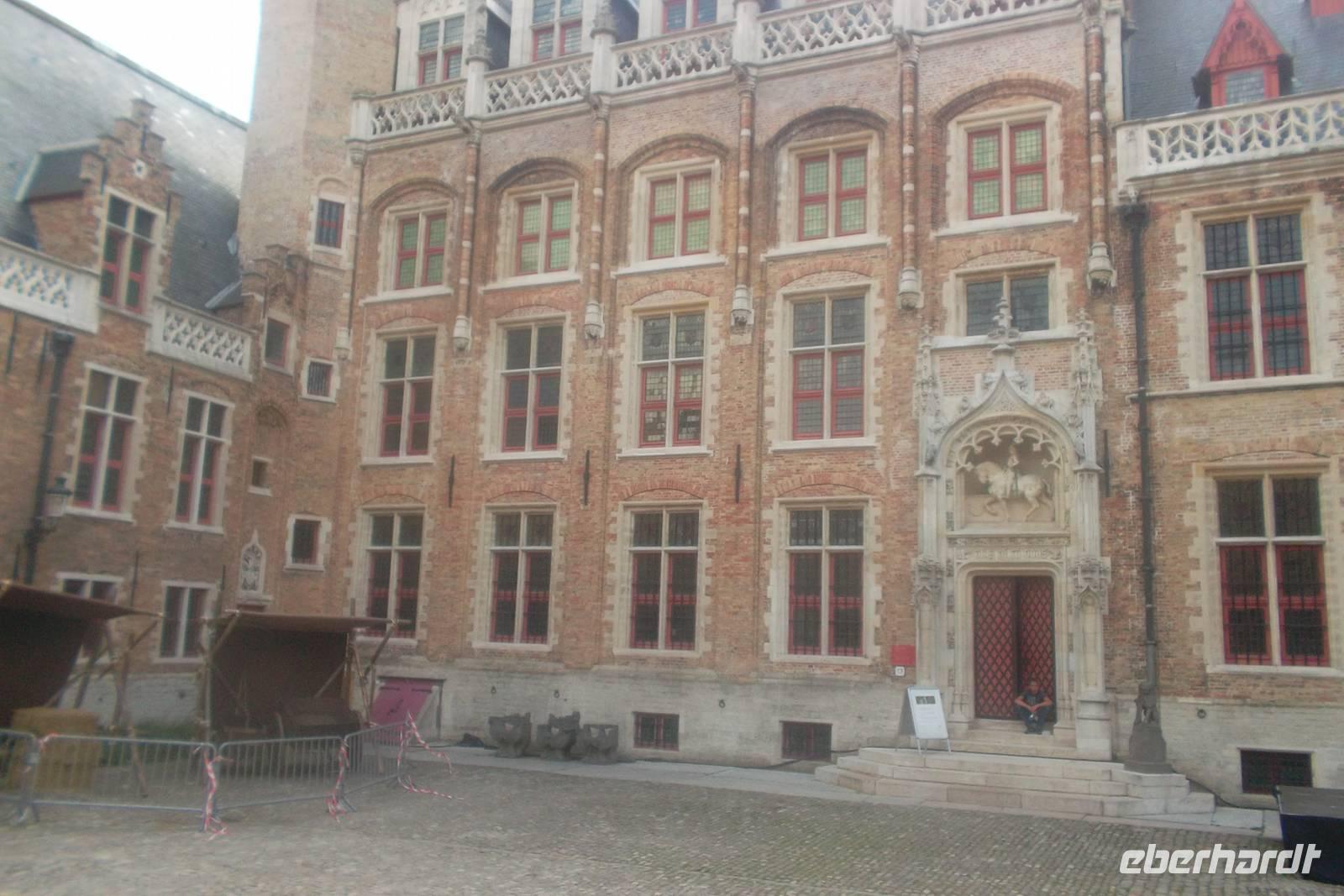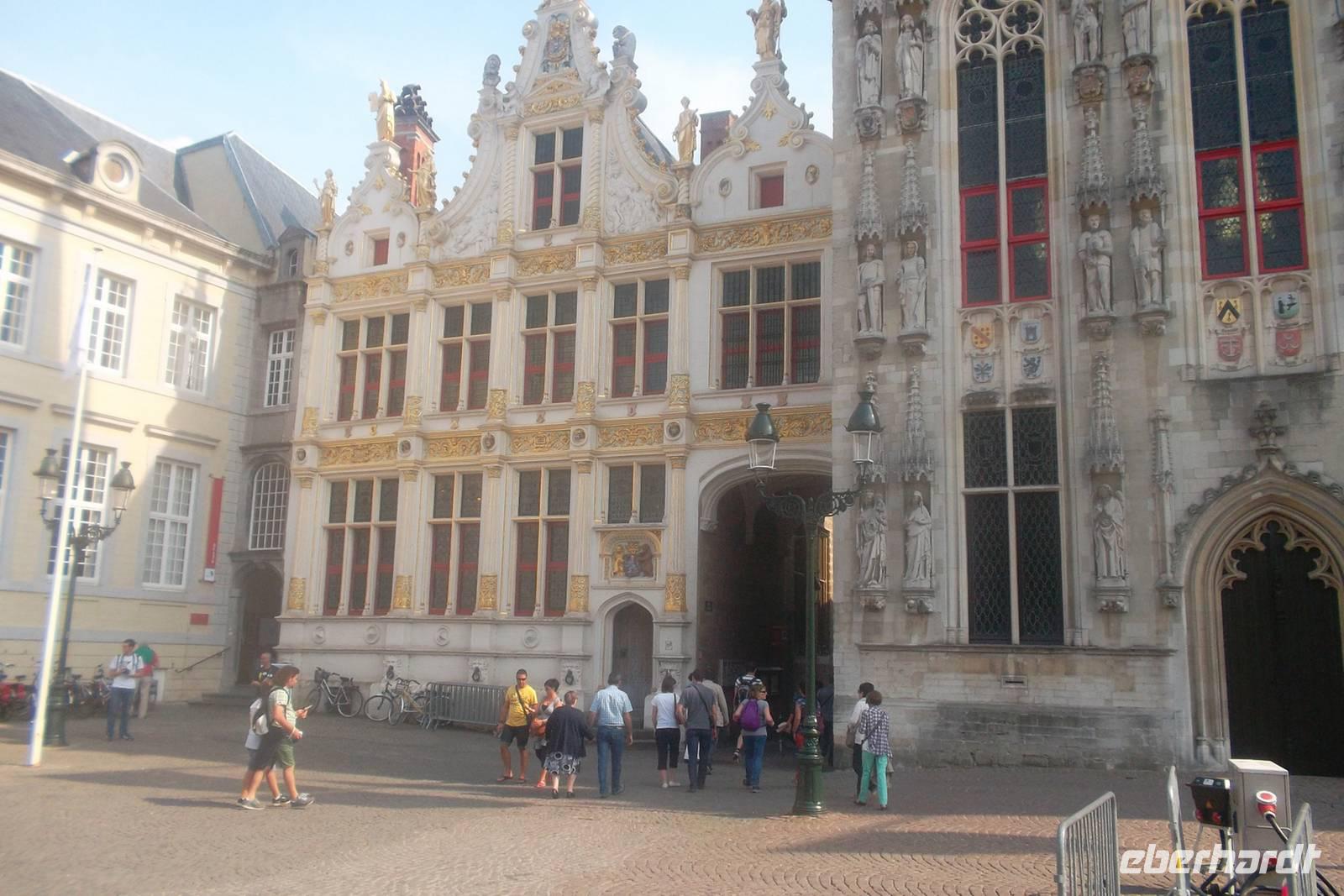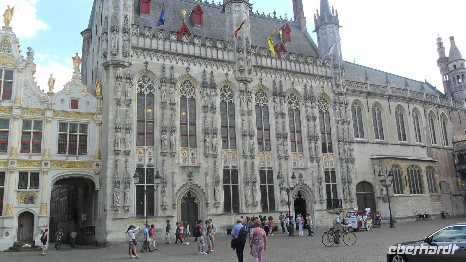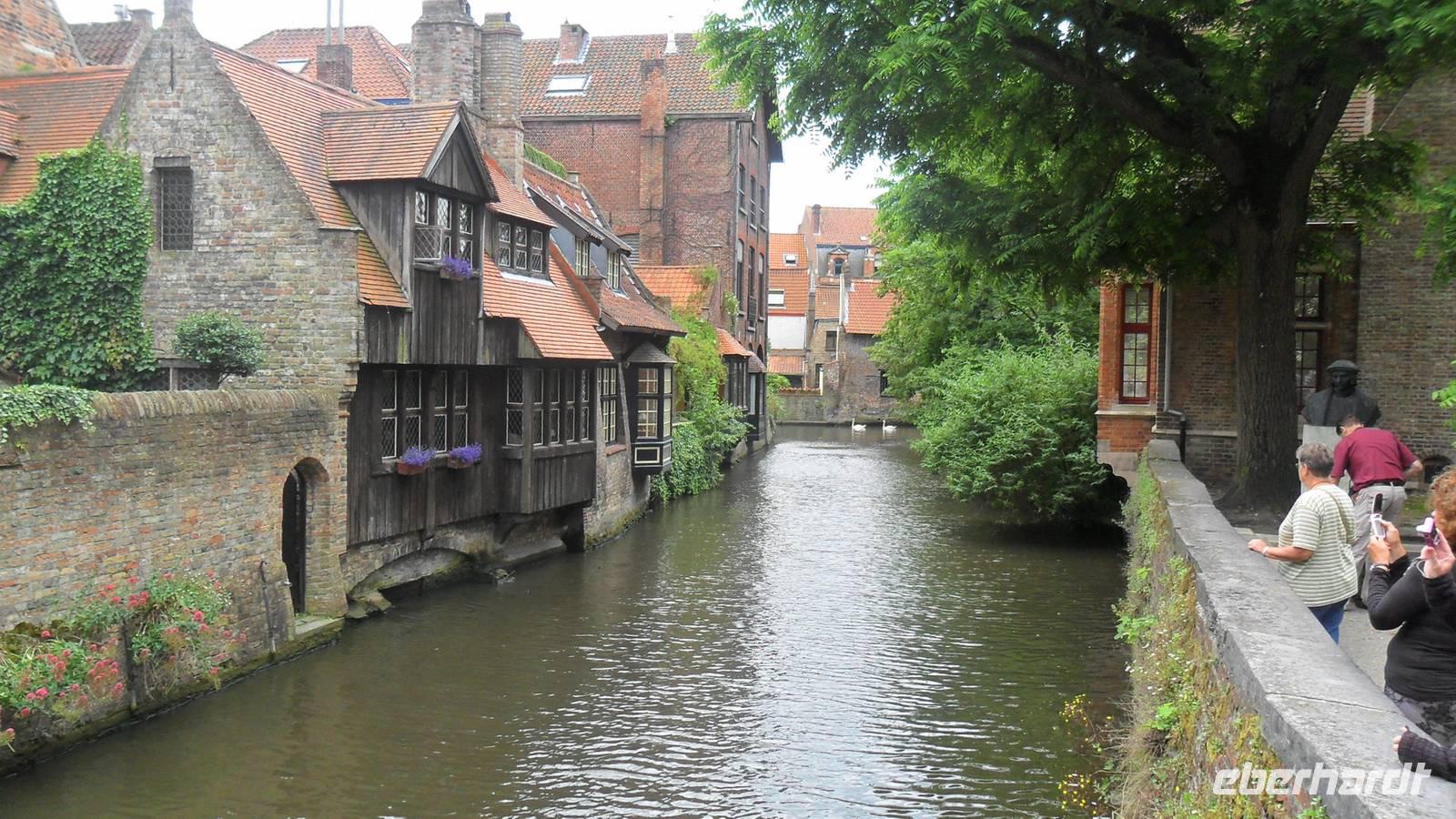 Nach Damme besuchten wir Brügge, einen der großen Touristenmagneten Belgiens und gewiß eine der schönsten belgischen Städte. In dieser Stadt, die so typisch ist, scheint die Zeit stehengeblieben zu sein. Wir nahmen unseren Weg vom Busparkplatz und „schlängelten" uns durch die alte Handelsstadt, die auch für Hansekontor berühmt war, vorbei am „Minnewater", früher als äußerer Handelshafen wichtig für die Stadt durch seine Zoll- und Schleusenanlage. Dann folgte der Besuch des alten Beginenhofes, in dem im Spätmittelalter die Angehörigen einer christlichen Laiengemeinschaft lebten, ähnlich wie in einem Kloster. Der „Walplein", früher von Brauereien umstanden, von denen heute nur noch eine existiert folgte und dann ging es durch enge Gassen bis zur Brücke mit schönem Blick auf das Sint-Jans-Hospital. Es war eines der größten Hospitäler Europas, hatte seinen eigenen kleinen Hafen und beherbergt heute das Memling-Museum und eine der ältesten europäischen Apotheken. Die Liebfrauenkirche ragt nicht nur mit ihrem weithin sichtbaren 122 m hohen Turm auf, sondern enthält ein besonderes Kunstwerk, eine perfekt gearbeitete schneeweiße Marmormadonna von Michelangelo, die einst ein reicher Brügger Handelsherr dem Künstler aus Florenz abkaufte und der Stadt überließ. Auf dem ehemaligen Kirchhof, der Liebfrauenkirche findet sich ein Blick auf das kleinste gotische Fenster der Welt und eine fotogene, oft als Brügges malerischste Grachtenszenerie bezeichnete Idylle. Auch das „Gruuthuse", Brügges schönster Adelspalast, durfte nicht fehlen, bevor wir den Rundgang zur viel fotografierten Rozengracht, zum Huidenvettersplein, dem alten Gerbermarkt, und zum Fischmarkt fortsetzten. Gleich darauf erreichten wir die „Burg". Von der einstigen Anlage, die bei Gründung Brügges eine Rolle spielte, ist nur der Name erhalten geblieben - aber nahezu atemberaubend ist hier der Anblick des hochgotischen Rathauses mit seinen herrlichen Skulpturen und die überregional bedeutende Heiligblutkappelle. In dieser romanisch-gotischen Doppelkapelle, wird eine Reliquie aufbewahrt, die angeblich Blutstropfen von Jesus Christus enthält. Nach einem Abstecher zum „Groote Markt", den der imposante Belfried, zu einer Stadtburg mit gewaltigem, 83 m hohem Turm gestaltet, beherrscht und der von alten Patrizierhäusern verschiedener Epochen gesäumt wird, ging es zu einem weiteren Höhepunkt: Brügge vom Wasser aus bei einer Grachtenrundfahrt kennenzulernen, ist ein echtes Erlebnis, das einen fast noch mehr ins Mittelalter versetzt wie der Rundgang durch die Gassen.