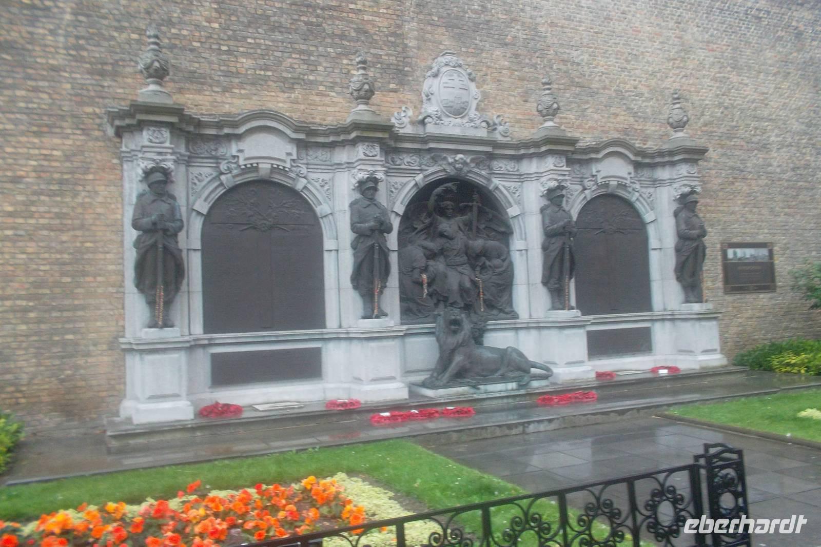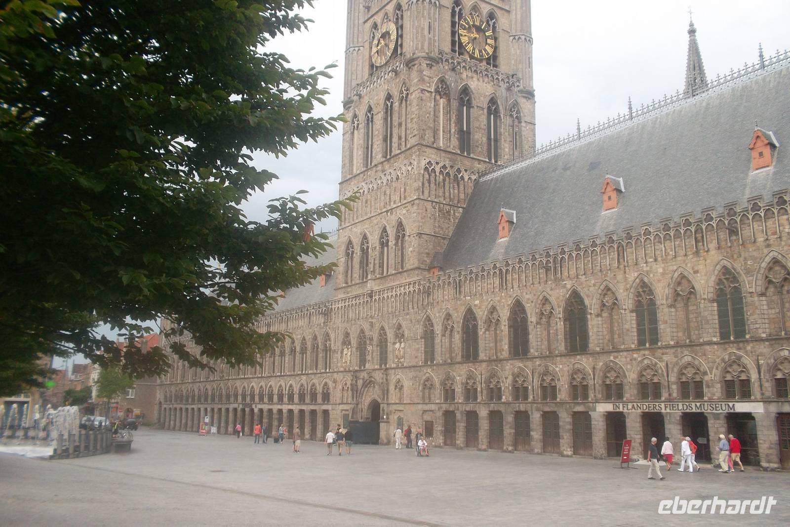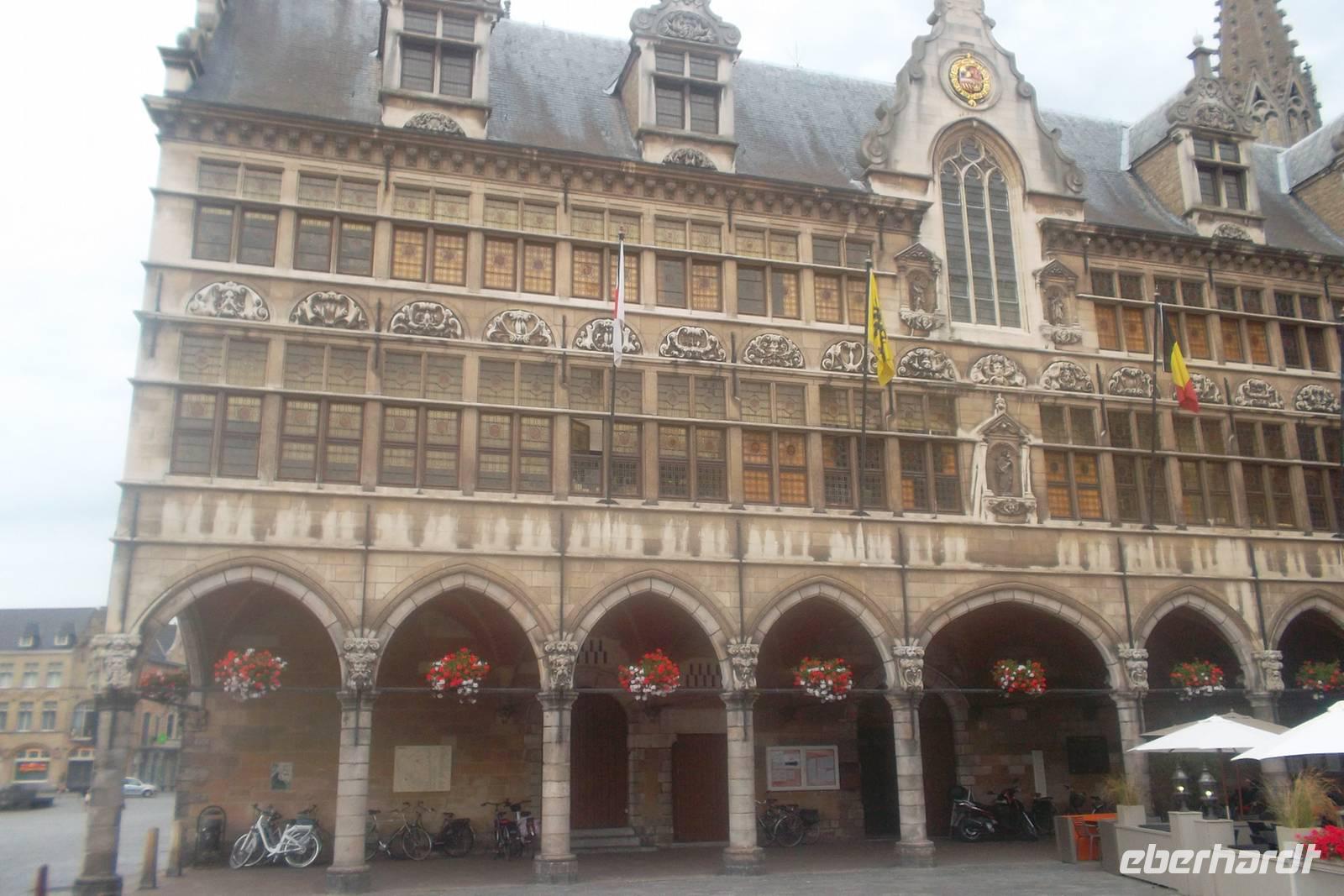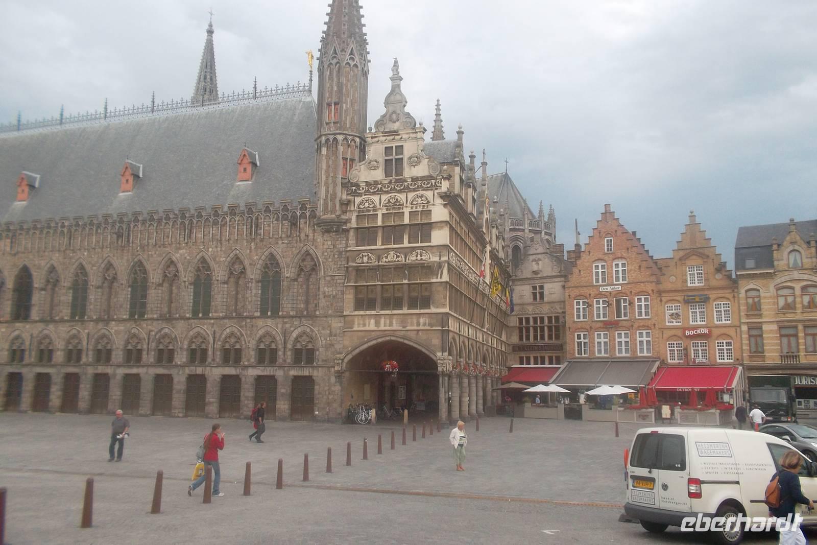 Der heutige Tag sollte durch Flandern bis in die Wallonie führen. Unser erstes Ziel war die Stadt Ypern. Ihre weltberühmte Tuchhalle gehört zu den größten Rat- und Zunfthäusern Europas. Wenn man vor dem monumentalen Gebäude steht fällt es schwer zu glauben, dass sie im 1. Weltkrieg, als Ypern einer der heftig umkämpften Orte an der Flandern-Front war, wie der Rest der Stadt komplett zerstört wurde. Heute beherbergt die Tuchhalle ein bedeutsames Museum „In Flanders Fields" über den 1.Weltkrieg an der Flandernfront und über die Schrecken des Giftgaskrieges, denn vor ihren Mauern wurde dieses erstmals in der Geschichte der Kriegführung eingesetzt. Auch das Kriegerdenkmal Menenpoort („Gedenktor"), als heutiges Stadttor ein Teil der alten Festung zeugt mit Namen tausender Gefallener ebenso von den Schrecken des ersten Weltkrieges wie die zahllosen Kriegsfriedhöfe mit ihren Gräbern. Ein Stadtrundgang zeigte uns den historischen Marktplatz und seine Tuchhallen. Es handelt sich um einen der größten profanen gotischen Gebäudekomplexe Europas, ähnlich bedeutsam wie der Papstpalast in Avignon. Wie schon der Belfried von Brügge und Veurne gehört auch der 70 Meter hohe von Ypern zum UNESCO-Welterbe. Sein 49-teiliges Glockenspiel ertönt zweimal in der Stunde. In der Freizeit konnten wir den kurzen Stadtrundgang noch individuell vervollständigen.