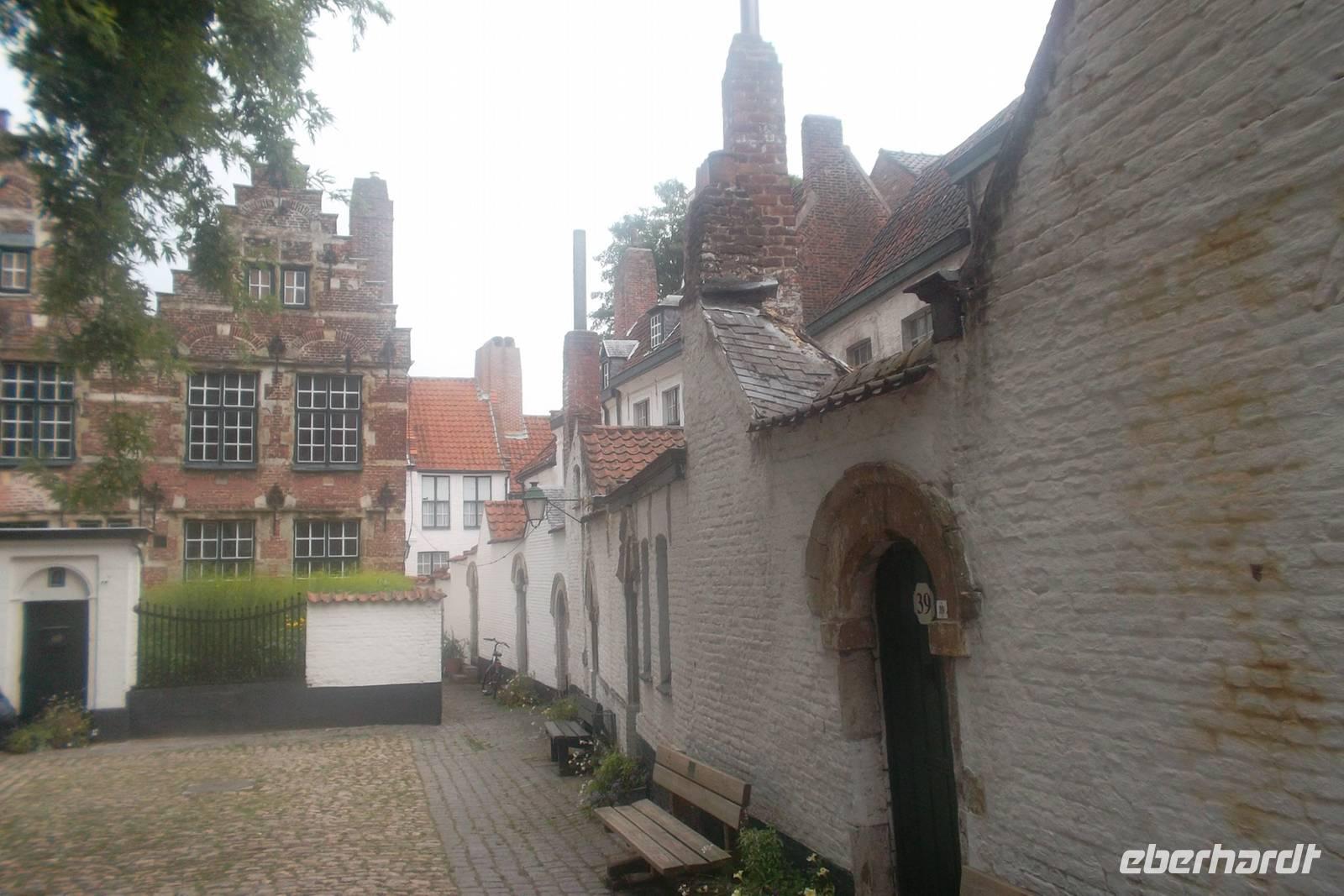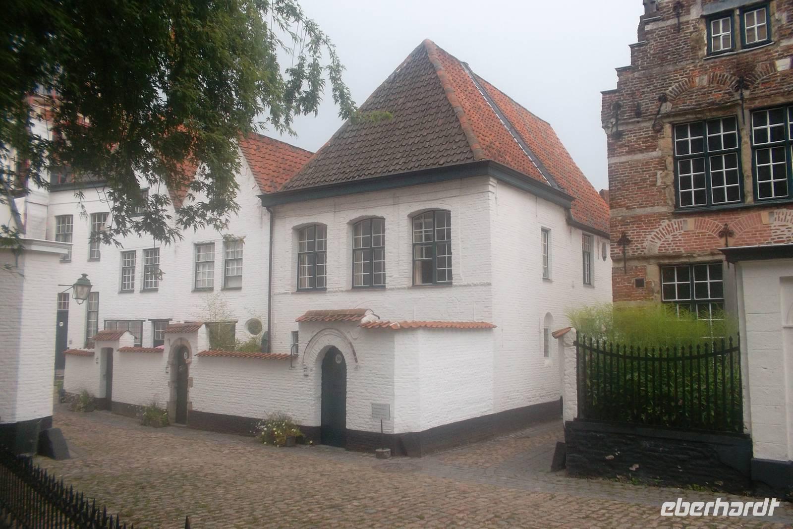 Unser zweites heutiges Ziel war ebenfalls eine alte, einst begüterte Tuchmacherstadt. Ihr Name - Kortrijk - verbindet sich mit einem bedeutsamen historischen Ereignis: dem legendären Sieg einer flämischen Adels- und Ritterarmee über die schwerbewaffnete Reiterei Frankreichs im Jahre 1302 - der sogenannten „Schlacht der Goldenen Sporen". Das Umfeld des „Großen Marktes" von Kortrijk bietet einen schönen Belfried, die interessante Sint.-Martenskerk und einen Beginenhof. Dieser ist einer der ältesten in Belgien. Er wurde um 1240 errichtet und gehört mit seinem idyllischen Ensemble seit 1998 zum UNESCO-Welterbe der „Flämischen Beginenhöfe".