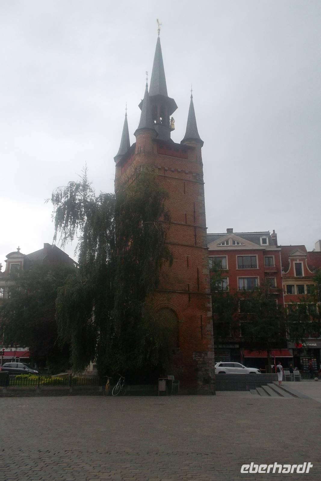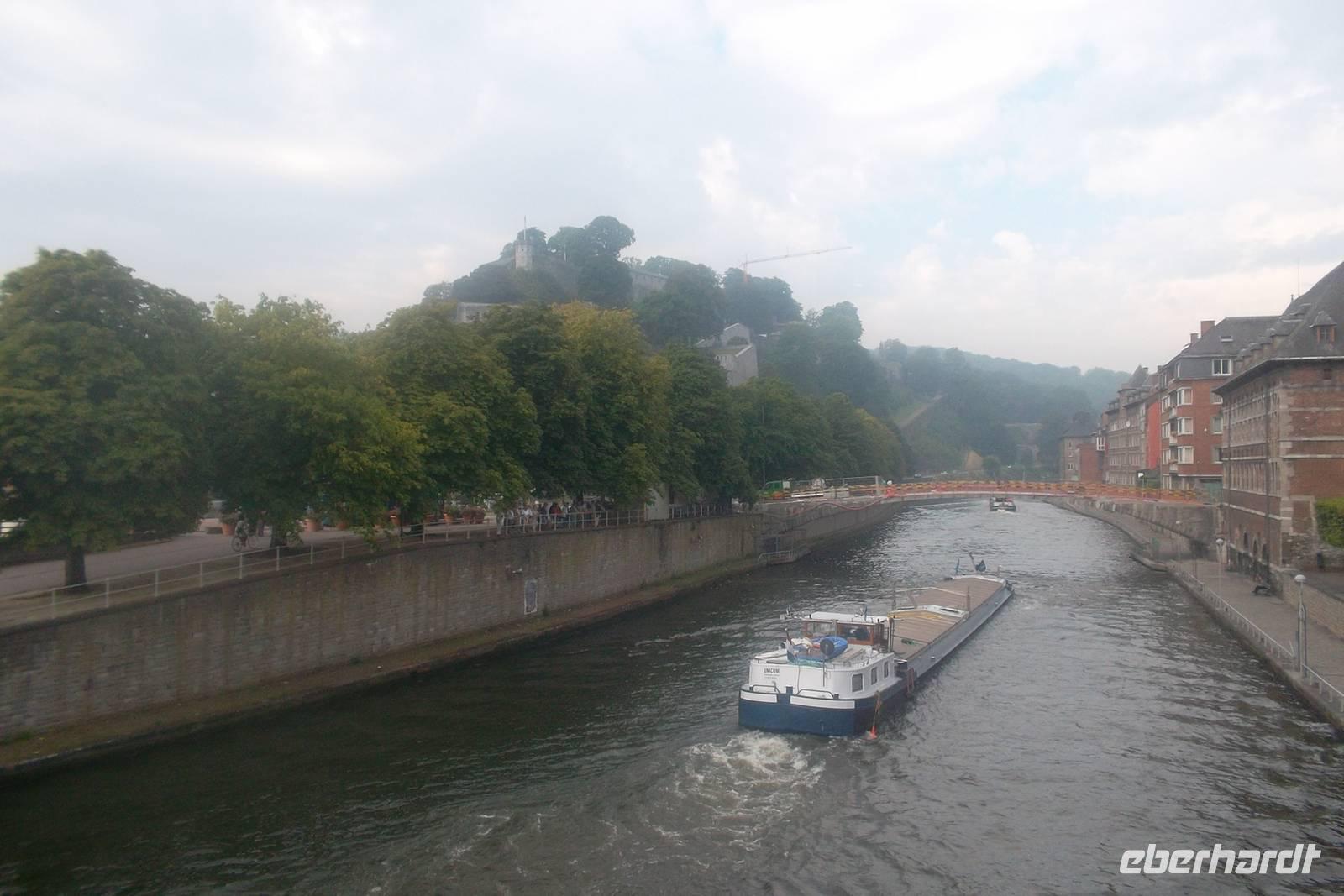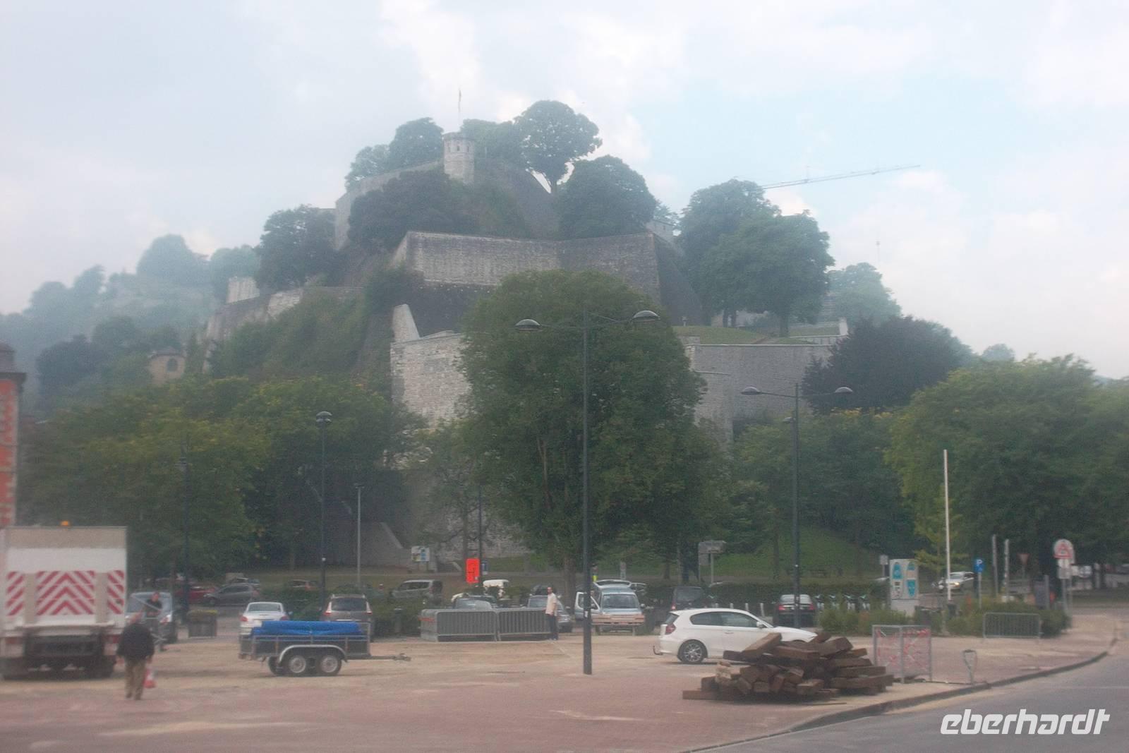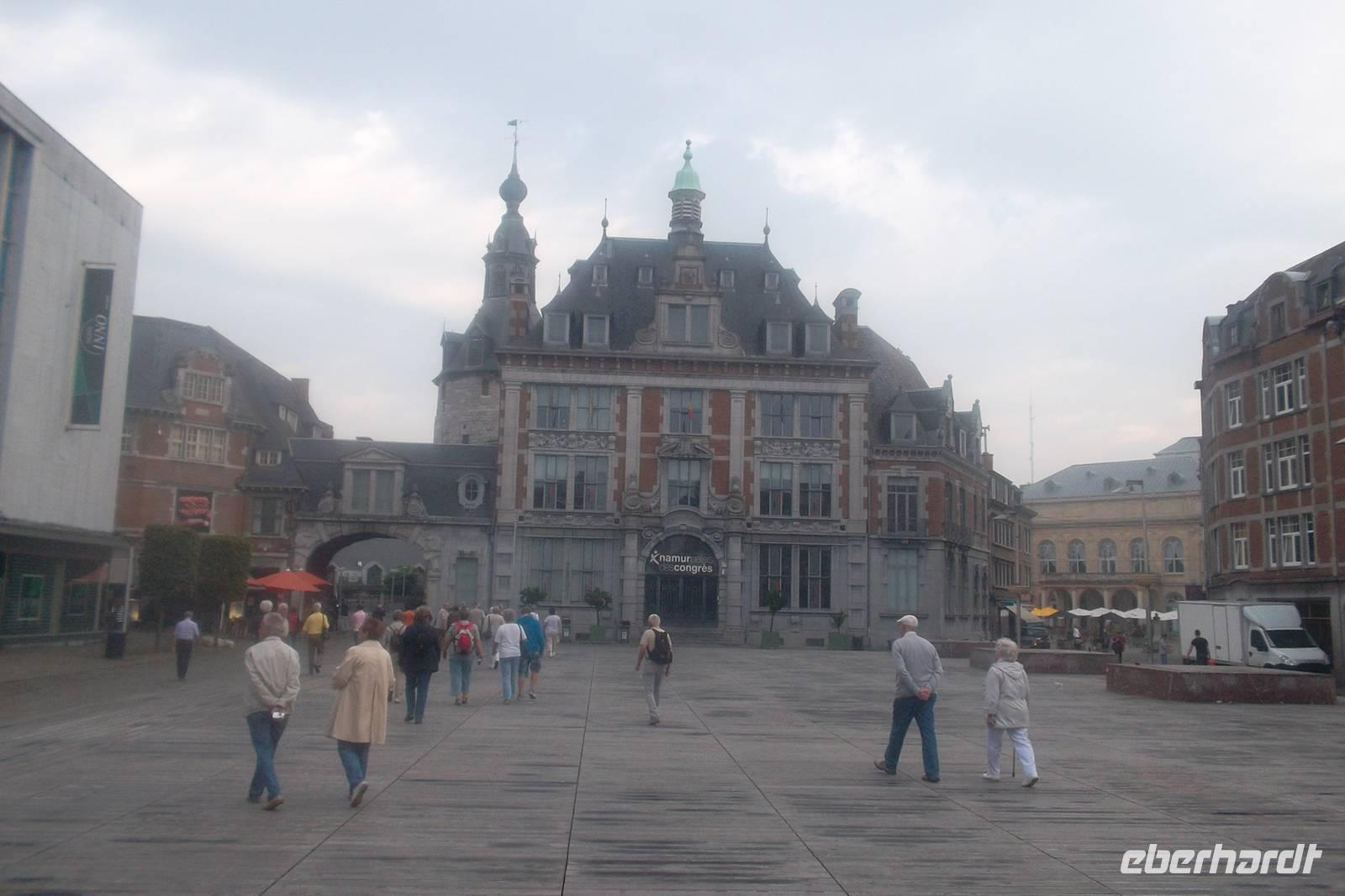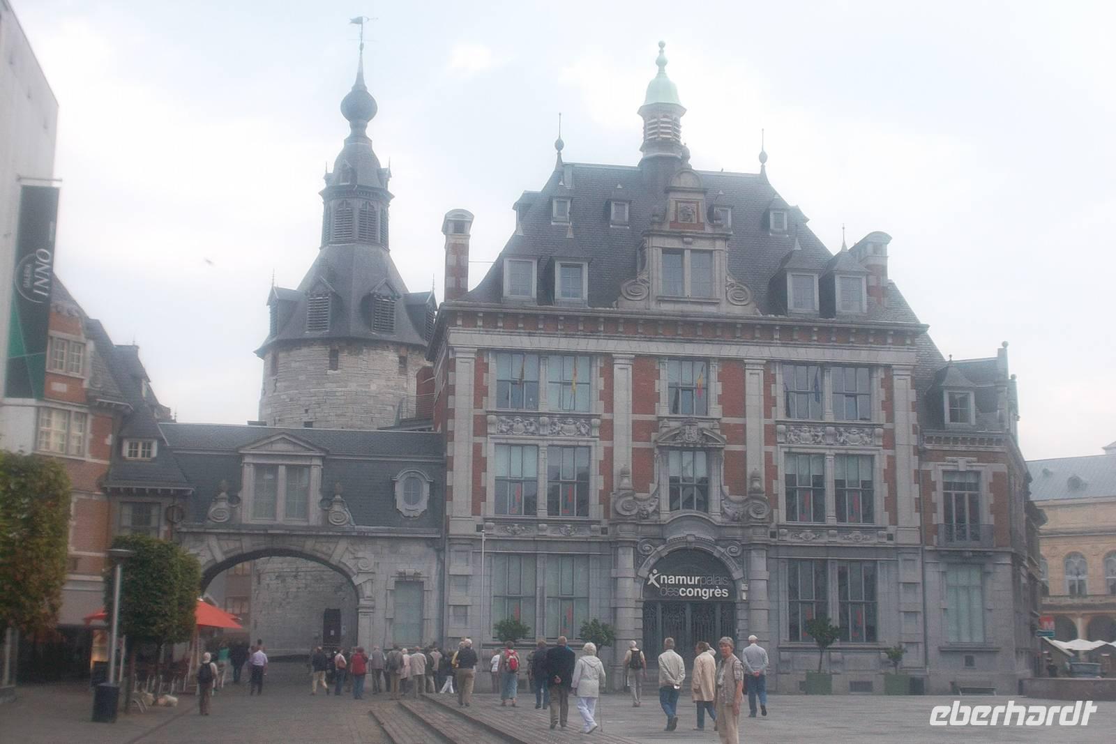 Die Hauptstadt der Wallonie wird von einer gewaltigen Zitadelle überragt. Ihre wechselvolle Geschichte kennt zahlreiche Belagerungen und stetige Erweiterungen, da man ihre Lage immer als strategisch wichtig einschätzte. Wir fuhren hinauf zum großen Appellplatz, auf dem mehrere zehntausend Soldaten manövrieren und exerzieren konnten. Die Zitadelle umfaßt mehrere hundert Hektar und gehört zu den größten Militäranlagen Europas. Gleich hinter dem Appellplatz befindet sich ein hervorragender Aussichtspunkt über Namur, an dem wir einen Fotostopp einlegten, bevor wir wieder zurück zum Zentrum fuhren. Namurs Altstadt ist recht klein, vor allem liegt sie rings um den belebten Place d'Armes, von dem aus man die bedeutendsten Baudenkmale sehen kann - den ältesten Teil der Stadtbebauung mit dem niedrigen, aber wuchtigen Belfried - der in Wallonien Beffroi heißt - und die Jugendstilgebäude der alten Börse und des Theaters.