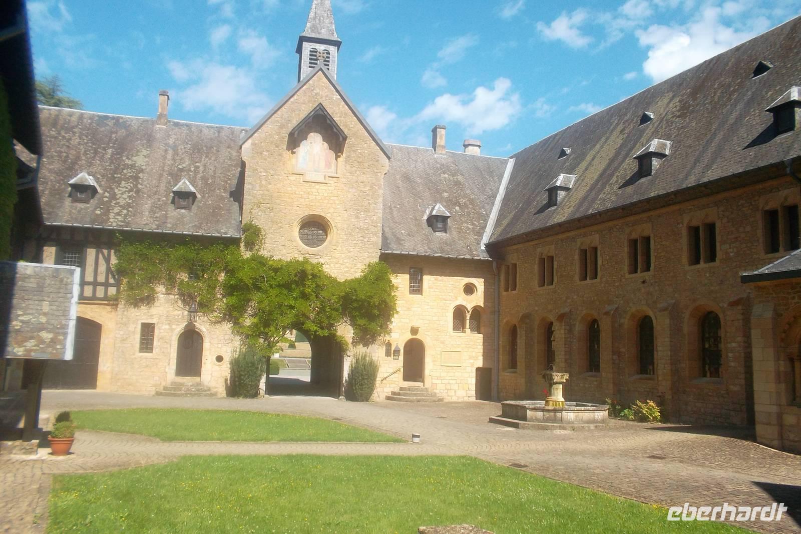 Quer durch die malerische Landschaft des Ardennen-Mittelgebirges, erreichten wir kurz vor Mittag Durbuy. Der als kleinste Stadt der EU geltende hat mittelalterliche Gassen und ein hübsches Ambiente bewahrt - trotz einiger noch vorhandener Baustellen hat Durbuy viel Charme. Ein malerisches Grafenschloss am Flüsschen Ourthe, das sich bis heute in Privatbesitz befindet, überragt die Gässchen, mit ihren rustikalen, trotz Restaurierung noch alt wirkenden Häusern aus Granit und Kalkstein. In der Freizeit gab es hier einige Möglichkeiten für einen Imbiss. Durch die malerischen Wälder legten wir den weiteren Weg zurück und erreichten eine der einst wichtigsten Abtei Niederlothringens, nach Orval. Eine Führung durch die Ruinen brachte uns die Geschichte dieses Trappistenklosters, gegründet von einer mit strengeren Regeln versehenen Ordensgemeinschaft der Zisterzienser, näher. Eine Legende besagt, dass einst Gräfin Mathilde aus Dankbarkeit Land für die Gründung des Klosters gab, das man dann Orval („goldenes Tal") nannte. Im 12. Jahrhundert schon bedeutend, bestand die Abtei mit ihren riesigen Ländereien bis zur französischen Revolution Ende des 18. Jahrhunderts. Sie wurde dann aber im Jahre 1932 neugegründet und hat heute einen besonderen Ruf vor allem durch das hier gebraute Trappistenbier und ihren Käse. Das herbe Bier, das ungewöhnlicherweise zweimal gärt, das zweite Mal nach dem Abfüllen - konnten wir im Anschluss an die Führung in einer nahegelegenen Gaststätte probieren und auch eine kleine Kostprobe des Abteikäses konnten wir nehmen.