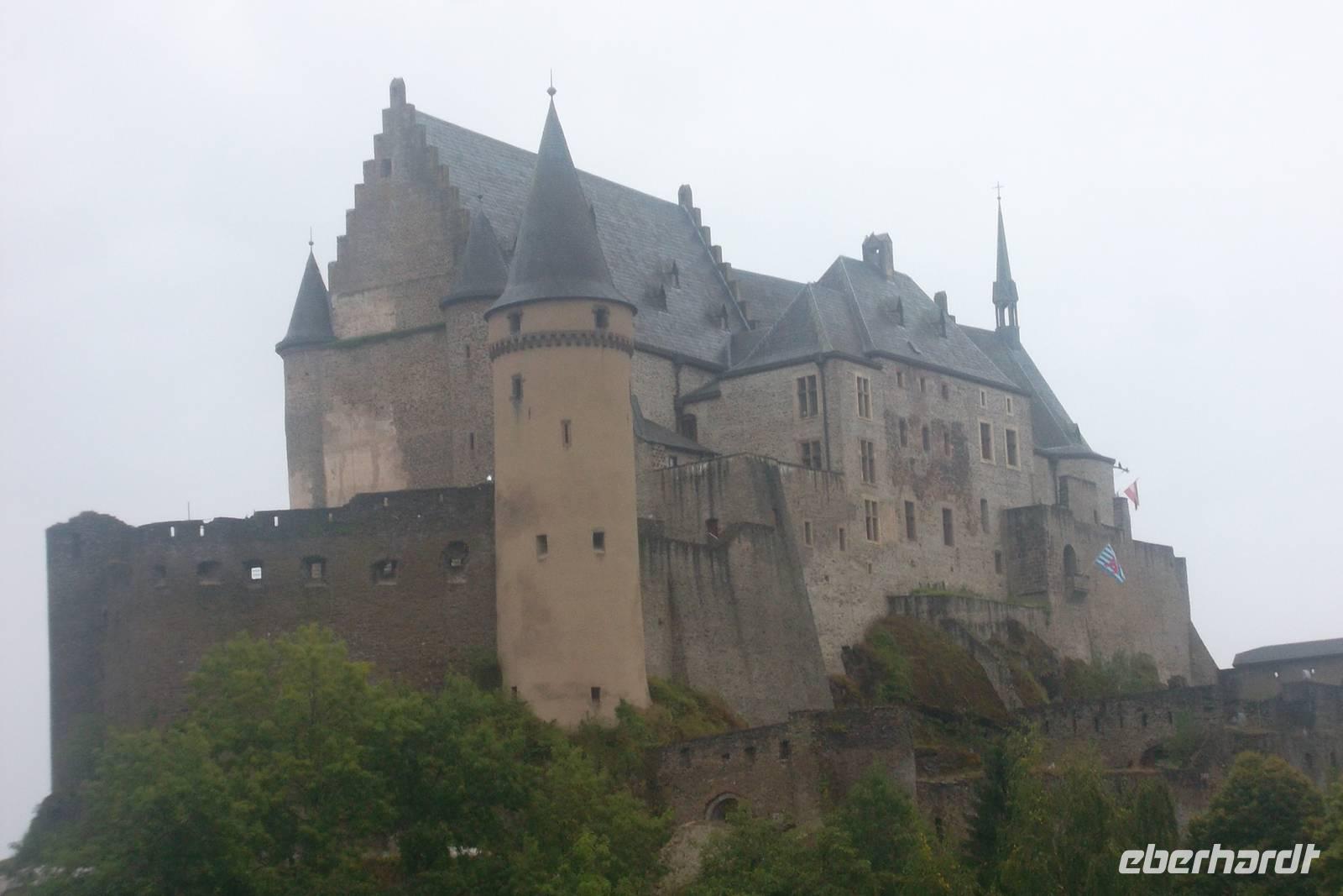 Später war dann Vianden unser Ziel, überragt seit dem 11. Jahrhundert von ihrer gewaltigen Burg. Auf einem Felssporn gelegen, ist sie die größte Festungsanlage Luxemburgs. Wir trafen uns mit der Burgführerin, die uns die interessantesten Räume zeigte. Schon im 12 und 13. Jahrhundert wurden die Burgkapelle und der kleine Palas erbaut, später kamen weitere Teile aus dem 17. Jahrhundert hinzu. Seit vielen Jahren wird die Burg restauriert und informiert in Ausstellungen zu verschiedenen Themen über ihre Geschichte .