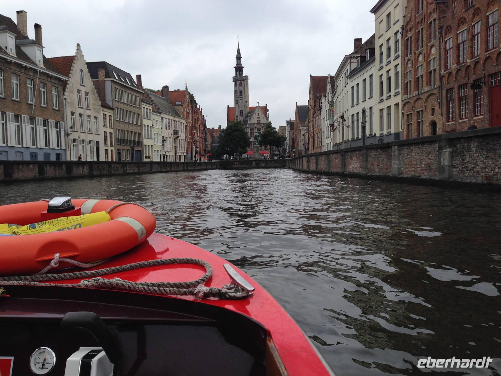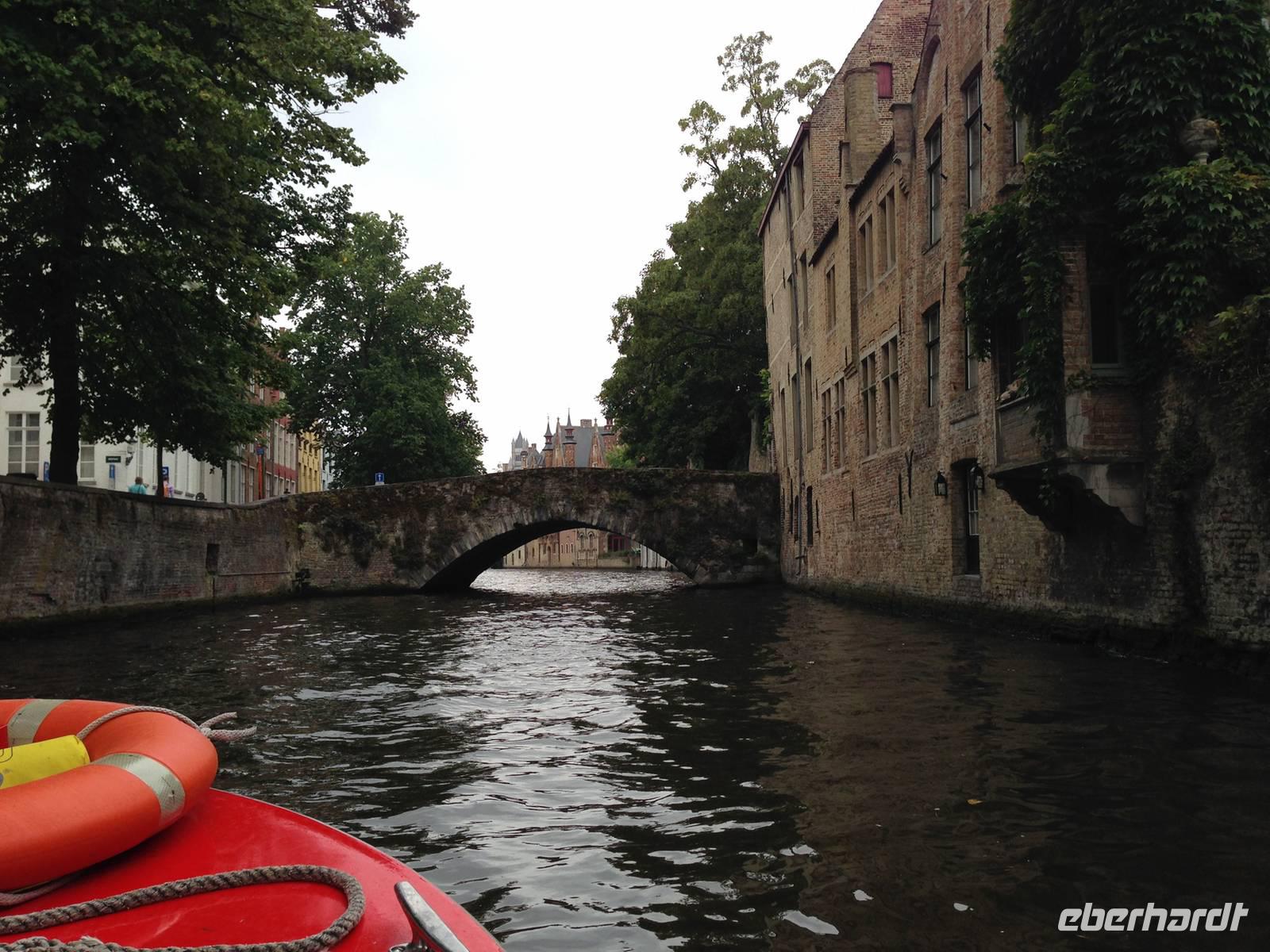 Die romantische Bootsfahrt auf Brügges Grachten lässt uns den kleinen Zwischenfall schnell vergessen. Unser Bootsführer erklärt uns mit herzerwärmenden Akzent die Gebäude an den linken und rechten Ufern.