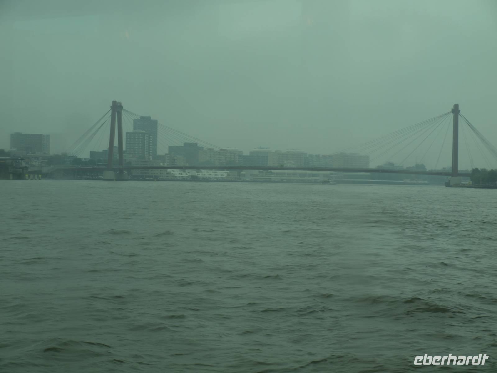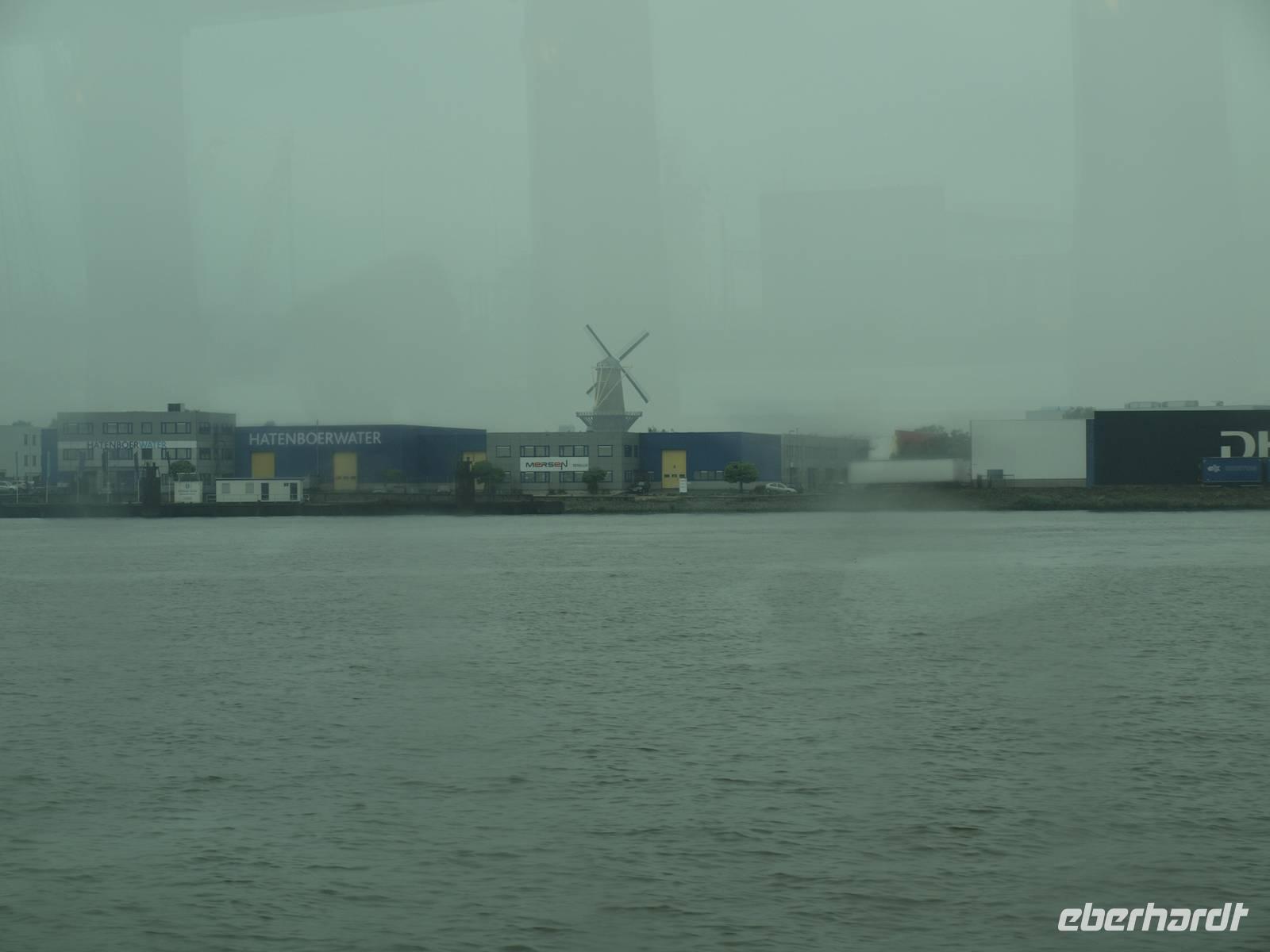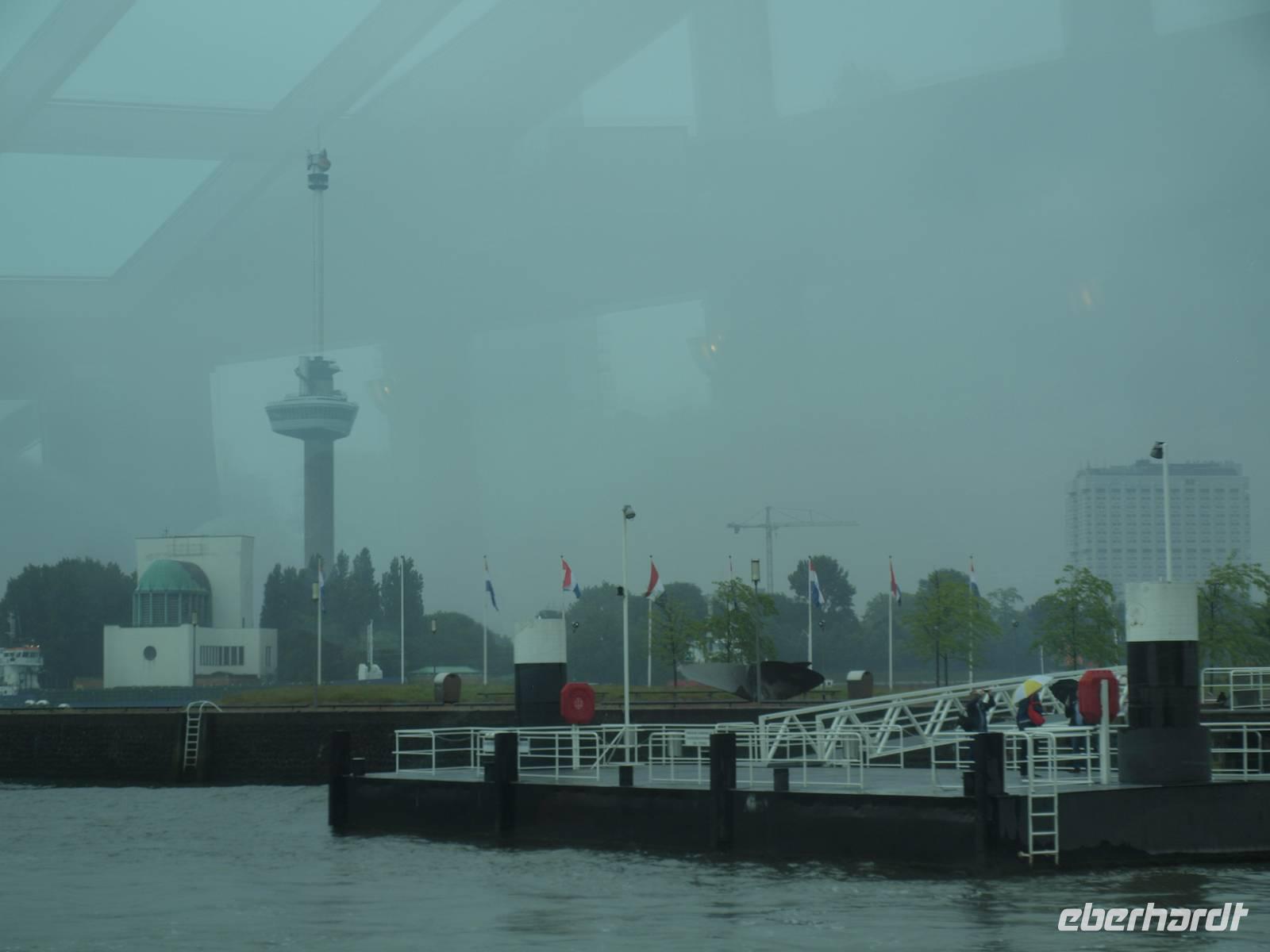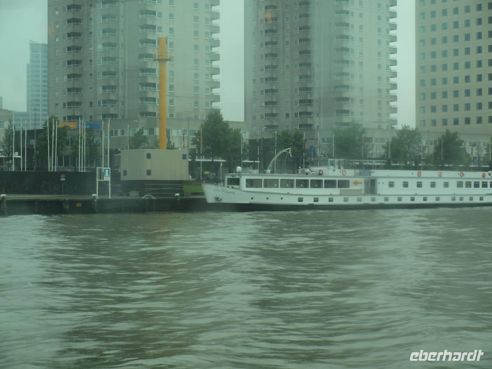 Schon vor dem Frühstück werden wir von den Motoren des Schiffes geweckt, der Kapitän fährt uns nach Rotterdam. Das Wetter wusste anfangs nicht recht was es wollte, entschied sich letzten Endes aber leider für den Regen. In Rotterdam fuhren wir nur mit halber Besatzung Richtung Delft. Karl-Heinz fuhr auch mit und unternahm einen Ausflug mit einigen der Gäste nach Delft in die Pozellan-Manufaktur. Unsere kleine Radgruppe fuhr direkt bis Delft. Dort versuchte man trotz strömenden Regen die Stadt zu erkunden. Nach einer Pause in einem Café zum Aufwärmen fuhren wir wieder zurück nach Rotterdam, denn der Tag hatte noch etwas mehr zu bieten. Gemeinsam mit Karl-Heinz, Jürgen und den anderen Reisegästen nahmen wir an einer Hafenrundfahrt teil. Das Schiff war komplett verglast und man konnte so einen tollen Blick, bei schonem Wetter vermutlich noch schöner, über das ganze Hafenarenal genießen. Pünktlich zum Abendessen kamen wir zurück und ließen den Abend gemütlich ausklingen.