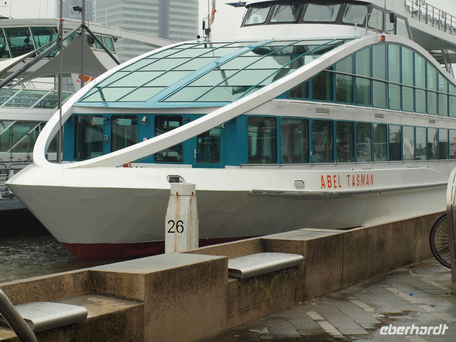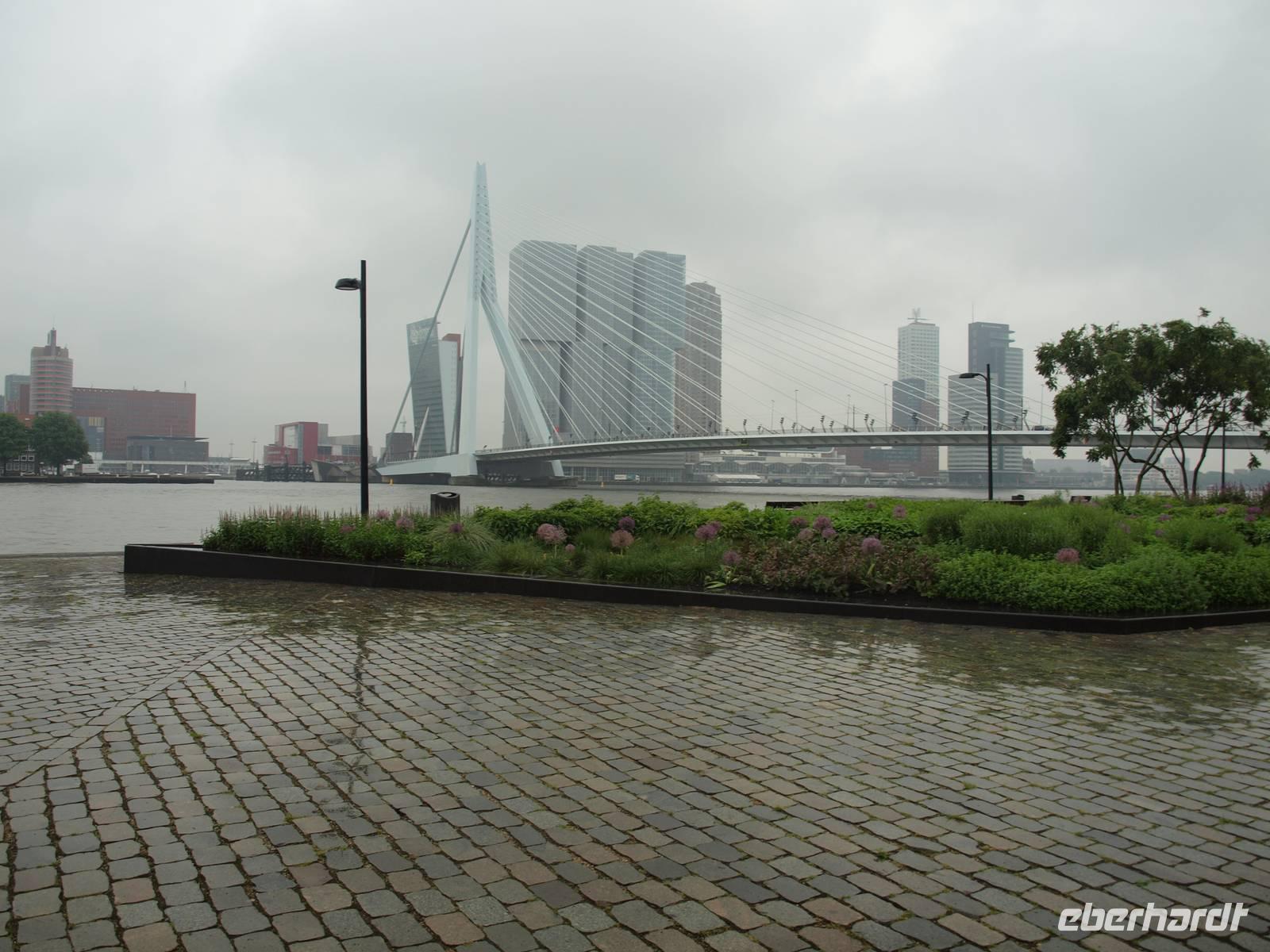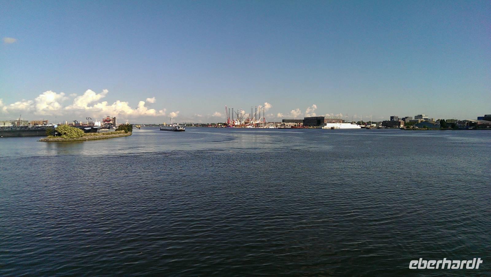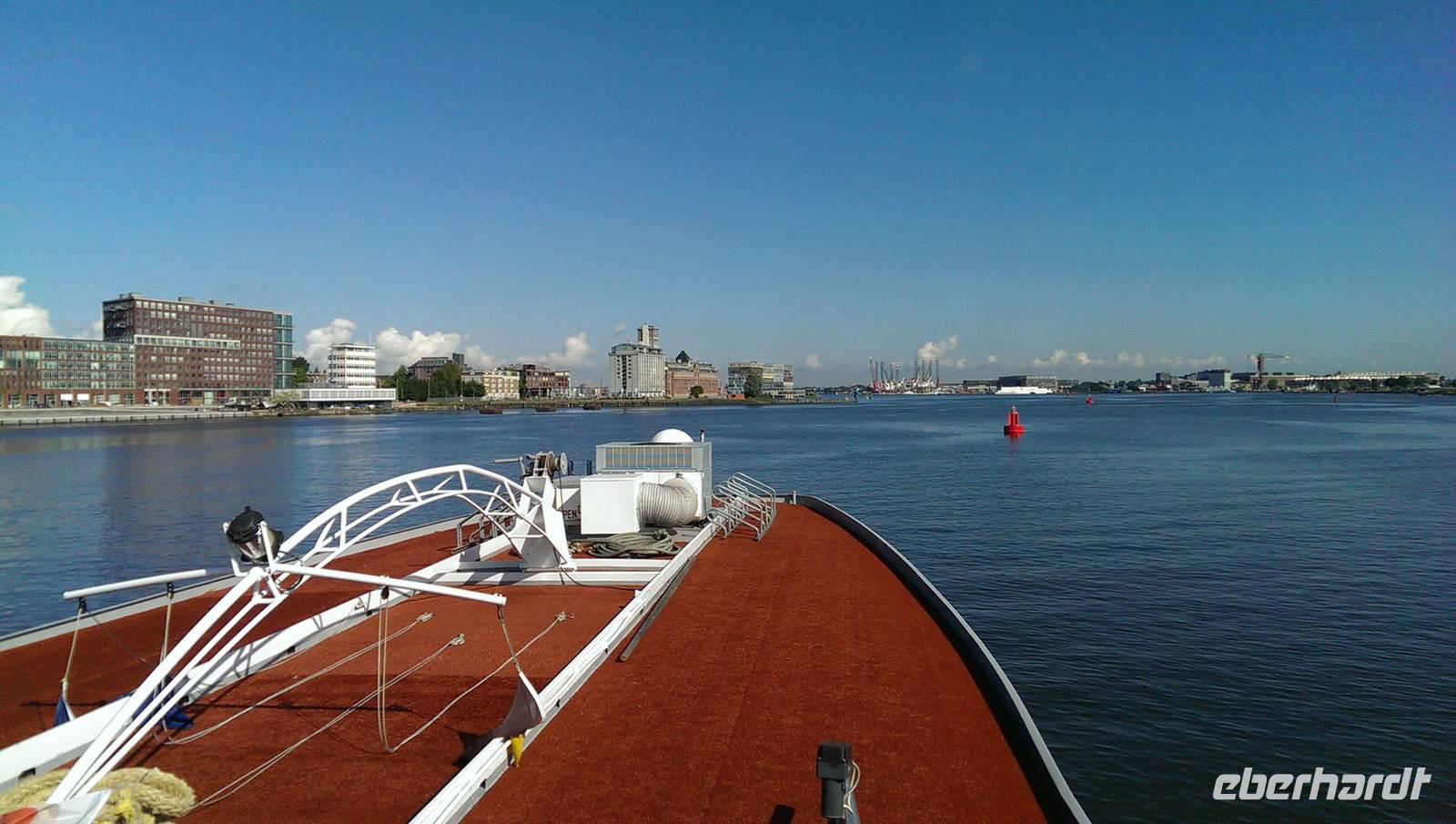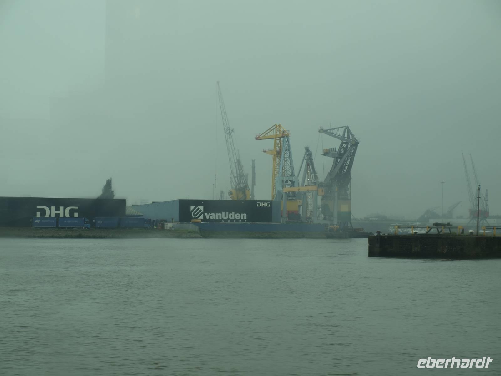 Schon vor dem Frühstück werden wir von den Motoren des Schiffes geweckt, der Kapitän fährt uns nach Rotterdam. Das Wetter wusste anfangs nicht recht was es wollte, entschied sich letzten Endes aber leider für den Regen. In Rotterdam fuhren wir nur mit halber Besatzung Richtung Delft. Karl-Heinz fuhr auch mit und unternahm einen Ausflug mit einigen der Gäste nach Delft in die Pozellan-Manufaktur. Unsere kleine Radgruppe fuhr direkt bis Delft. Dort versuchte man trotz strömenden Regen die Stadt zu erkunden. Nach einer Pause in einem Café zum Aufwärmen fuhren wir wieder zurück nach Rotterdam, denn der Tag hatte noch etwas mehr zu bieten. Gemeinsam mit Karl-Heinz, Jürgen und den anderen Reisegästen nahmen wir an einer Hafenrundfahrt teil. Das Schiff war komplett verglast und man konnte so einen tollen Blick, bei schonem Wetter vermutlich noch schöner, über das ganze Hafenarenal genießen. Pünktlich zum Abendessen kamen wir zurück und ließen den Abend gemütlich ausklingen.