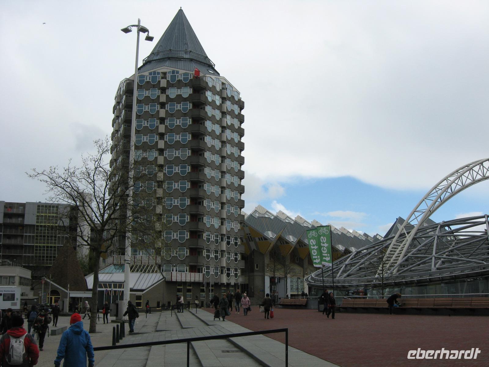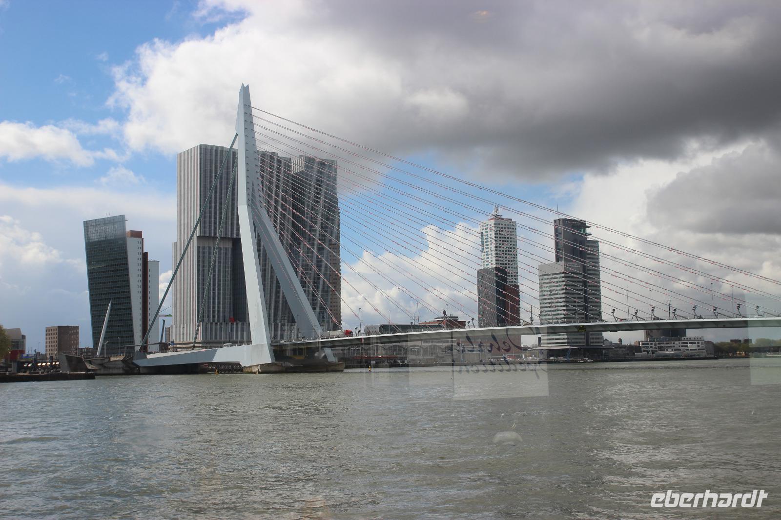 Heute war der Tag, an dem der Wecker mit dem Schiffsdiesel eingetauscht wurde. Pünktlich 06:50 wurde die 1094 PS der Maschine gestartet. Als erstes brachte uns heute die MS Sir Winston nach Rotterdam. Auf Grund der Wetterprognose entschieden sich heute 11 Radler per pedes durch Rotterdam zu spazieren. Wir brachen Richtung Willemsbruk auf, um dann ins Zentrum der Sehenswürdigkeiten zu gelangen. Als erstes wurden wir von den Markthallen angezogen. Uns begeisterte der gigantische Bau selbst - ein Tonnengewölbe mit toller Deckengestaltung, welcher über der Markthalle an den Außenseiten Platz für Wohnungen bietet. Ein Riesen Angebot an kulinarischen Köstlichkeiten verleitete uns zum Naschen.