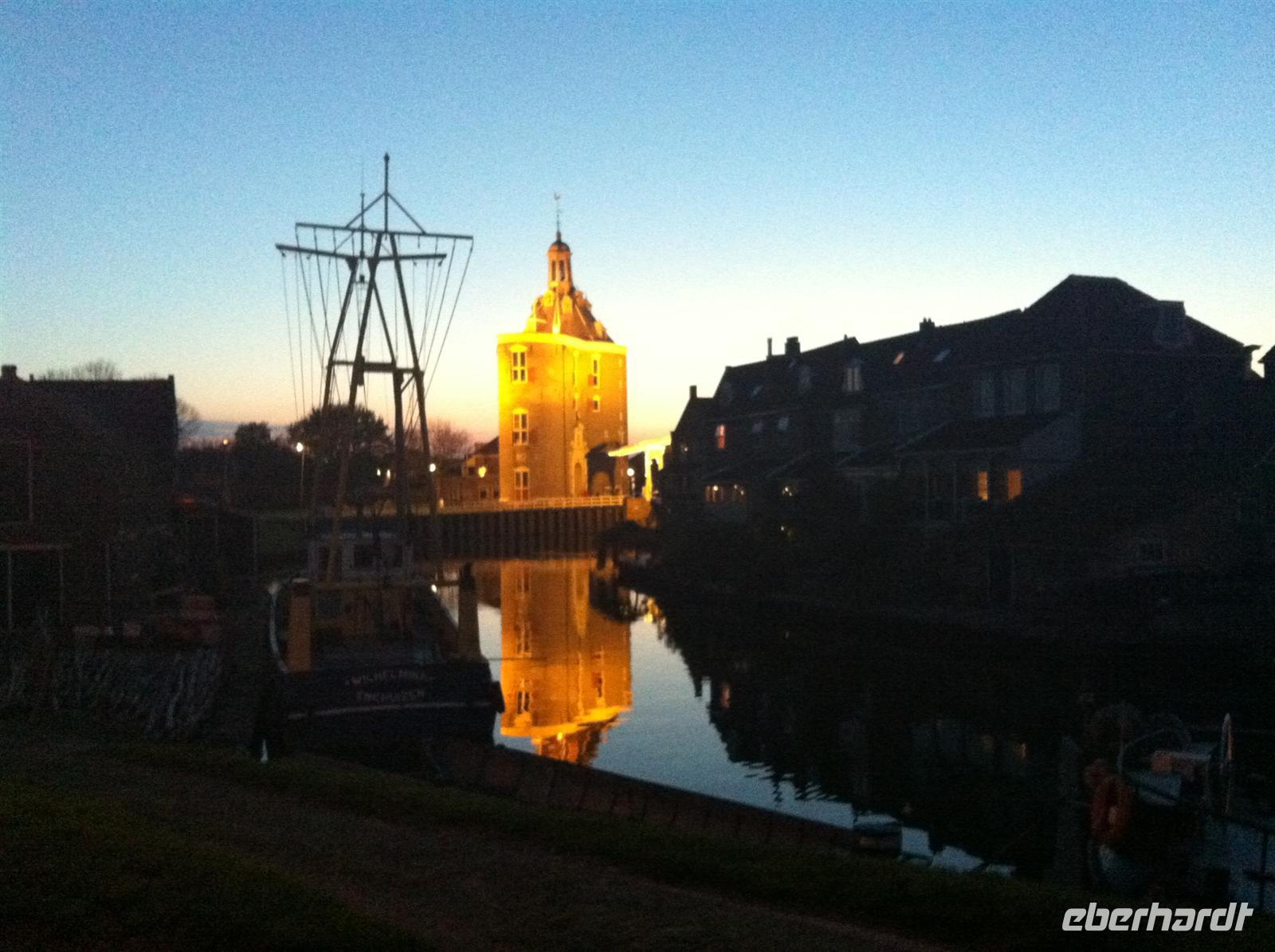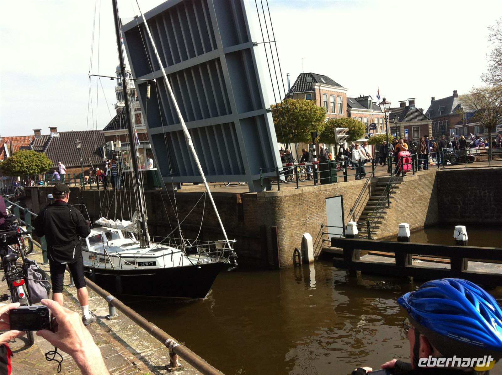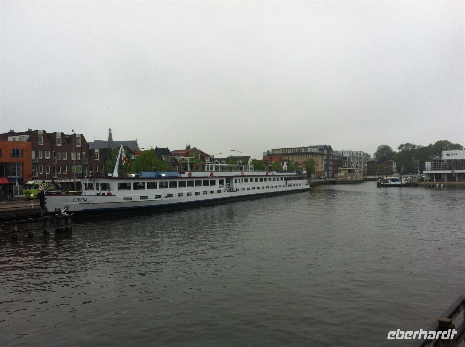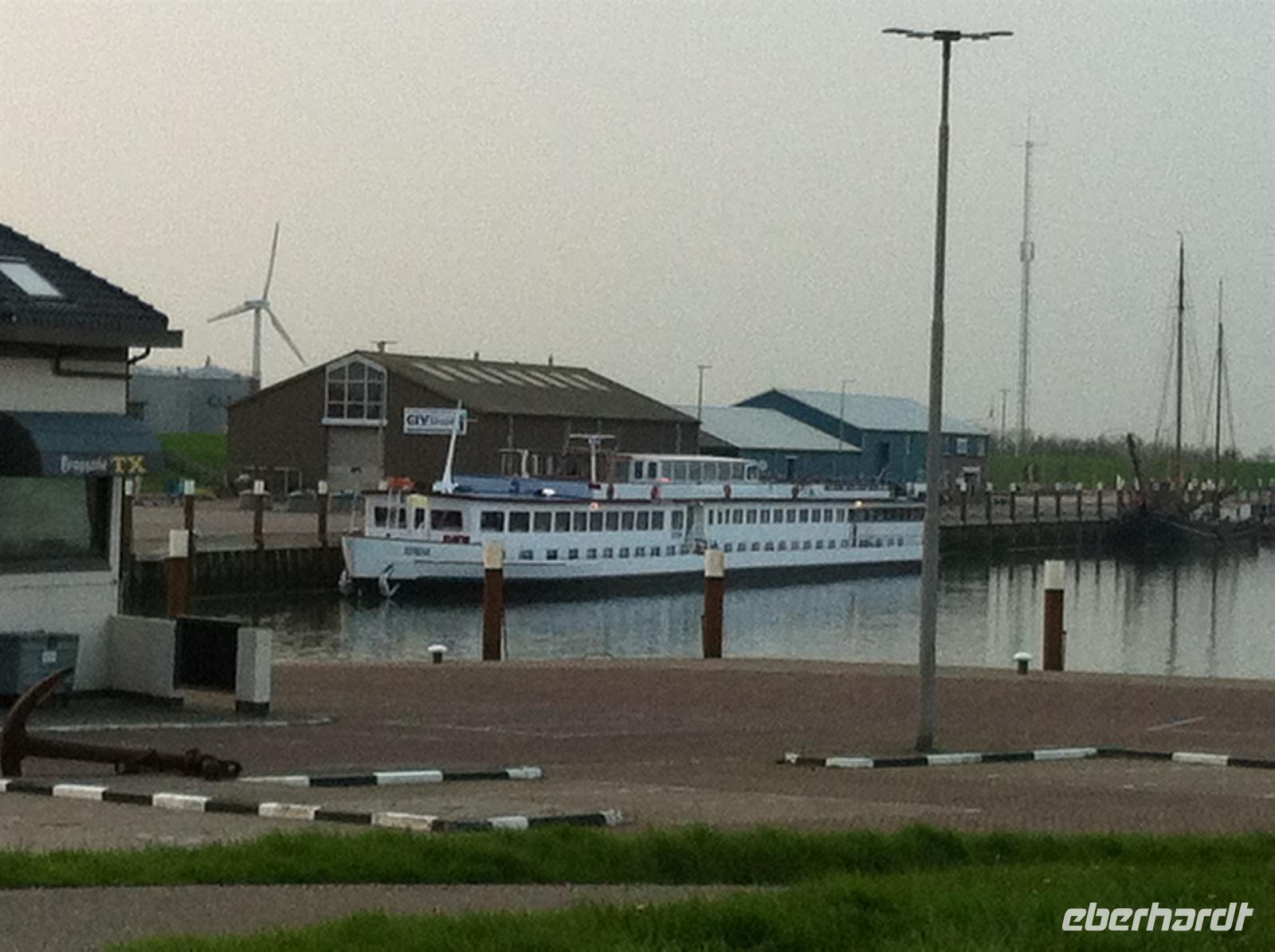 Das Wetter zeigte sich heute fröhlicher gestimmt, so dass unser Schiff am Vormittag Amsterdam verlassen konnte. Eine kleine Planänderung mussten wir aber in Kauf nehmen, denn es ging nicht nach Hoorn, sondern direkt nach Enkhuizen, welches wir eigentlich erst am Nachmittag mit dem Rad erreichen sollten. Schade um den Besuch von Hoorn, aber von der Radstrecke, die für uns ausgedacht wurde, war die Änderung vorteilhaft.