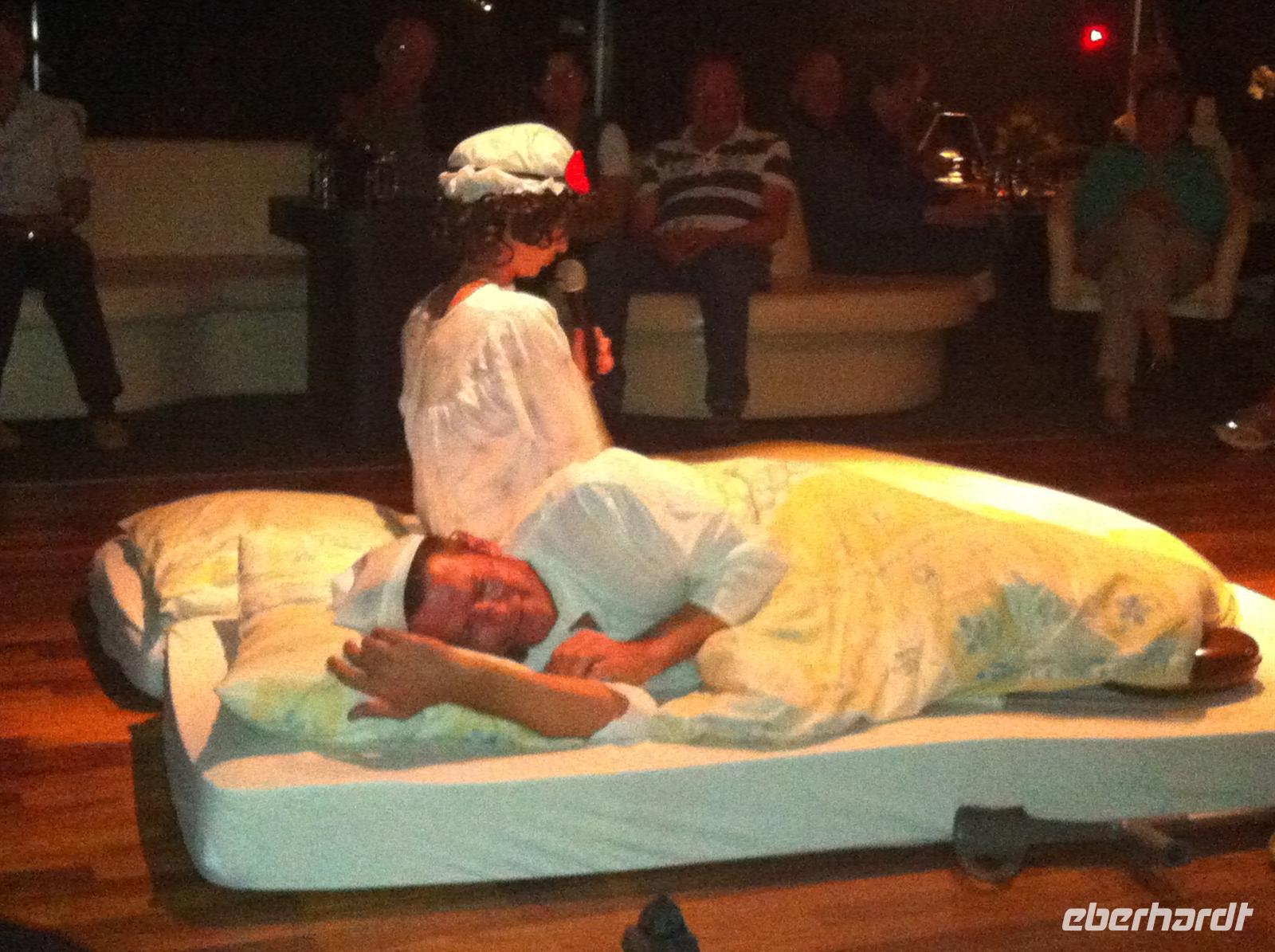 Die MS Serena holte uns dann pünktlich ab, auf dem Sonnendeck konnten wir dann ein wenig abschalten, während wir durch den Abschlussdeich bis in den Hafen von Oudeschild auf der Insel Texel fuhren. Uns blieb dann noch ausreichend Zeit für einen kleinen individuellen Rundgang durch das Dorf, welches früher Versorgungsstützpunkt für Frachtschiffe war, bevor es dann zum Abendessen ging. Nach diesem stand heute die Crew-Show auf dem Abendprogramm, bei der uns die Bordbesatzung mit einem kleinen Programm unterhielt.