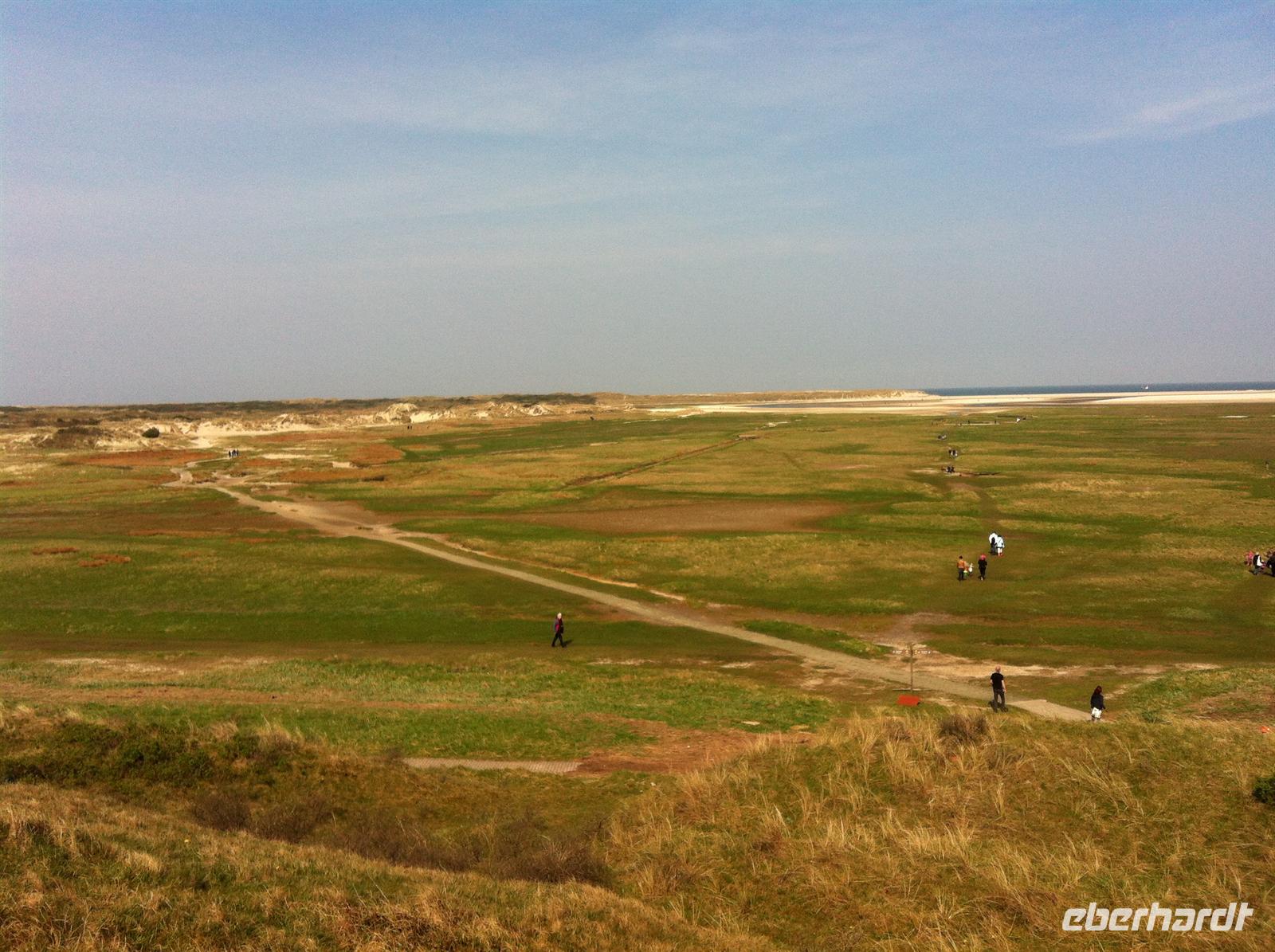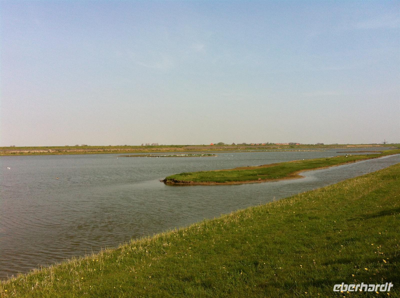Bereits am Vorabend einigten wir uns für den heutigen Tag auf eine entspannte Runde, bei der wir aber recht viel von der Insel sehen sollten. Zunächst führte uns unsere Tour gen Norden entlang der Wattensee. Bevor wir dann abdrehten, um die Insel in Richtung Nordsee zu überqueren, verabschiedeten wir die Unerschrockenen, die für den heutigen Tag individuell die große Runde in Angriff nahmen. Für uns ging es weiter zum De Slufter, einem Gebiet, was mehrfach durch Deichbrüche heimgesucht wurde und die Landschaft entsprechend geprägt wurde. Hier hatten wir auch eine erste Gelegenheit für eine Pause und es wurde auch Zeit, denn wir hatten schon eine gute Strecke zurückgelegt und dabei auch mit dem Wind zu kämpfen. Nun hatten wir aber die Zeit und auch den Wind im Rücken und konnten uns für den Rückweg auch Zeit lassen um die Eindrücke, wie hier am Naturschutzgebiet De Slufter, gebührend zu genießen.