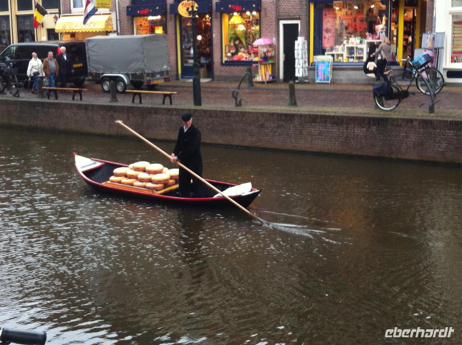 Unseren letzten Radtag sollten wir nicht von Alkmaar starten, doch bevor wir mit dem Schiff ablegten, hieß es zunächst erneut in die Stadt von Alkmaar zu gehen. Es war Freitag und der Käsemarkt fand statt. Auch wenn es mit dem früheren Markt nicht mehr viel zu tun hat, sondern es mehr Show ist, hat man zumindest einen kleinen Eindruck bekommen, wie das früher abgelaufen ist.