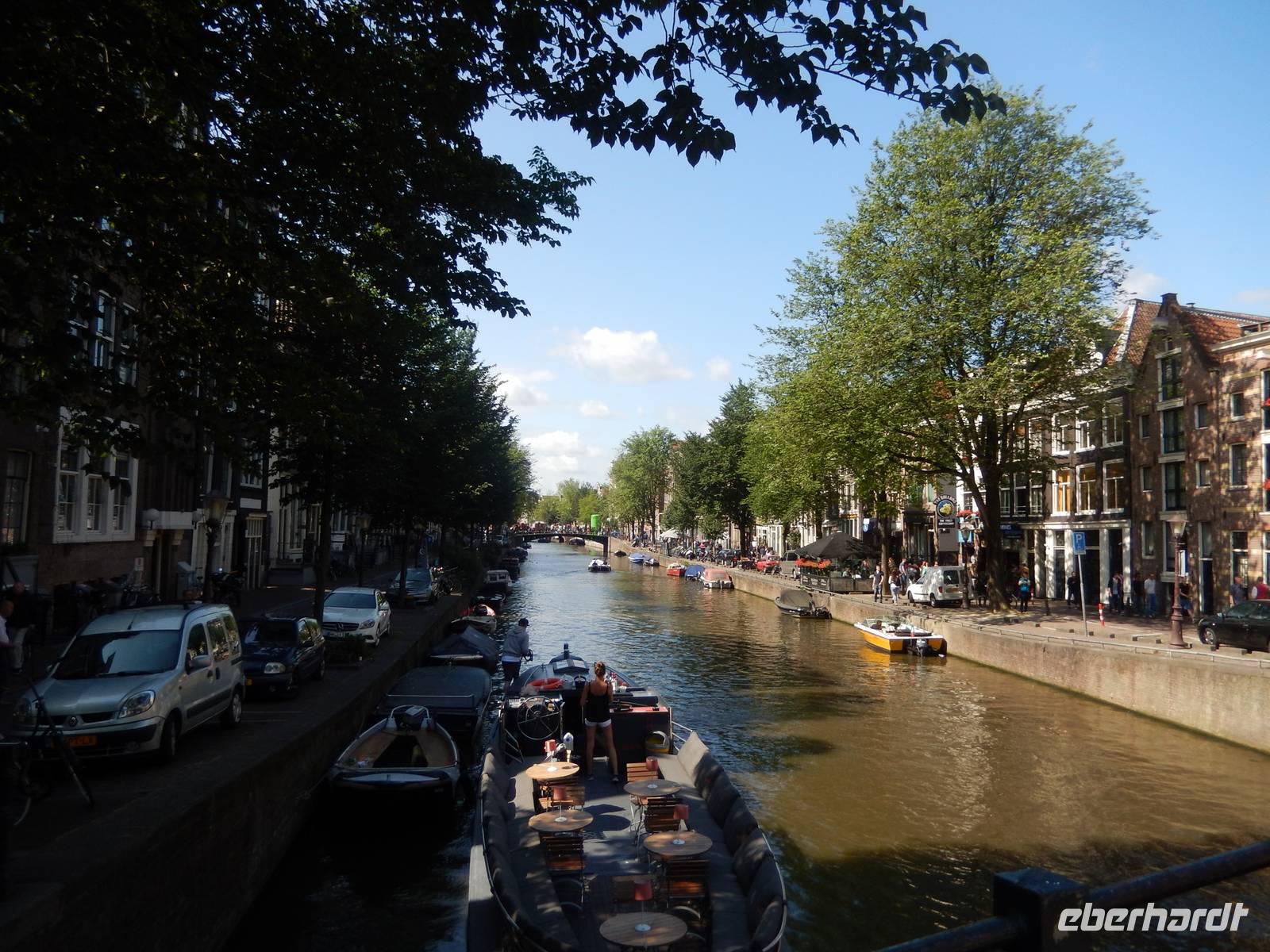 So viel Zeit bleibt uns aber nicht, denn wir wollen natürlich auch Amsterdam noch kennenlernen, zunächst starten wir dafür auf eine Grachtenrundfahrt, bei der uns Karl, der Bordreiseleiter der Serena, auch so manche Geschichte erzählen kann. Danach geht es erstmal zurück auf die Serena, denn das Abendessen möchten wir nicht verpassen. Es ist zum Captain's Dinner geladen, bei der sich die Besatzung von uns verabschiedet und wir ein letztes Mal ein leckeres Menü zu uns nehmen können. Nach dieser Stärkung geht es dann natürlich nochmal in die Altstadt auf eine Erkundungstour zu Fuß.