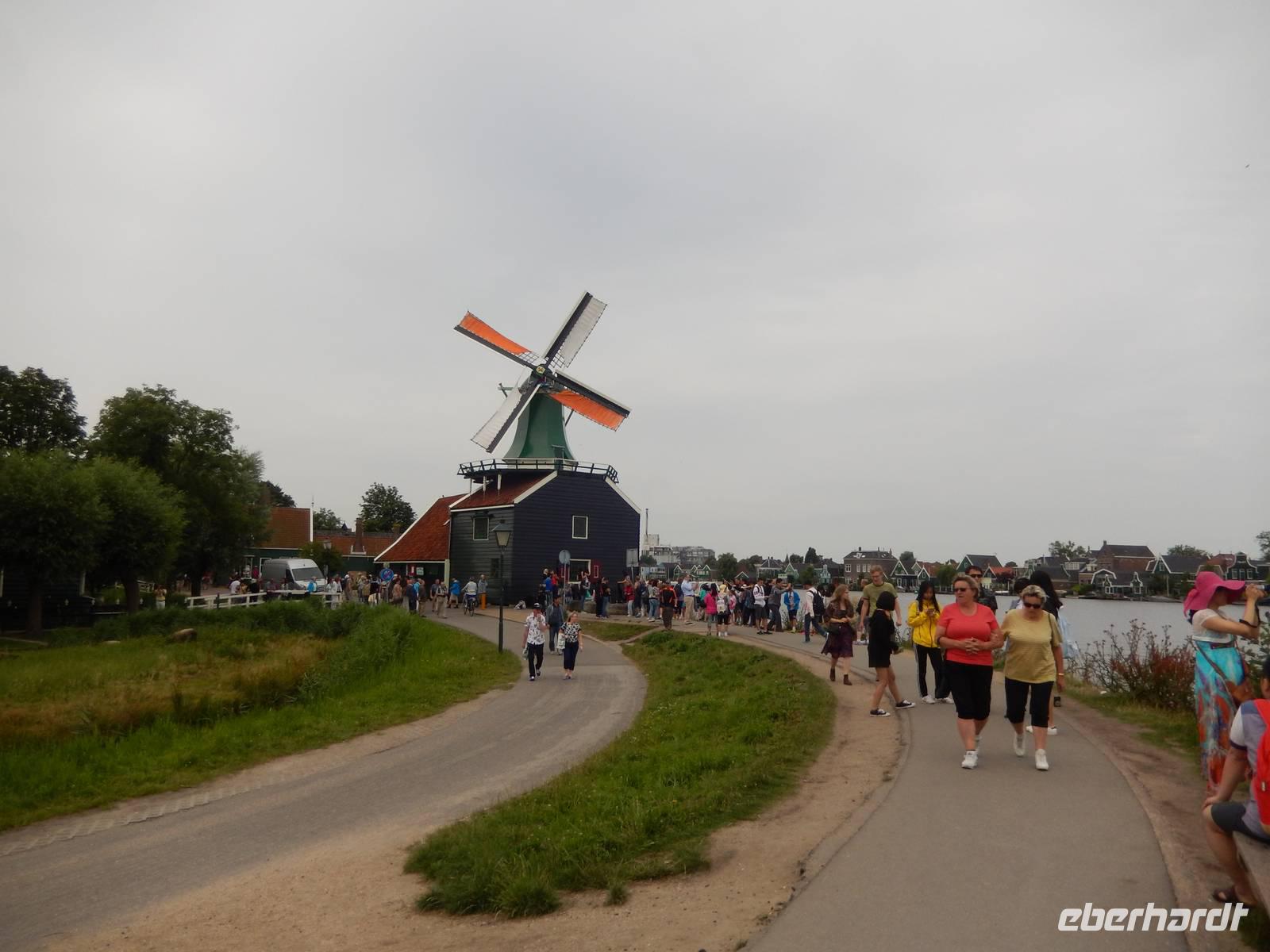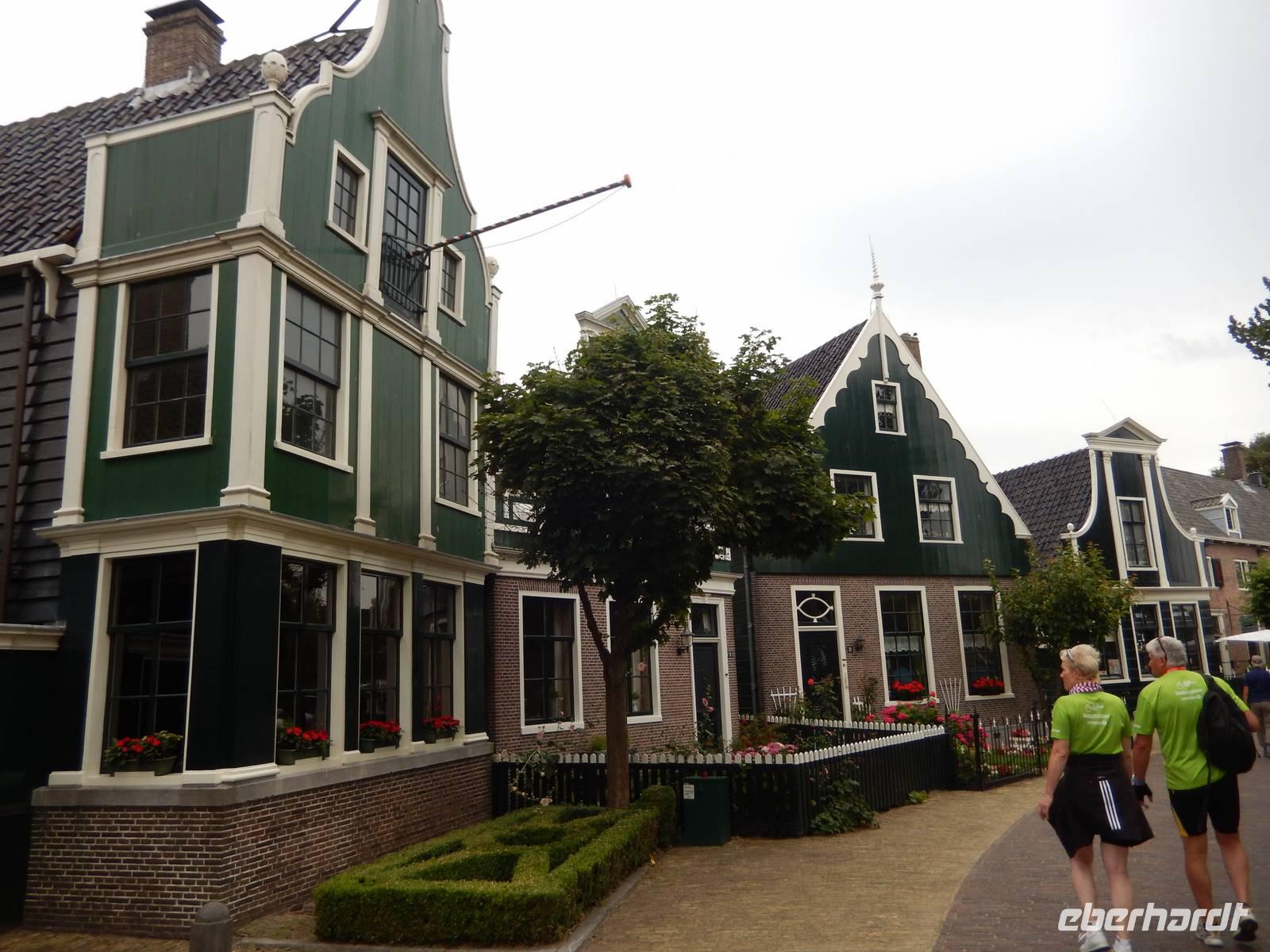 Unser Weg führt uns zunächst über das Stadtzentrum Zaandam, wo wir das Freiluftmuseum Zaanse Schans besuchen, in dem wir die restaurierten Windmühlen oder auch typisch alte holländische Häuser ansehen können. Dabei ist es uns auch möglich, bei der einen oder anderen handwerklichen Tätigkeit, zum Beispiel in der Käserei oder der Holzschuhwerkstatt, zuzuschauen. Wieder auf den Rädern, geht es nun durch das Naherholungsgebiet Het Twiske, welches von den Amsterdamern gern genutzt wird. Uns kommen auf dem weiteren Weg auch einige andere Fahrradfreunde entgegen, die sich in den dortigen Seen erfrischen wollen. Bei einigen von uns kommt eher ein wenig der Bierdurst auf, doch die meisten wollten doch eher nach Amsterdam, so dass der Durst noch warten musste. Sehr weit war es aber nicht mehr, bis wir wieder die Vororte erreichen und die Siedlungsdichte immer mehr zunimmt. Am Nordhollandkanal angekommen, müssen wir dann nur noch mit der Fähre übersetzen und wir sind am Hauptbahnhof von Amsterdam. Zeitgleich lief auch die Serena an ihrem Liegeplatz ein, so dass wir jetzt endlich unseren Bierdurst stillen und auf die bis zu 258 zurückgelegten Kilometer anstoßen können.