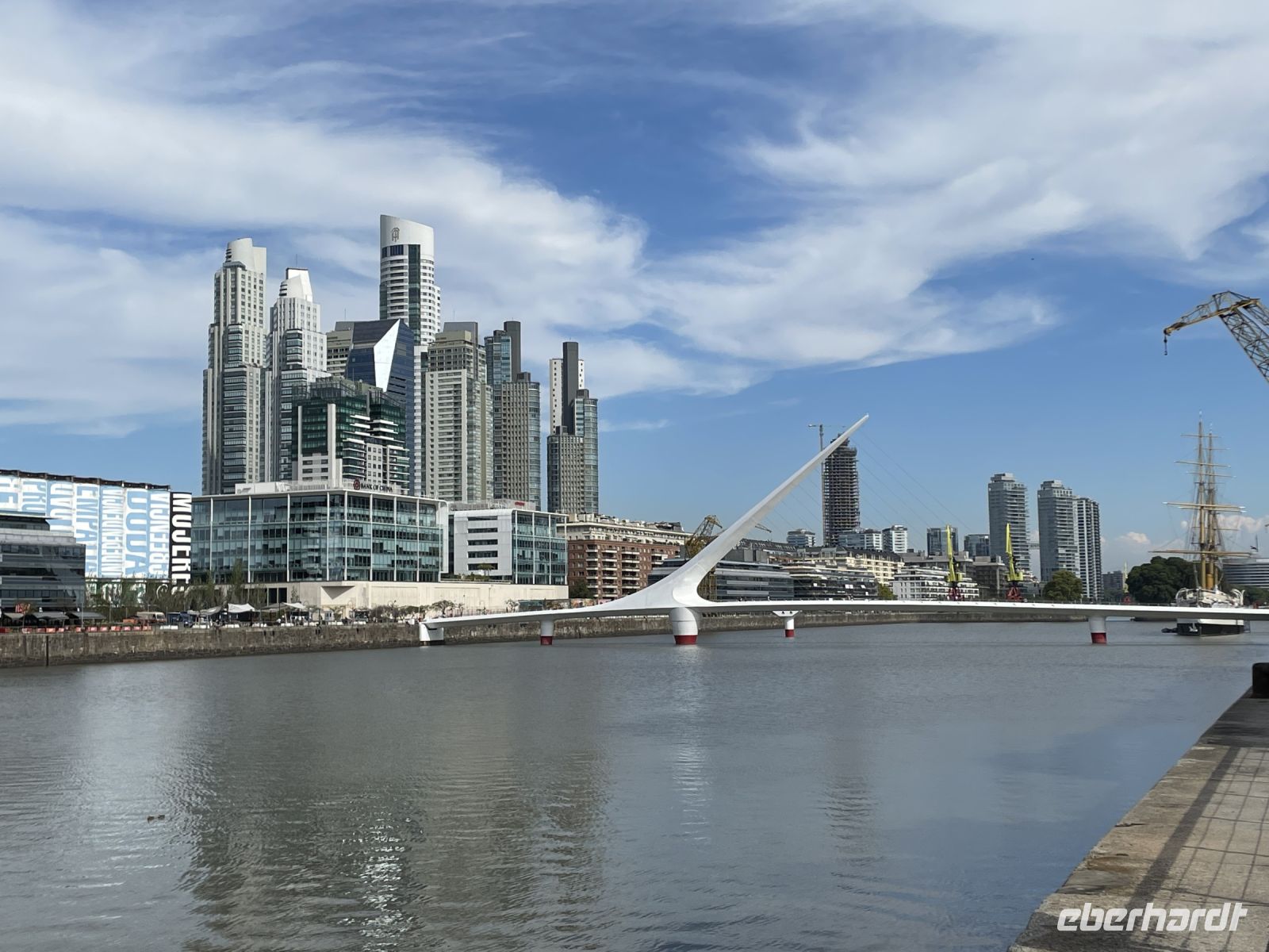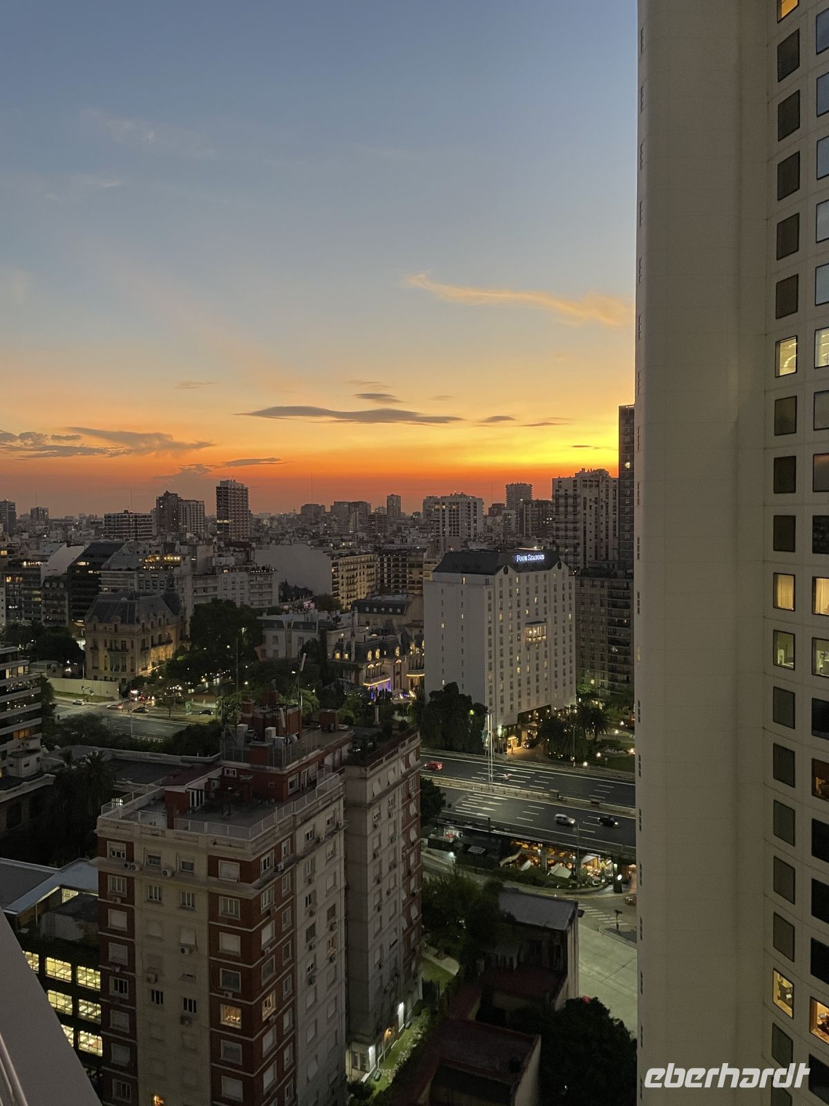 Am Freitagmorgen nehmen wir unsere Koffer in Empfang, passieren die Zollkontrolle und werden dann von unserer Reiseleiterin Silvia empfangen. Wir fahren samt Gepäck mit unserem Busfahrer Christian ca. 30min ins Stadtzentrum. Gegen 10:15 Uhr stoppen wir für einen Rundgang an der Plaza de Mayo, besuchen die Kathedrale und knipsen ein paar Fotos am Palast des Präsidenten. Unsere weitere Stadtrundfahrt führt uns vorbei am Kongressgebäude bis nach San Telmo. Reiseleiterin Silvia, die ein gutes deutsch spricht aufgrund von deutschen Vorfahren, erklärt uns alles Wichtige über die Sehenswürdigkeiten. Um die Mittagszeit erreichen wir das Stadtviertel La Boca, welches bekannt ist für seine bunten Häuser und dem Stadion „La Bombonera“ – die Heimstädte von Diego Maradona. Dort angekommen, haben wir etwas Zeit für einen Spaziergang durch das schöne Viertel. Einige nutzen die Gelegenheit zum Geld tauschen und um ein paar Empanadas zu Essen. (Teigtaschen mit Rinderhackfleisch gefüllt). Den meisten gefällt es so gut, dass wir hier gerne mehr Zeit gehabt hätten. Am frühen Nachmittag geht es mit dem Bus weiter durch das nächste Stadtviertel - Puerto Madero. Hier wurden in den letzten 20 Jahren moderne Wolkenkratzer mit schicken Apartments gebaut, die zu einer tollen Skyline zusammenwuchsen. Nach einer ausführlichen Rundfahrt erreichen wir schließlich unser Hotel Emperador, wo wir für die nächsten zwei Nächte einchecken werden. Nach dem Check-in haben wir etwas Freizeit und am späten Nachmittag fahren einige Gäste mit mir in Taxen nochmal nach Puerto Madero, um nochmal das Viertel zu Fuß zu erkunden. Nach dem Abendessen im Hotel, sitzen wir noch gemütlich im Garten zusammen und genießen kurze Zeit später den Sonnenuntergang auf dem Hoteldach.