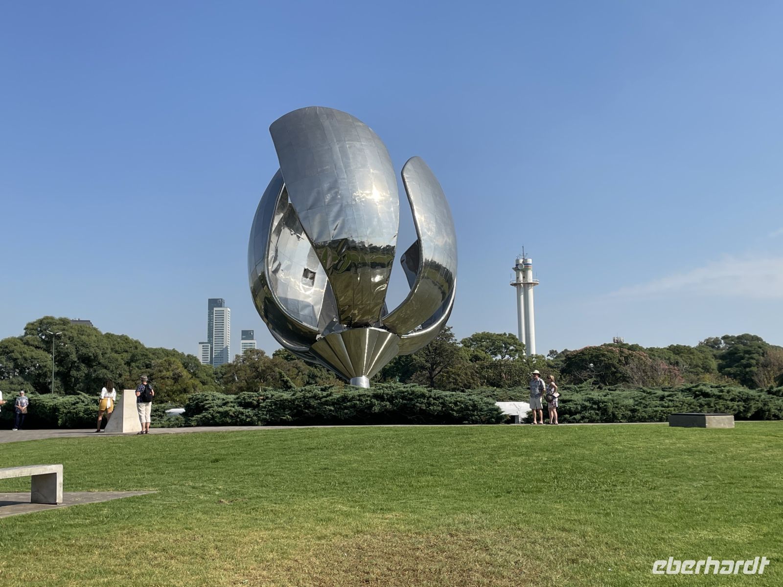 Am zweiten Tag und dem zweiten Teil unserer Stadtrundfahrt, kommen wir auf dem Weg zum Botschaftsviertel an der 23 Meter hohen und 18 Tonnen schweren Kunstskulptur „Floralis Generica“ vorbei und nutzen die Gelegenheit, Fotos zu machen. Diese Kunstblume öffnet sich bei Sonnenaufgang und schließt sich bei Sonnenuntergang. Wirklich beeindruckend!